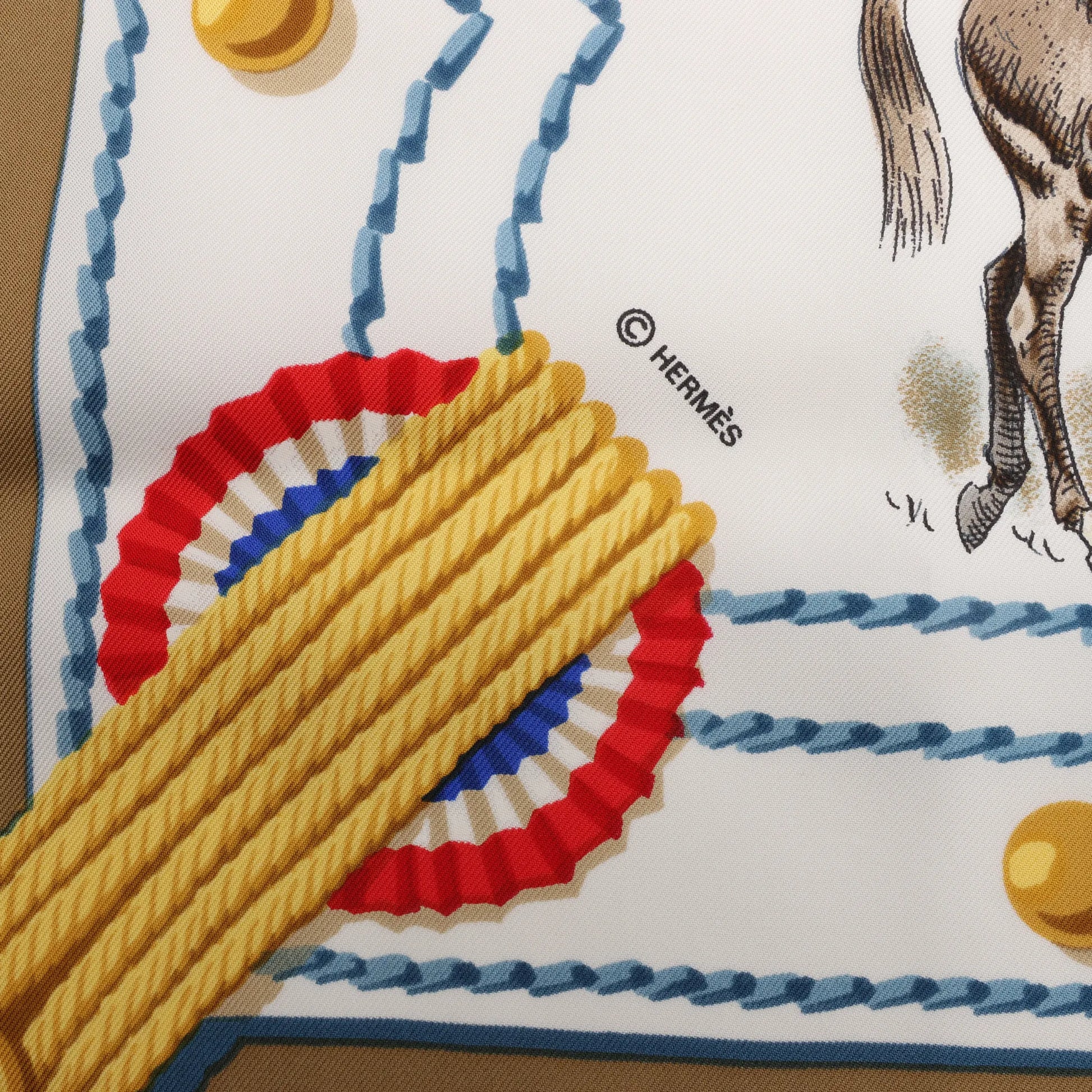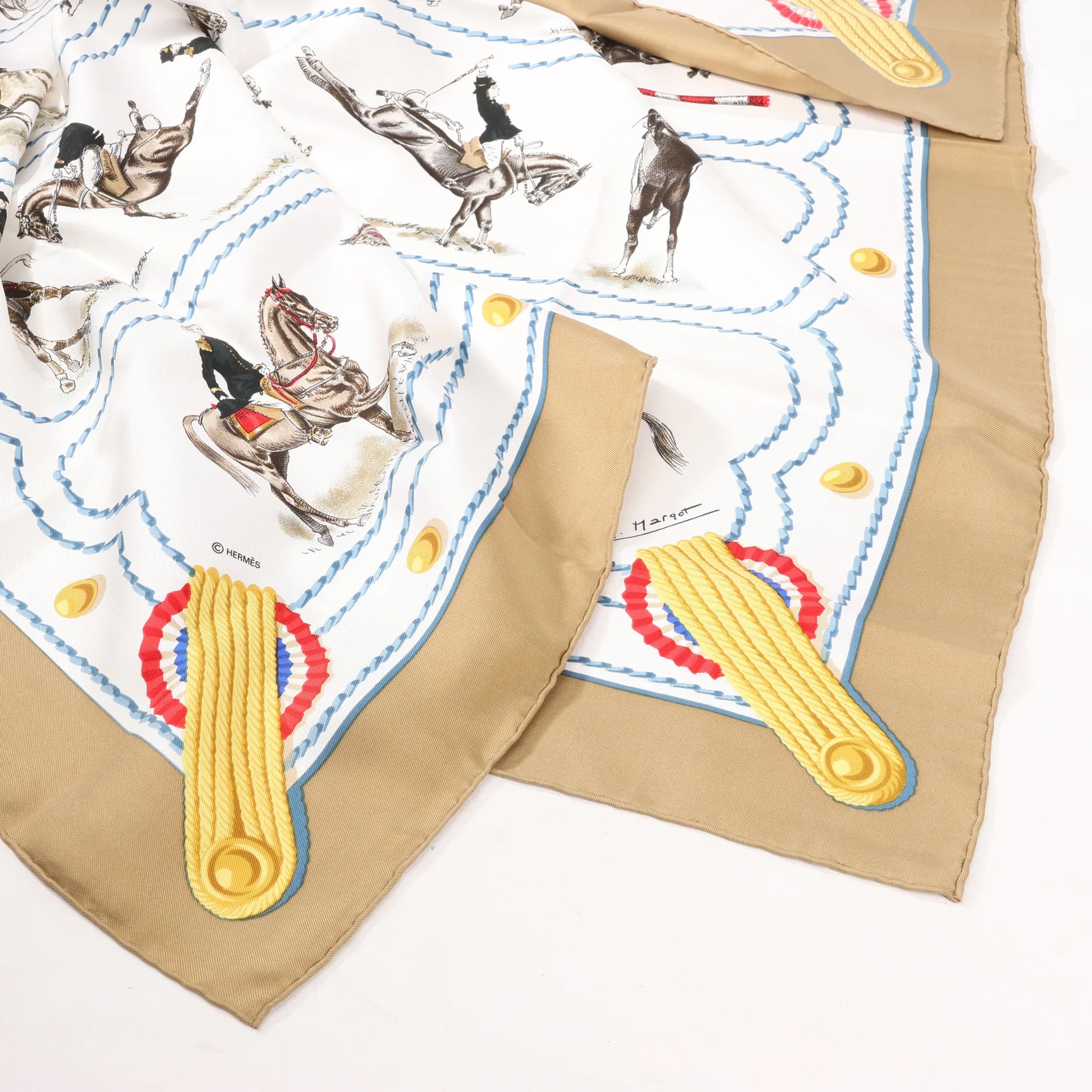 Hermès Carré 90 "CADRE NOIR" Silk handkerchief in Beige