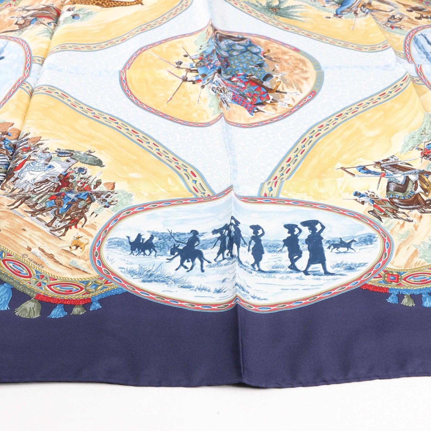 Hermès Carré 90 "CAVALIERS PEULS" Silk handkerchief in Navy Blue