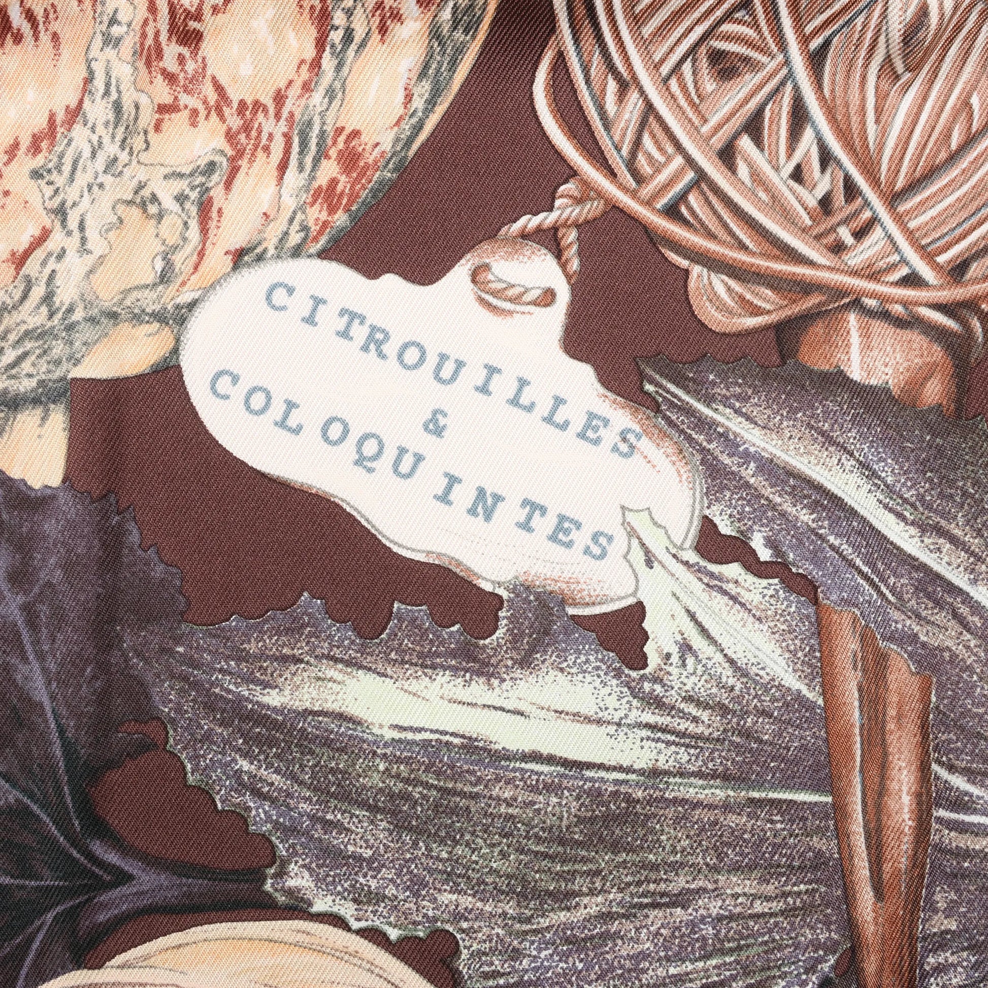 Hermès Carré 90 "CITROUILLES&COLOQU INTES" Silk handkerchief in Brown
