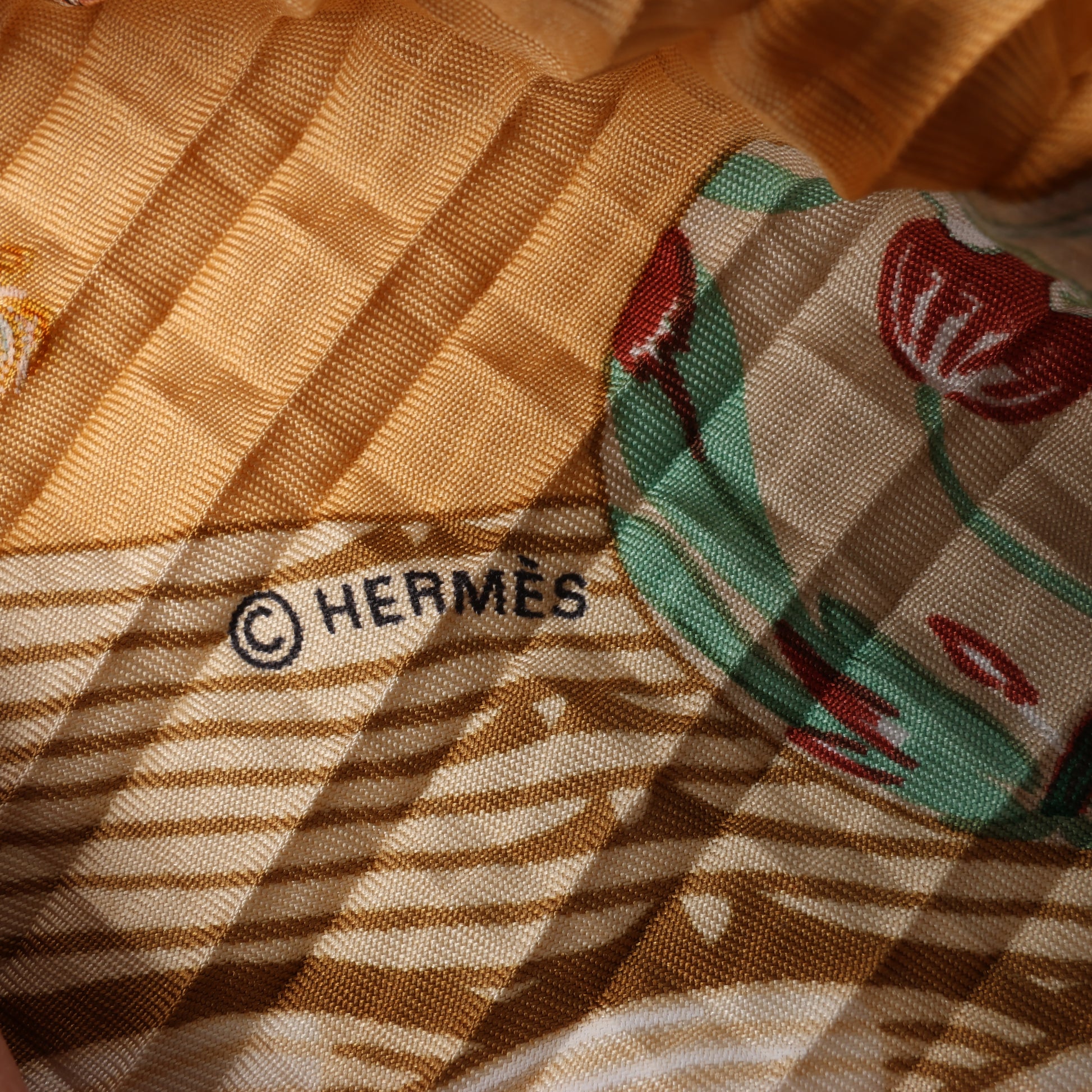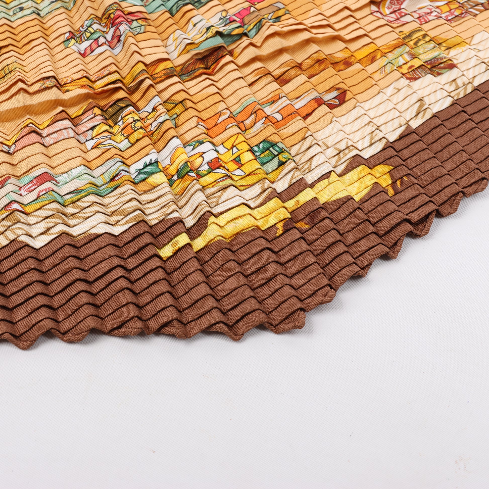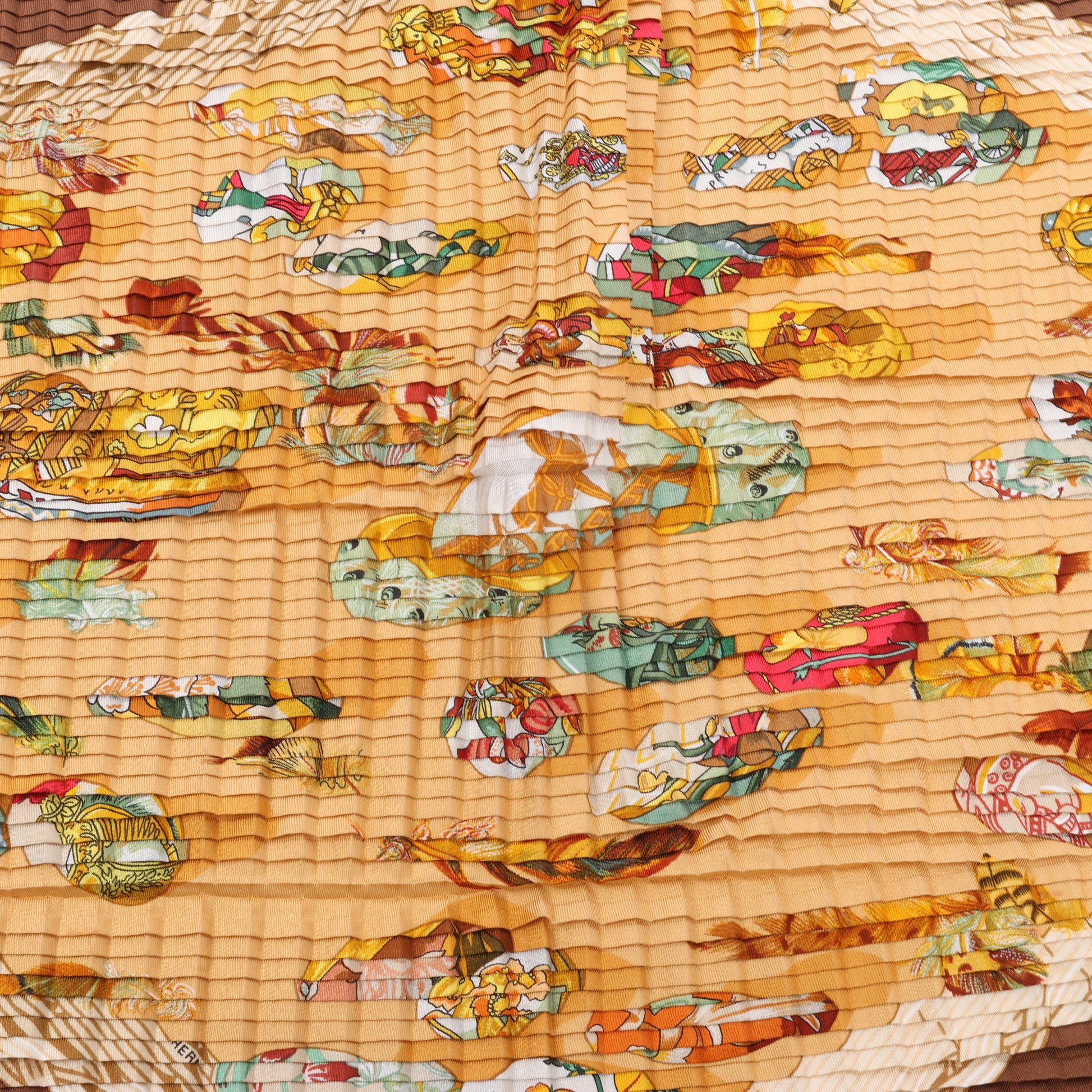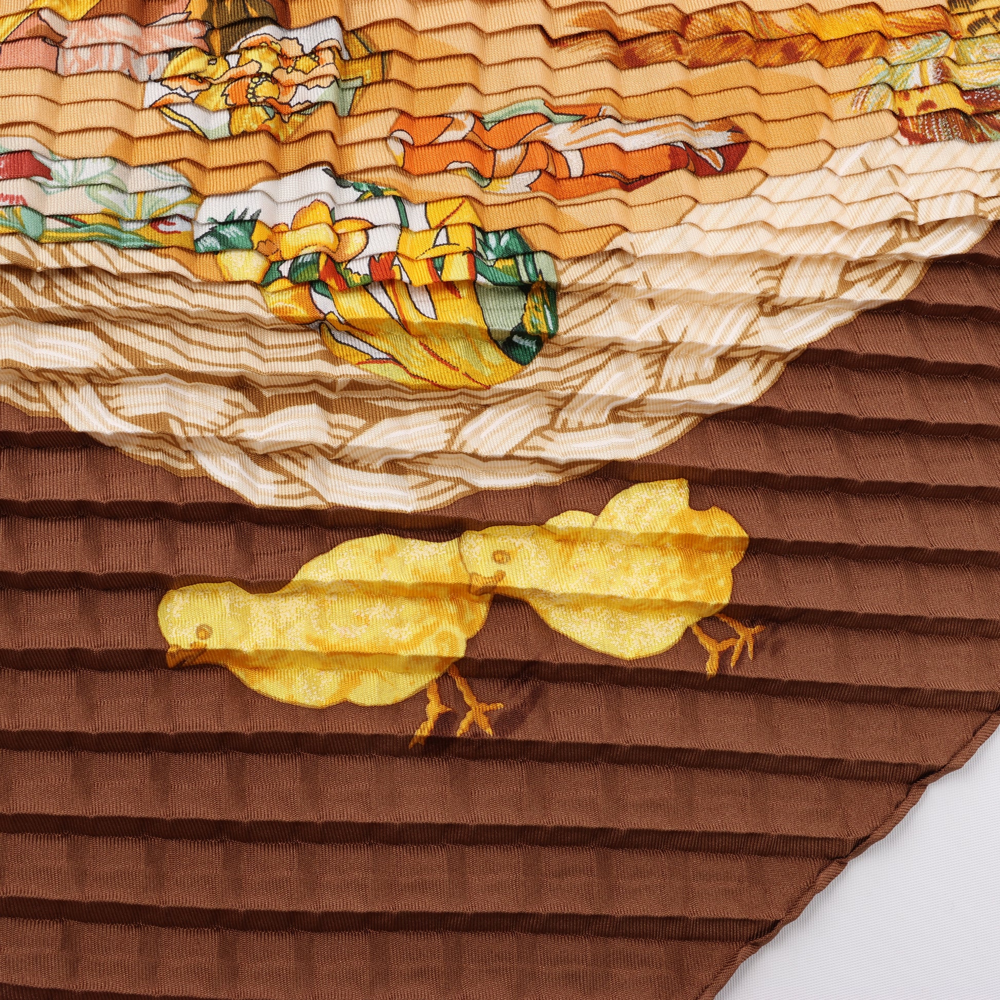 Hermès Carré 90 "Couvee D Hermes" Double Pleated Silk handkerchief in Brown
