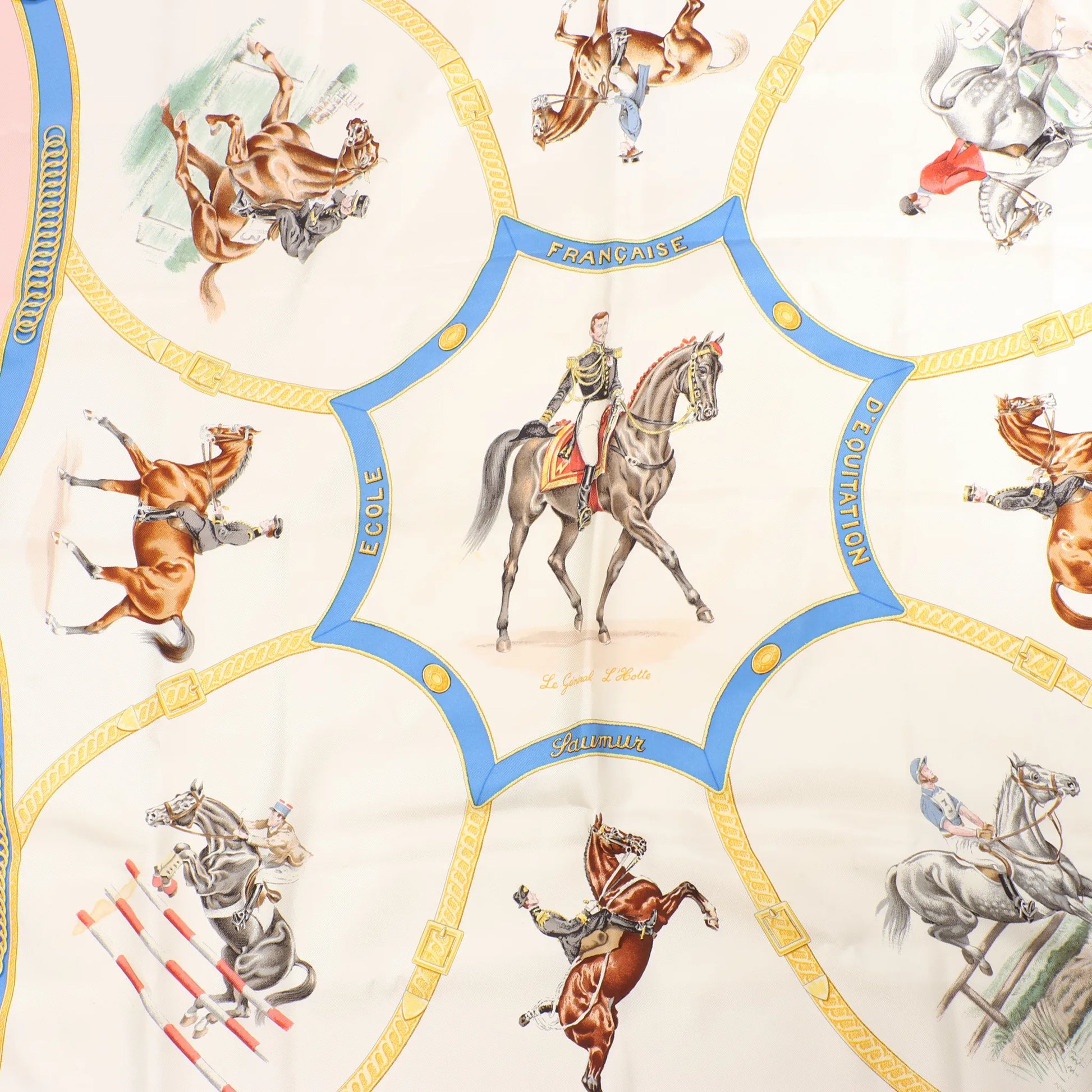 Hermès Carré 90 "Ecole Française d'Equitation" Silk handkerchief in Pink