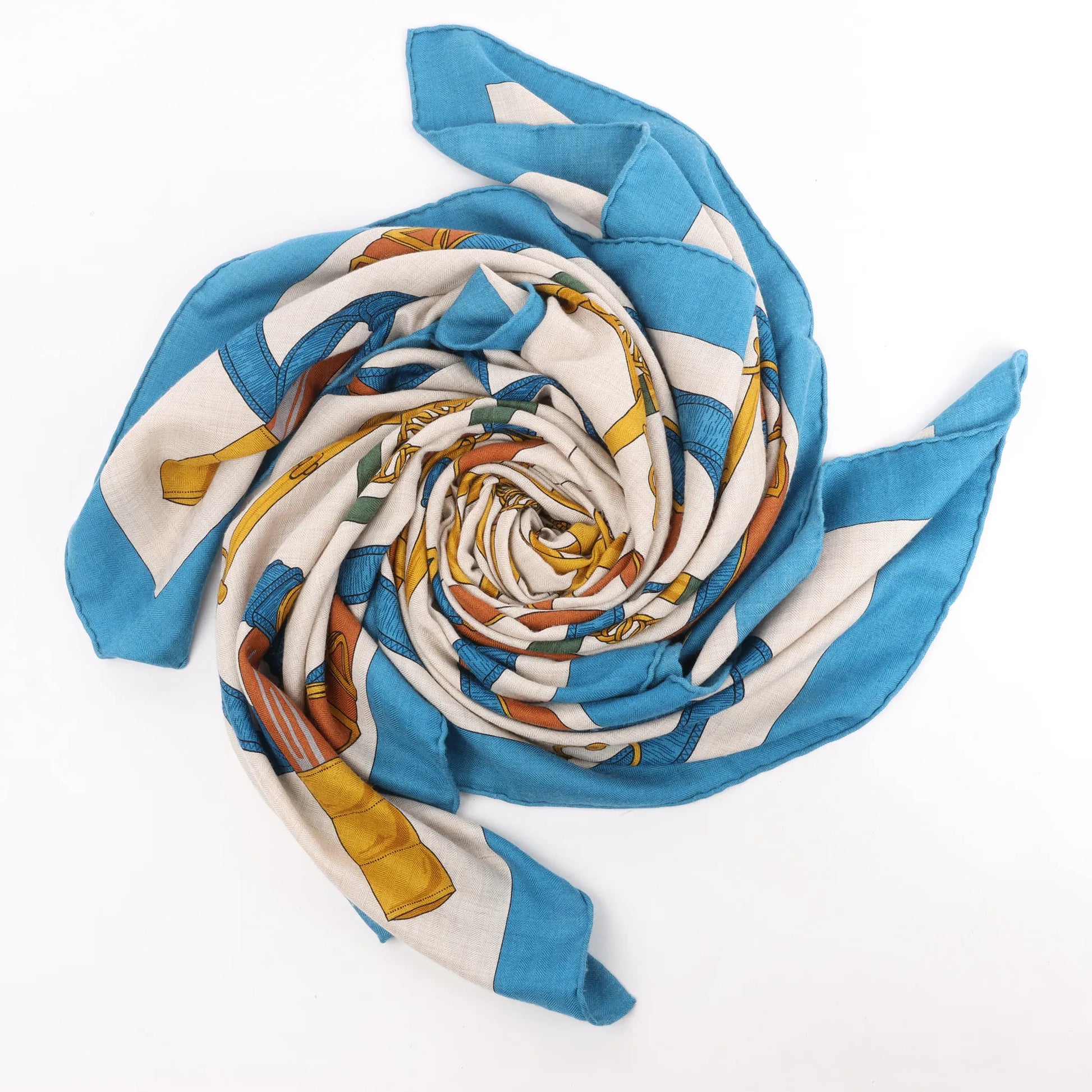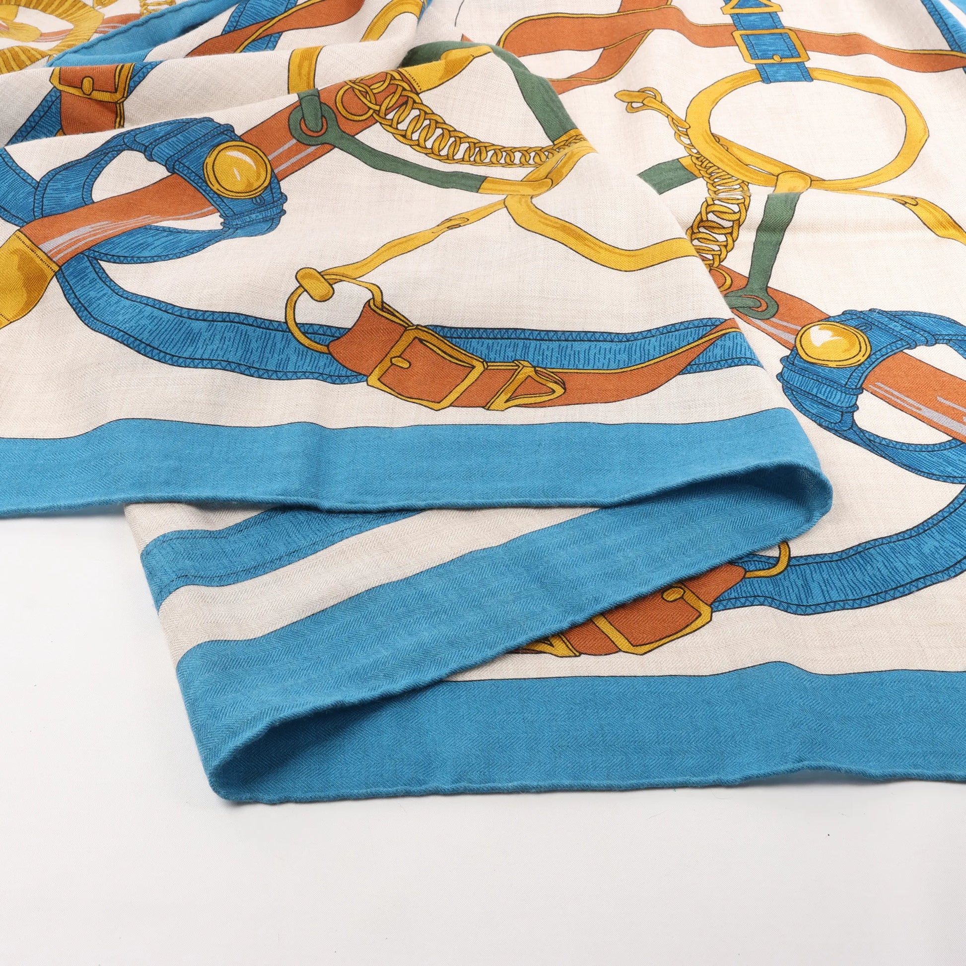 Hermès Carré Géant "Eperon d'or Golden" Cashmere & Silk handkerchief in Blue x Beige