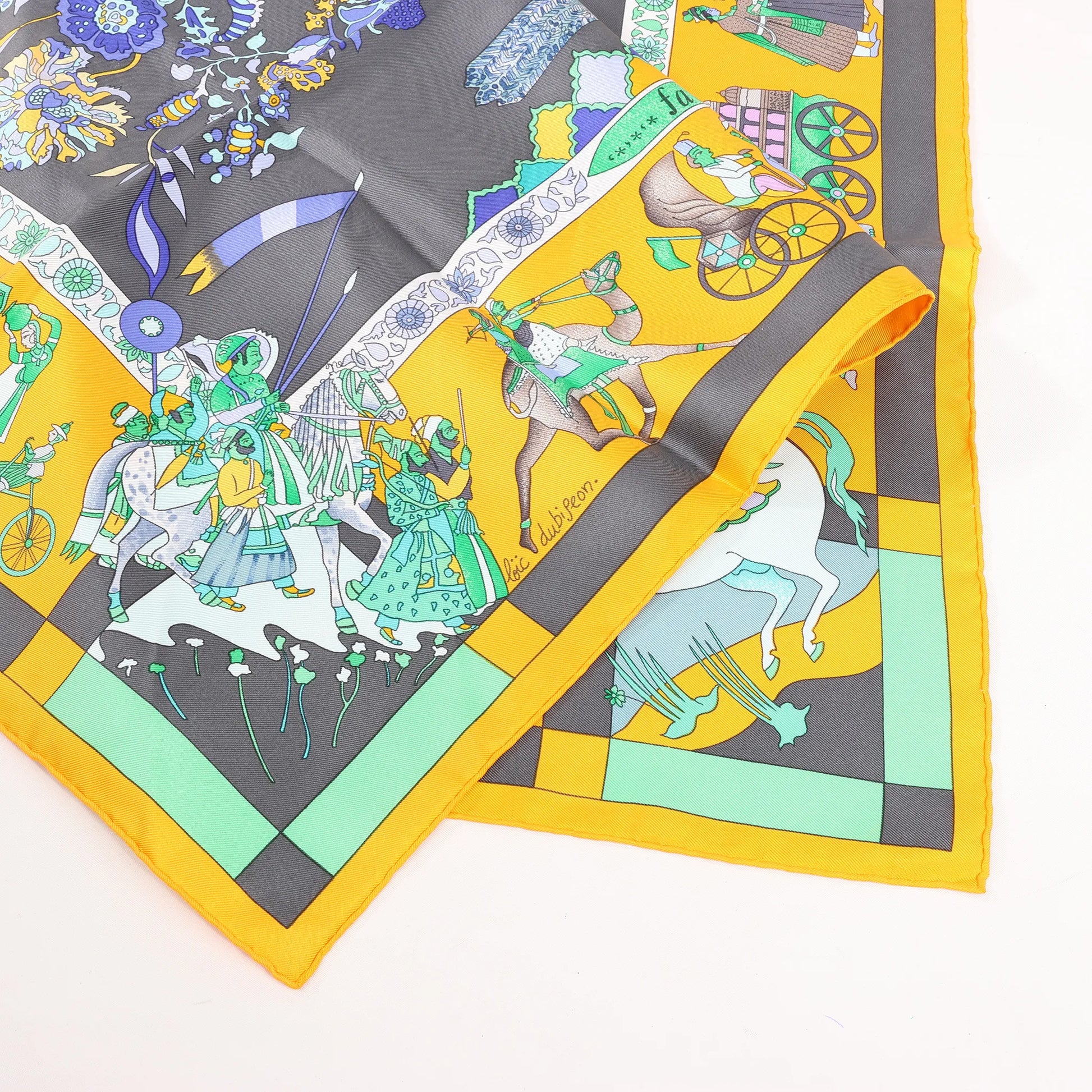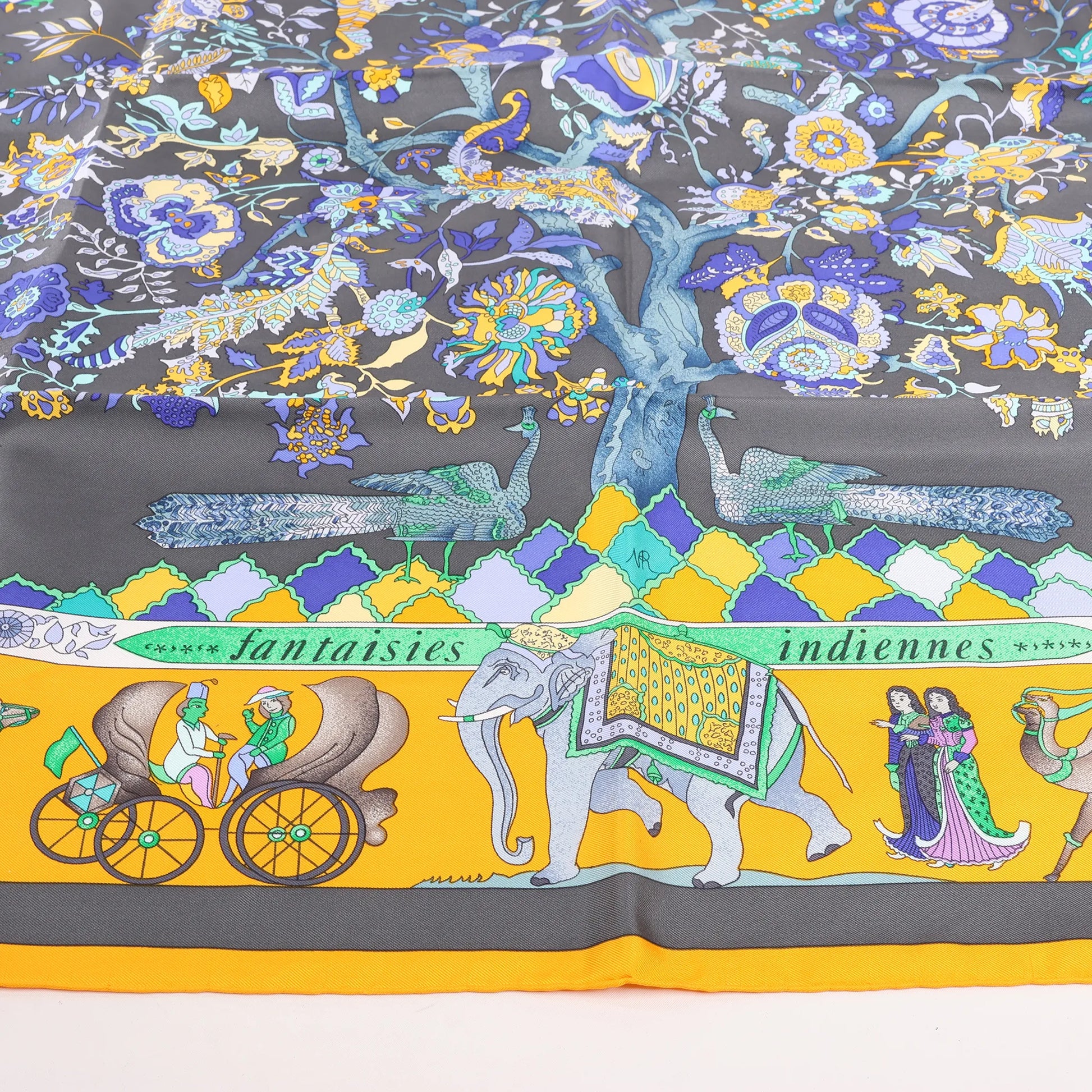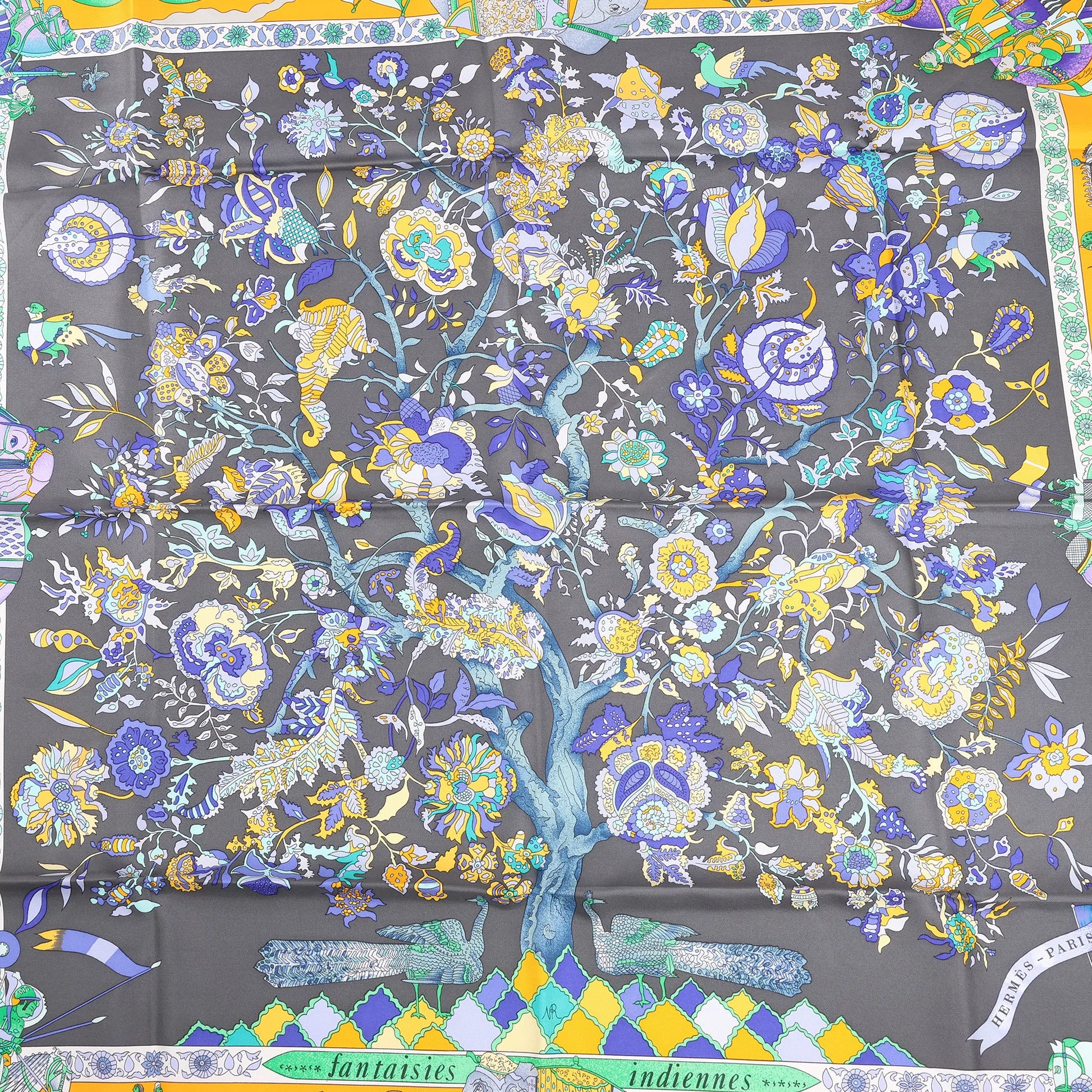 Hermès Carré 90 "Fantaisies Indiennes" Silk handkerchief in Navy Blue x Yellow