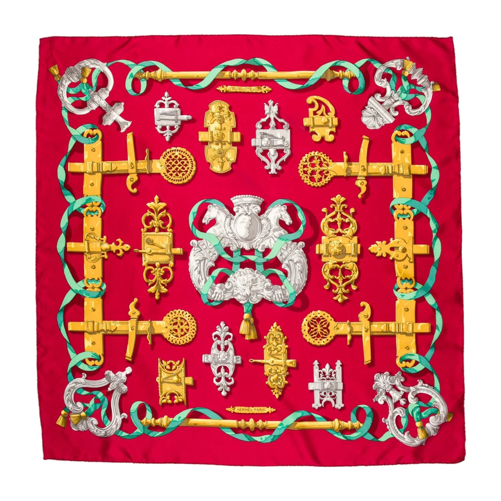 Hermès Carré 90 "Ferronnerie" Silk handkerchief in Red