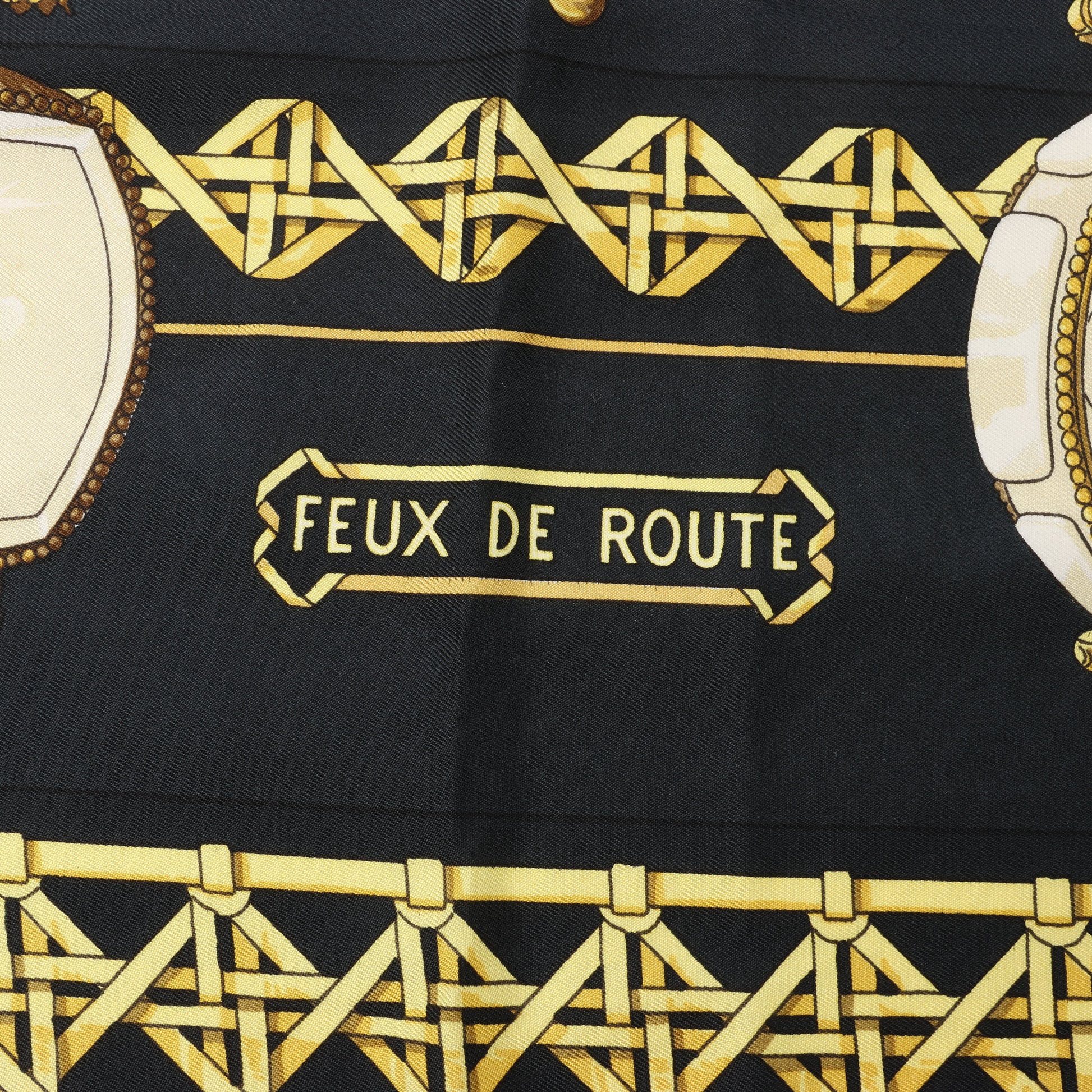 Hermès Carré 90 "Feux de Route" 100% Silk Scarf in Black x Gold