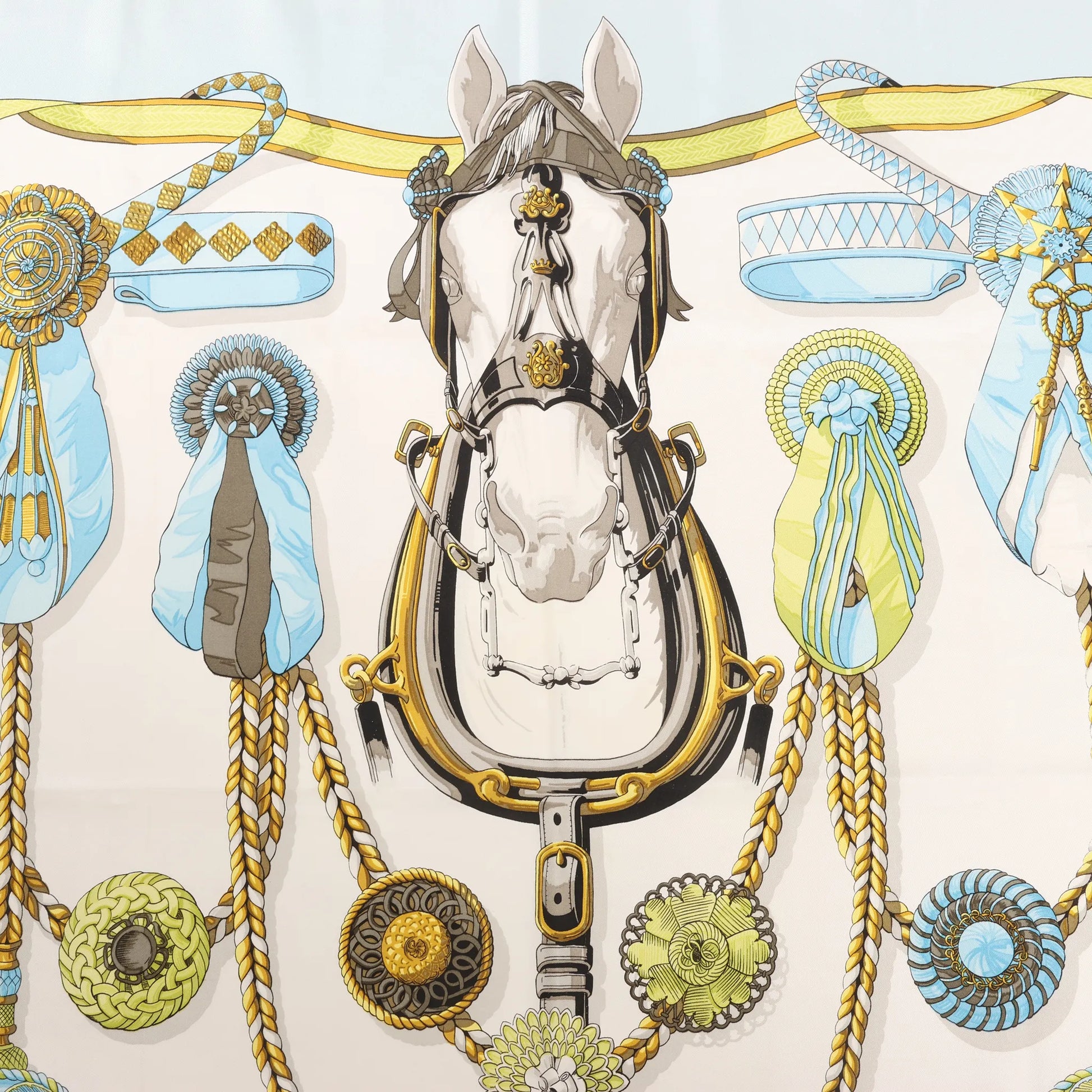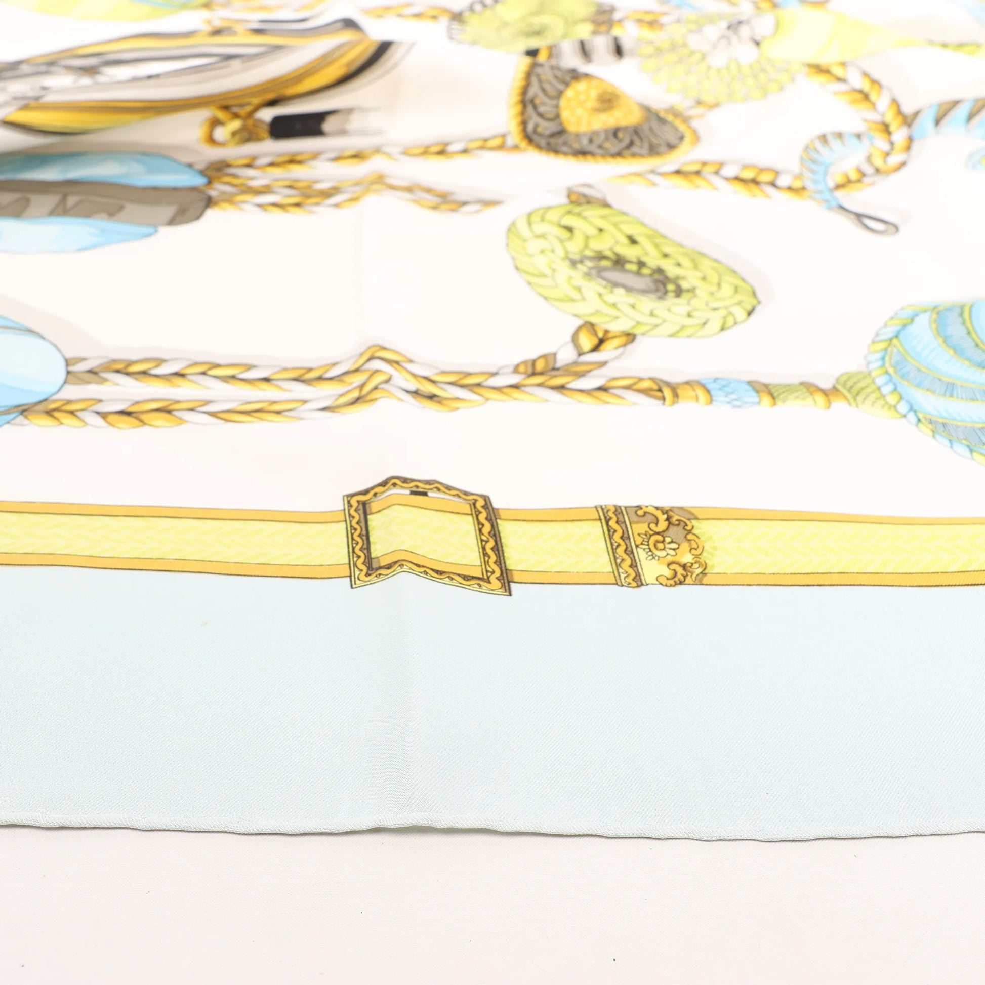 Hermès Carré 90 "Frontaux et Cocardes" Silk handkerchief in Blue
