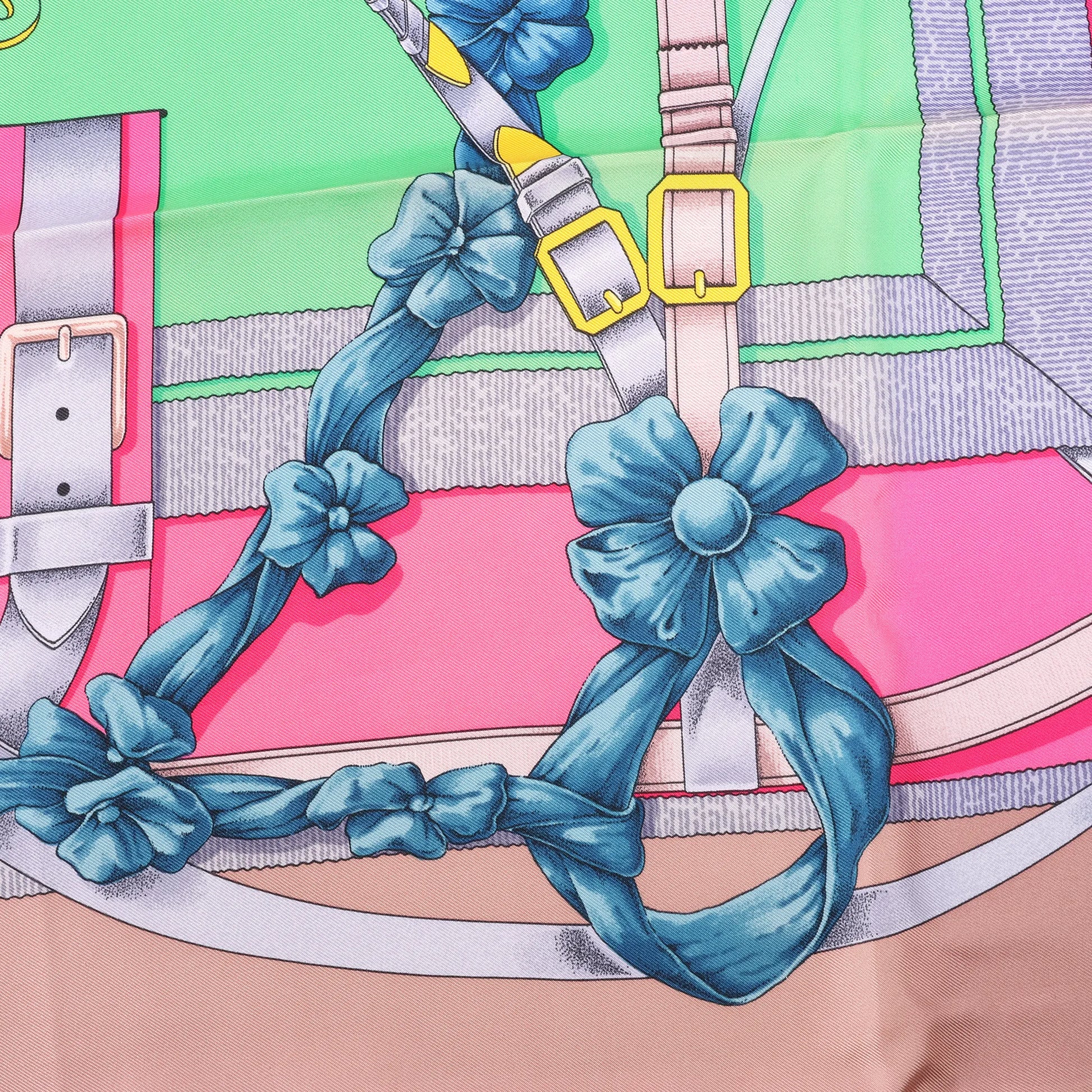 Hermès Carré 90 "GRAND MANEGE" Silk handkerchief in Pink x Green