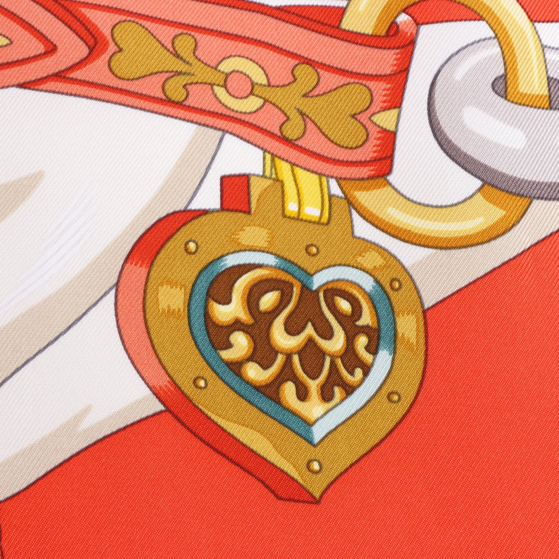Hermès Carré 90 "HARNAIS DE COEUR" Silk handkerchief in Red