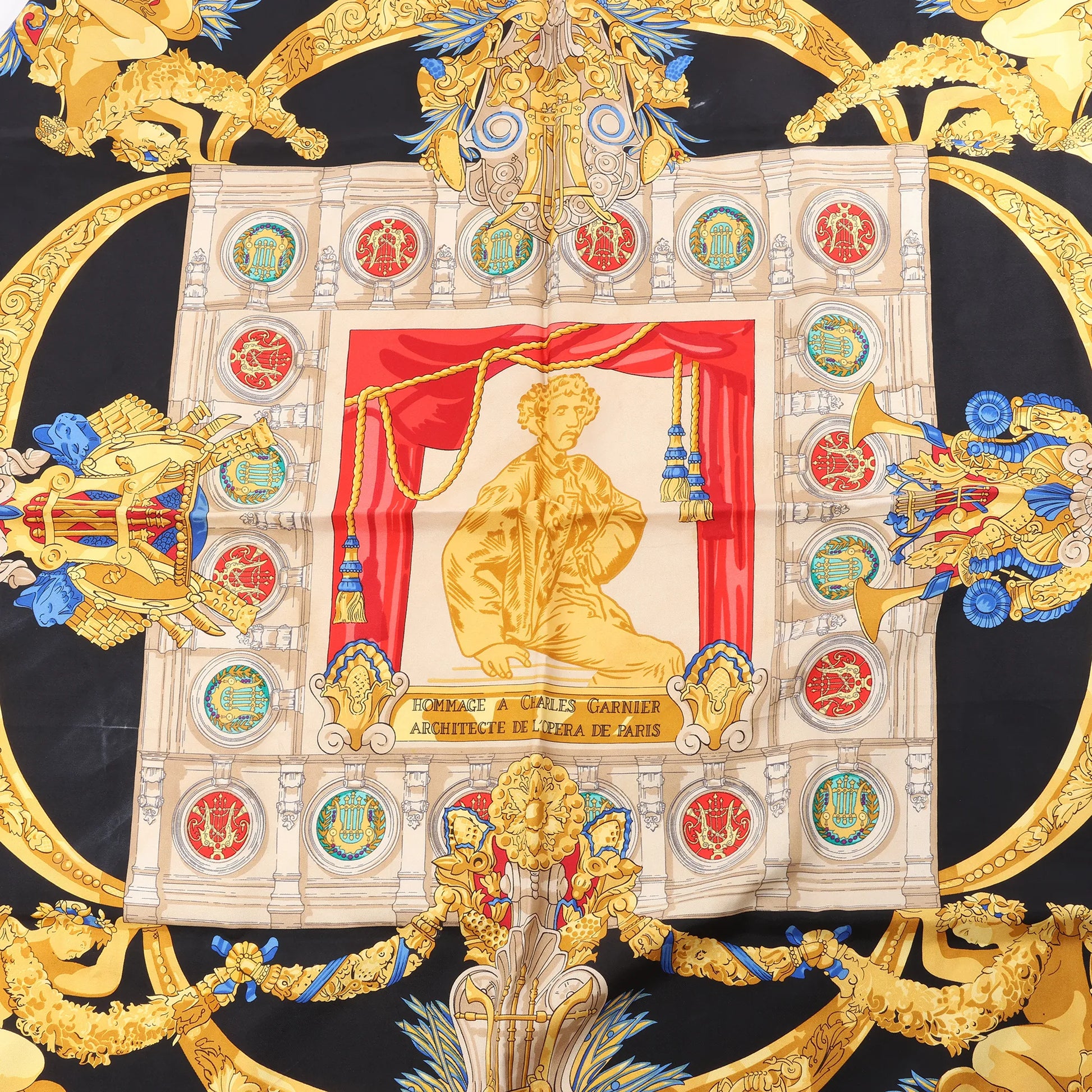 Hermès Carré 90 "HOMMAGE A CHARLES GARNIER" Silk handkerchief in Black
