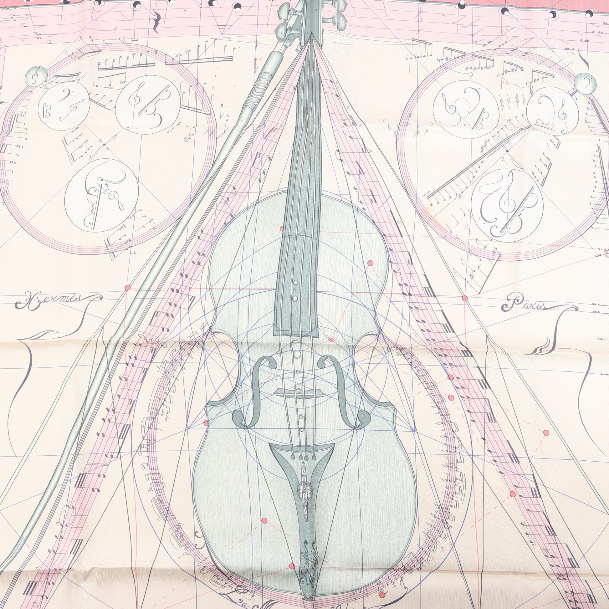 Hermès Carré 90 "La Musique Des Spheres" 100% Silk Scarf in Pink