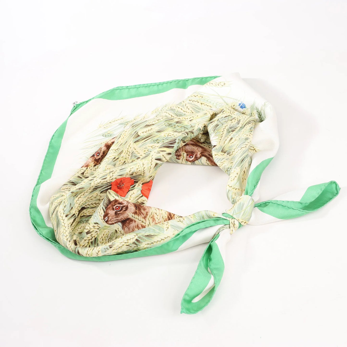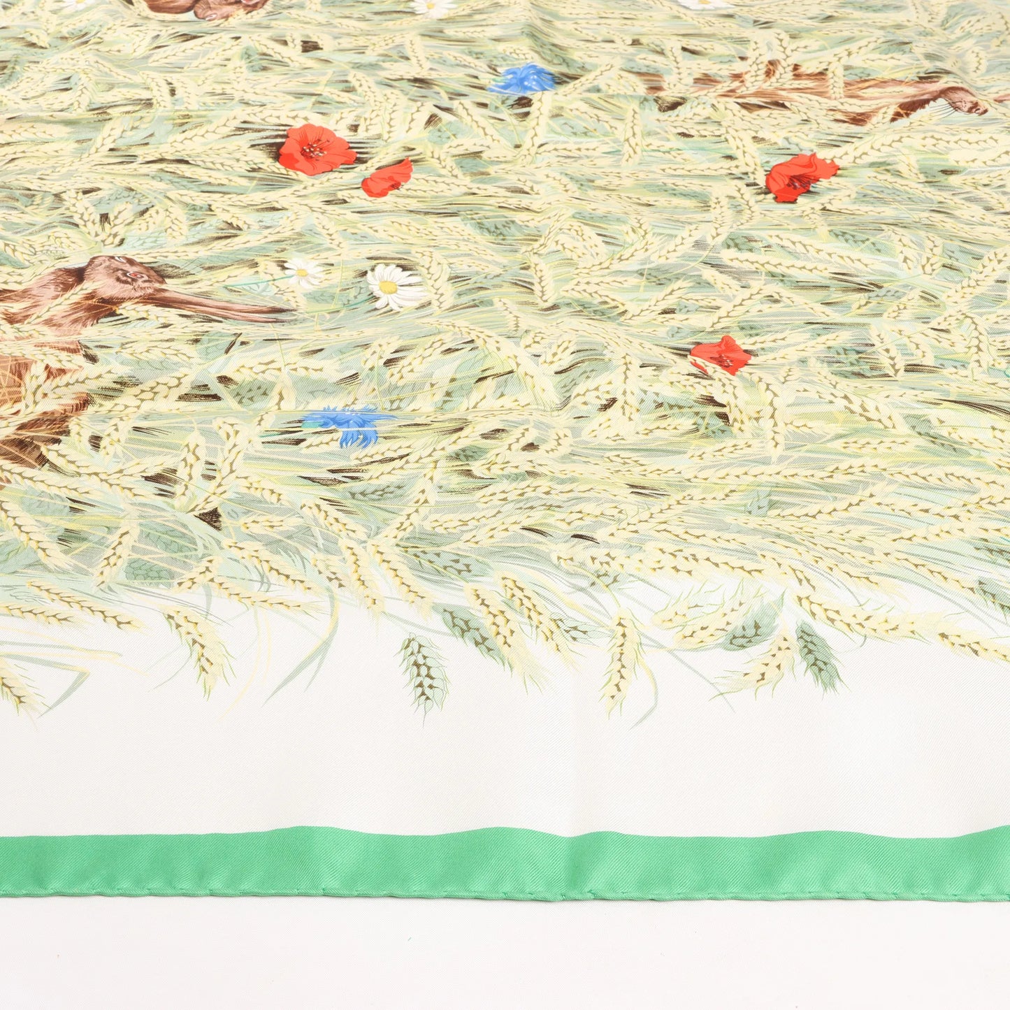 Hermès Carré 90 "Lapins Dans un Champ de blé" Silk handkerchief in Green