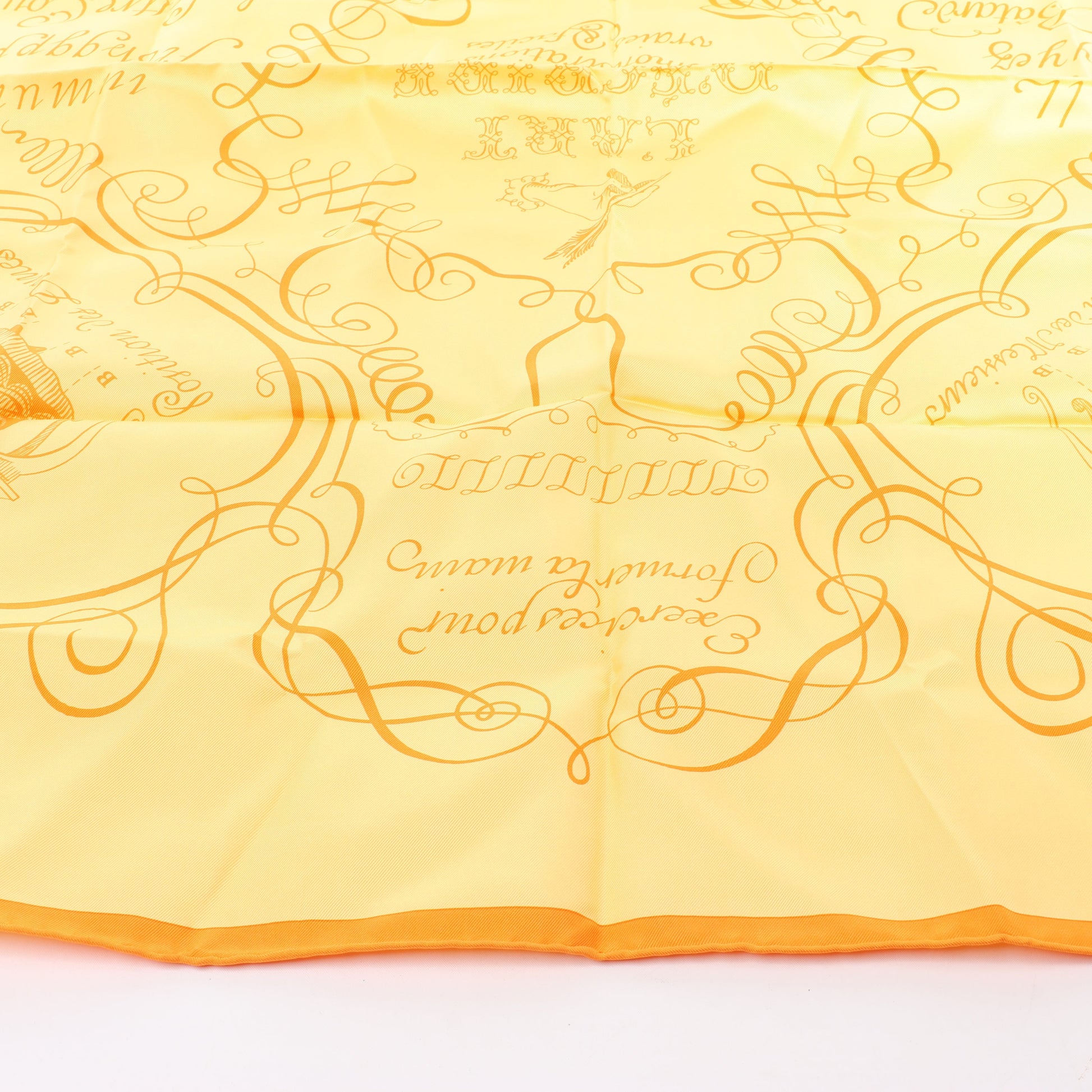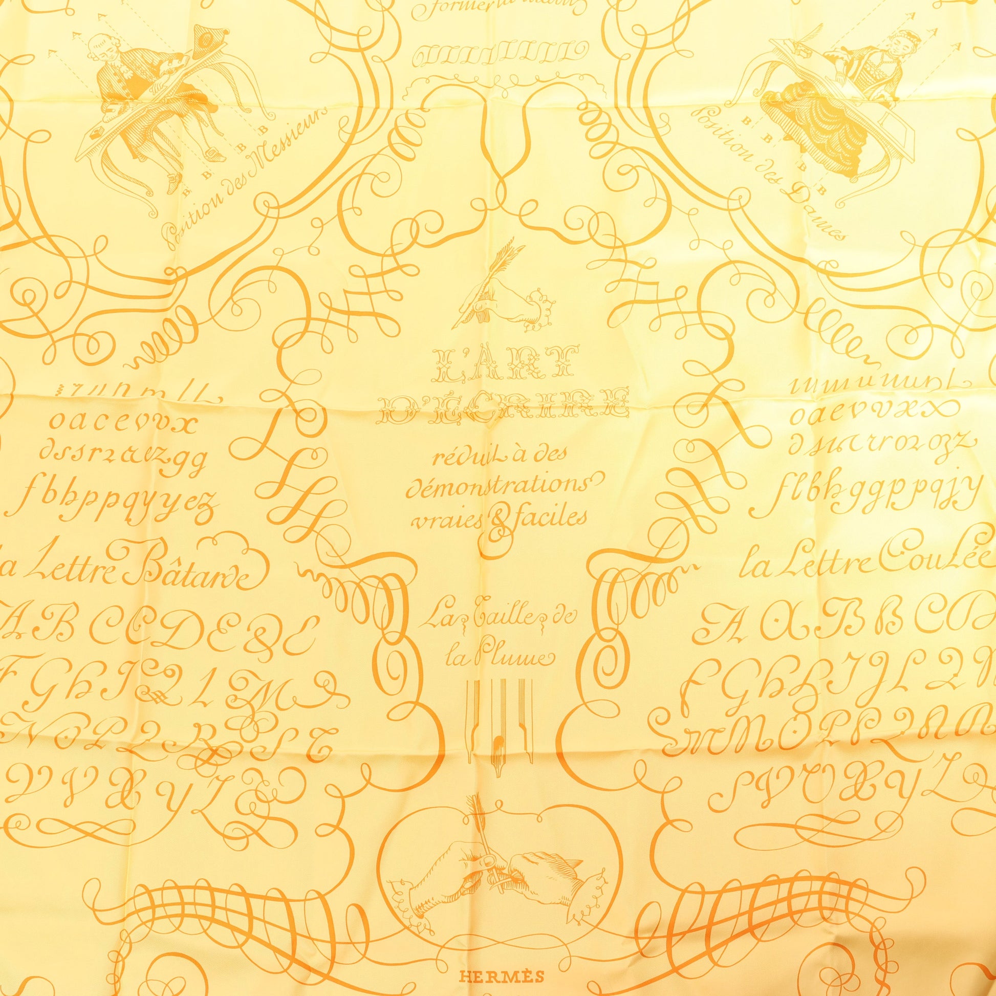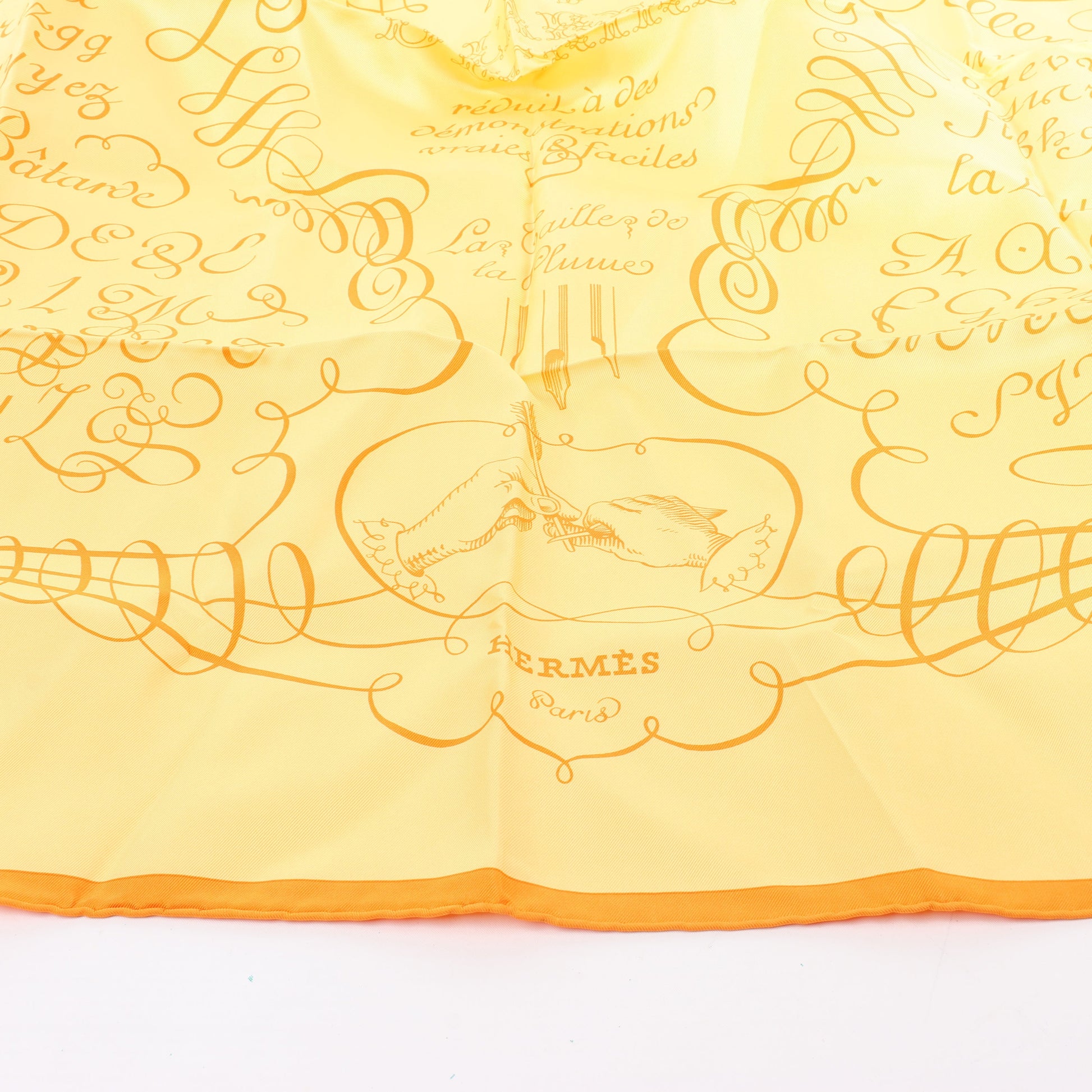 Hermès Carré 90 "L'ART D'ECRIRE" Silk handkerchief in Yellow