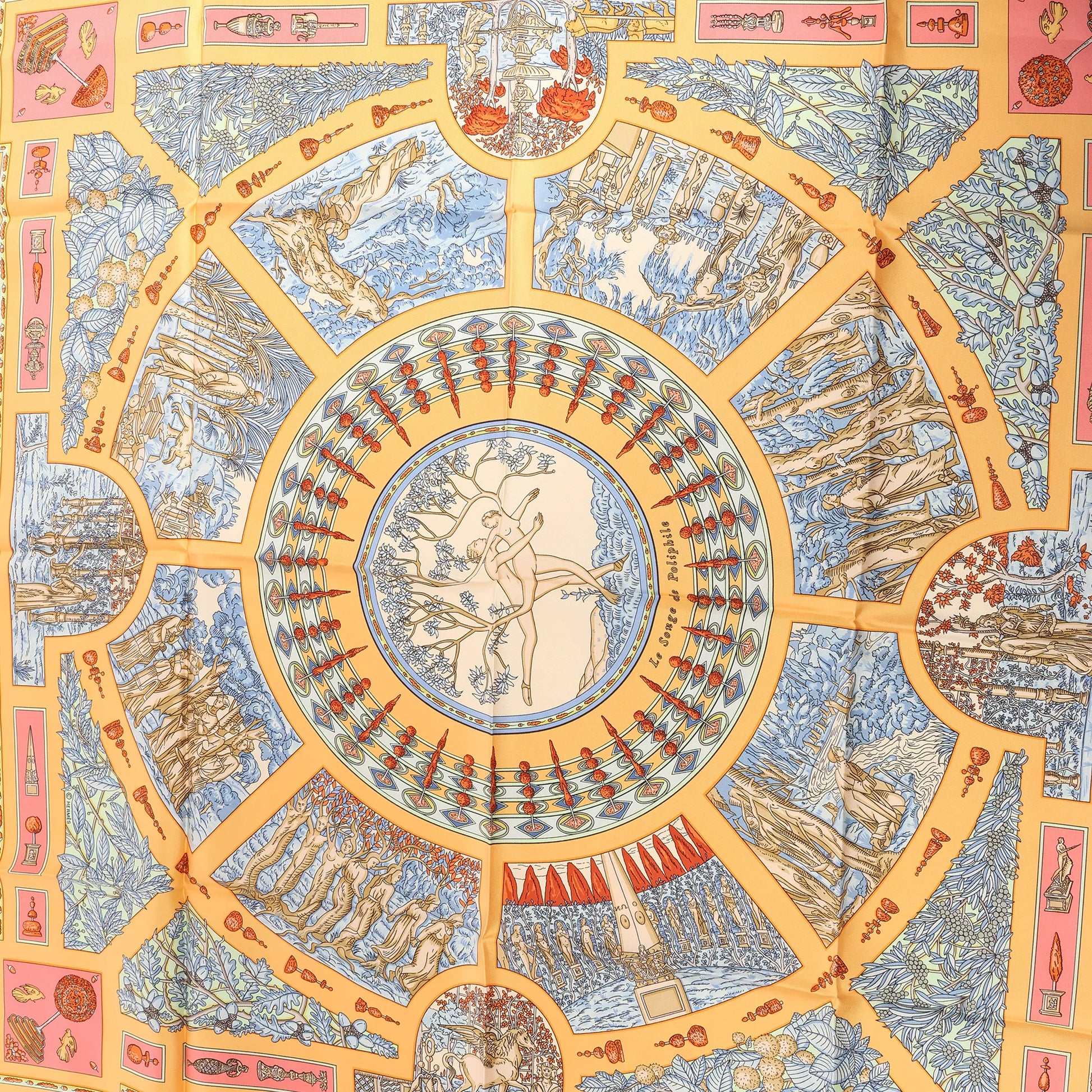 Hermès Carré 90 "Le Songe de Poliphile" Silk handkerchief in Orange
