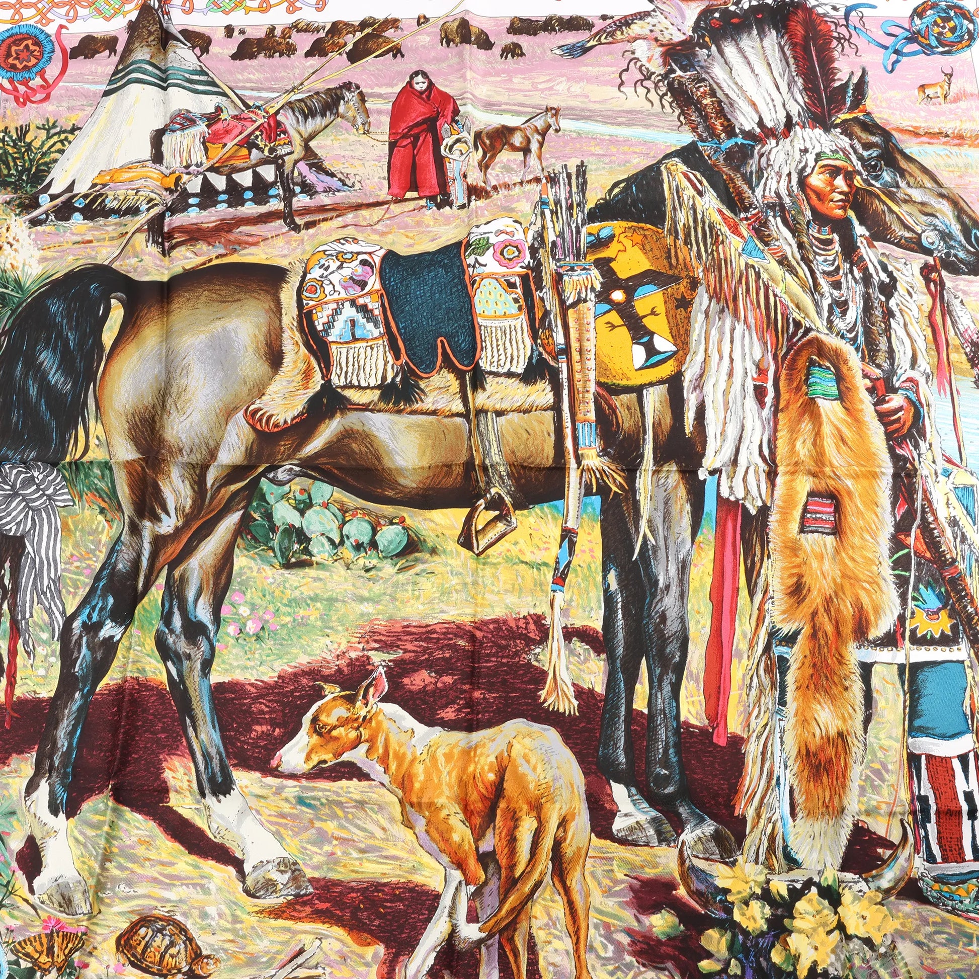 Hermès Carré 90 "Les Cheyennes" Silk handkerchief in Red