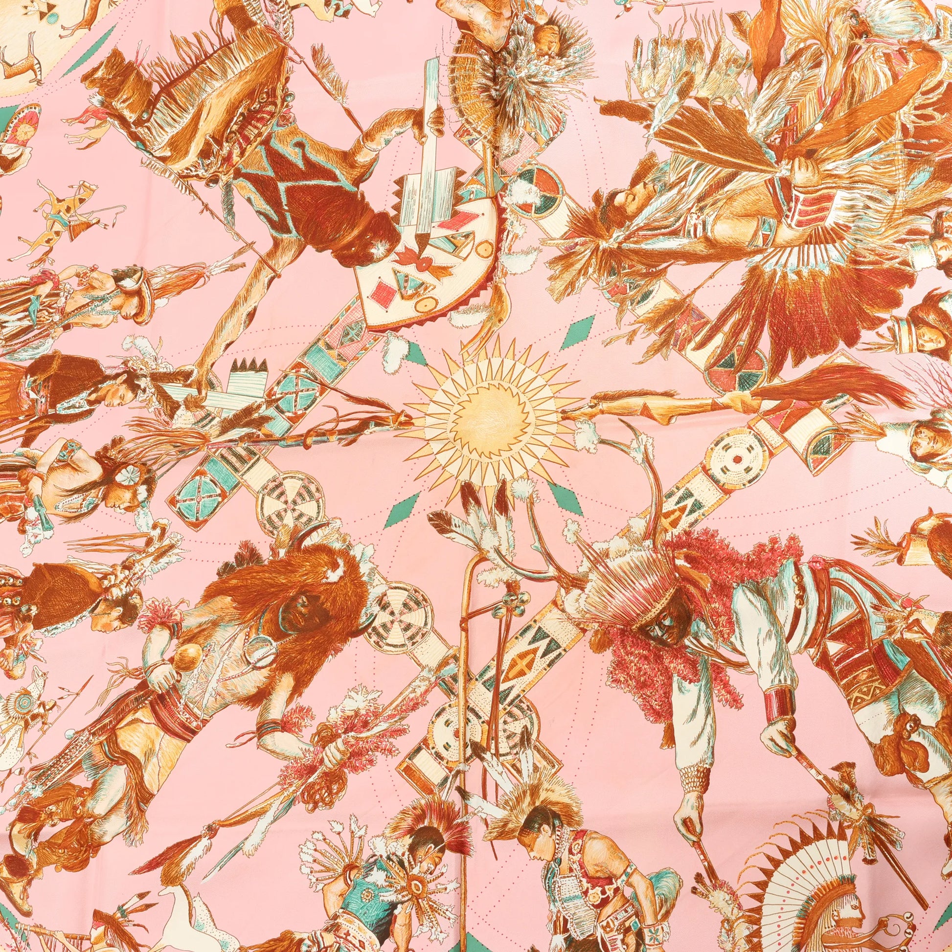 Hermès Carré 90 "LES DANSES DES INDIENS" Silk handkerchief in Pink