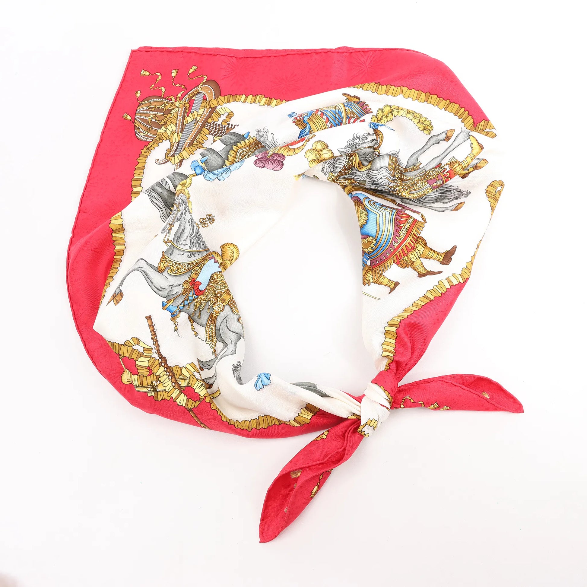 Hermès Carré 90 "LES FETES DU ROI SOLEIL" Silk handkerchief in Red