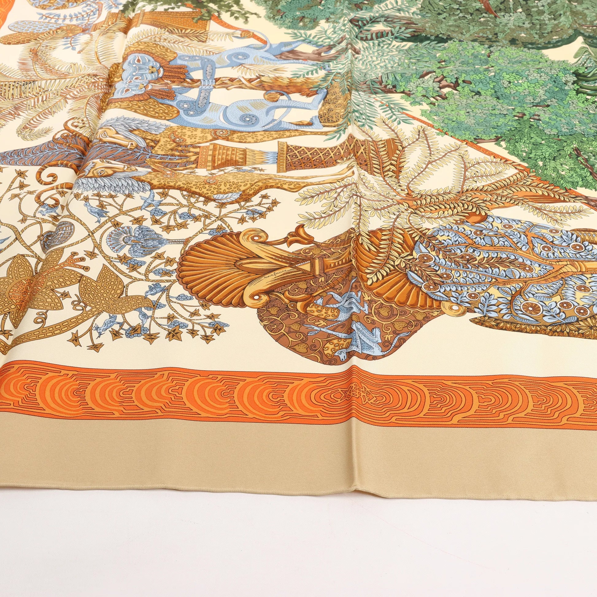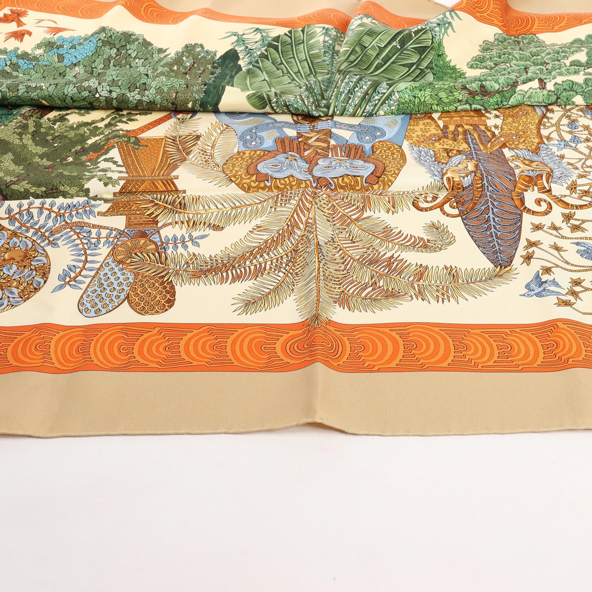 Hermès Carré 90 "Les Legendes de L'Arbre" Silk handkerchief in Beige