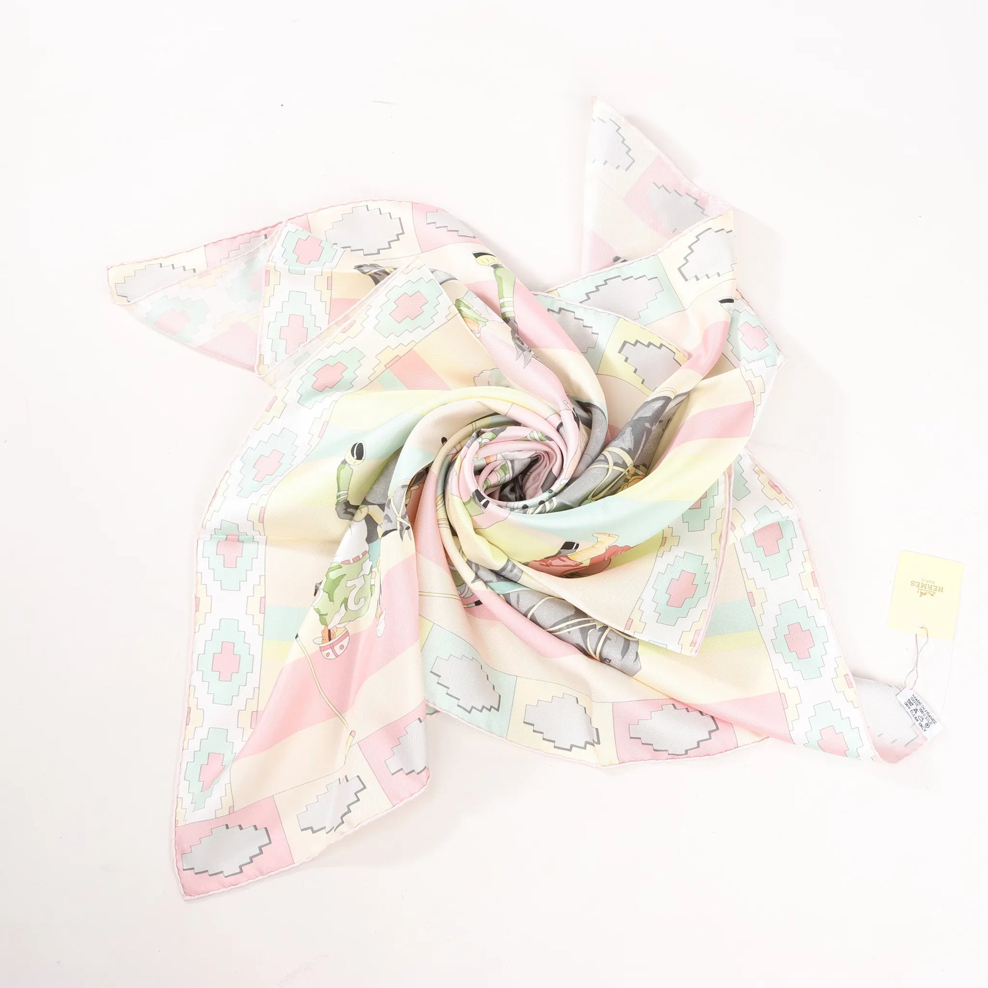 Hermes Carré 90 "LES PONEYS DE POLO" Silk handkerchief in Pink
