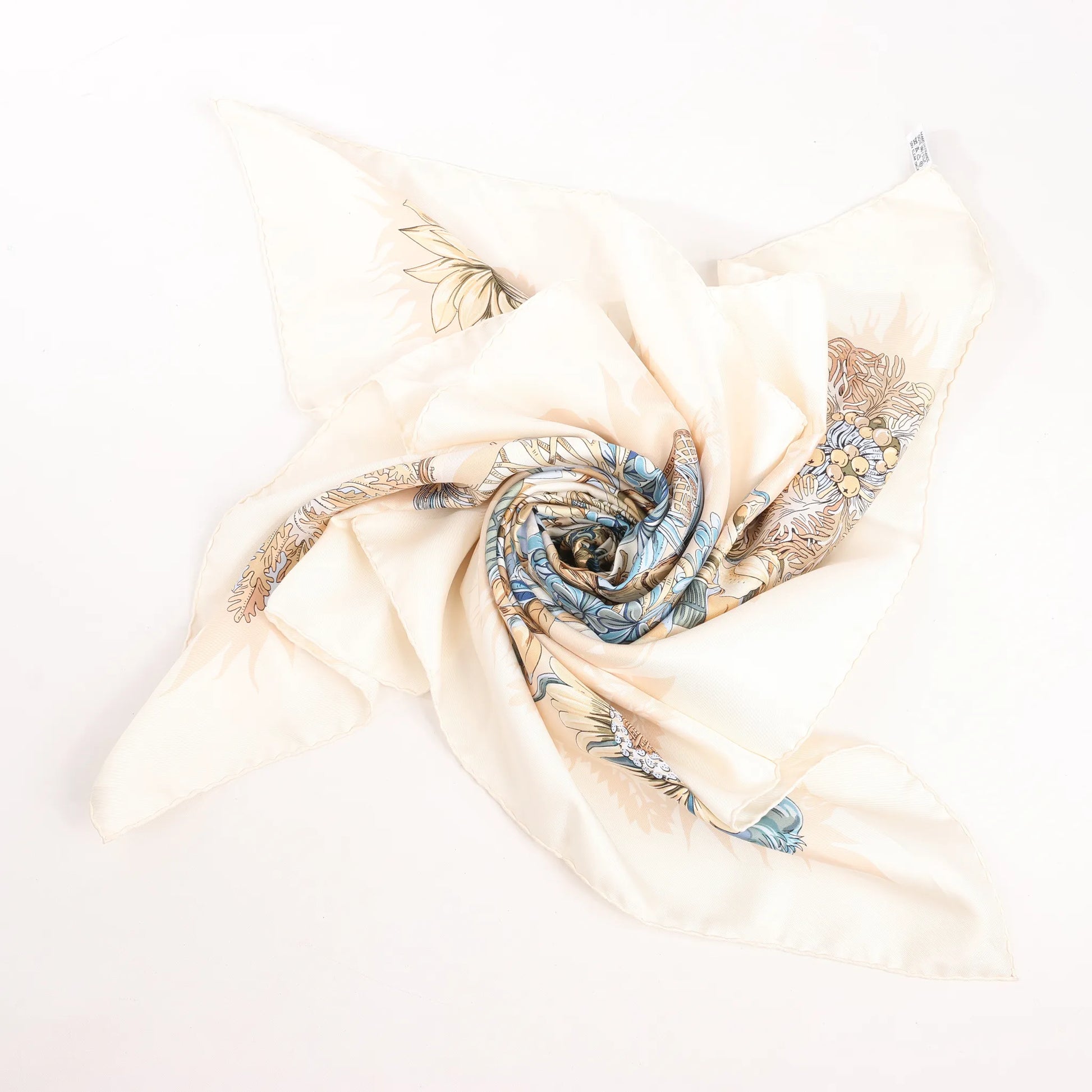 Hermès Carré 90 "LIle Deserte" Silk handkerchief in Beige