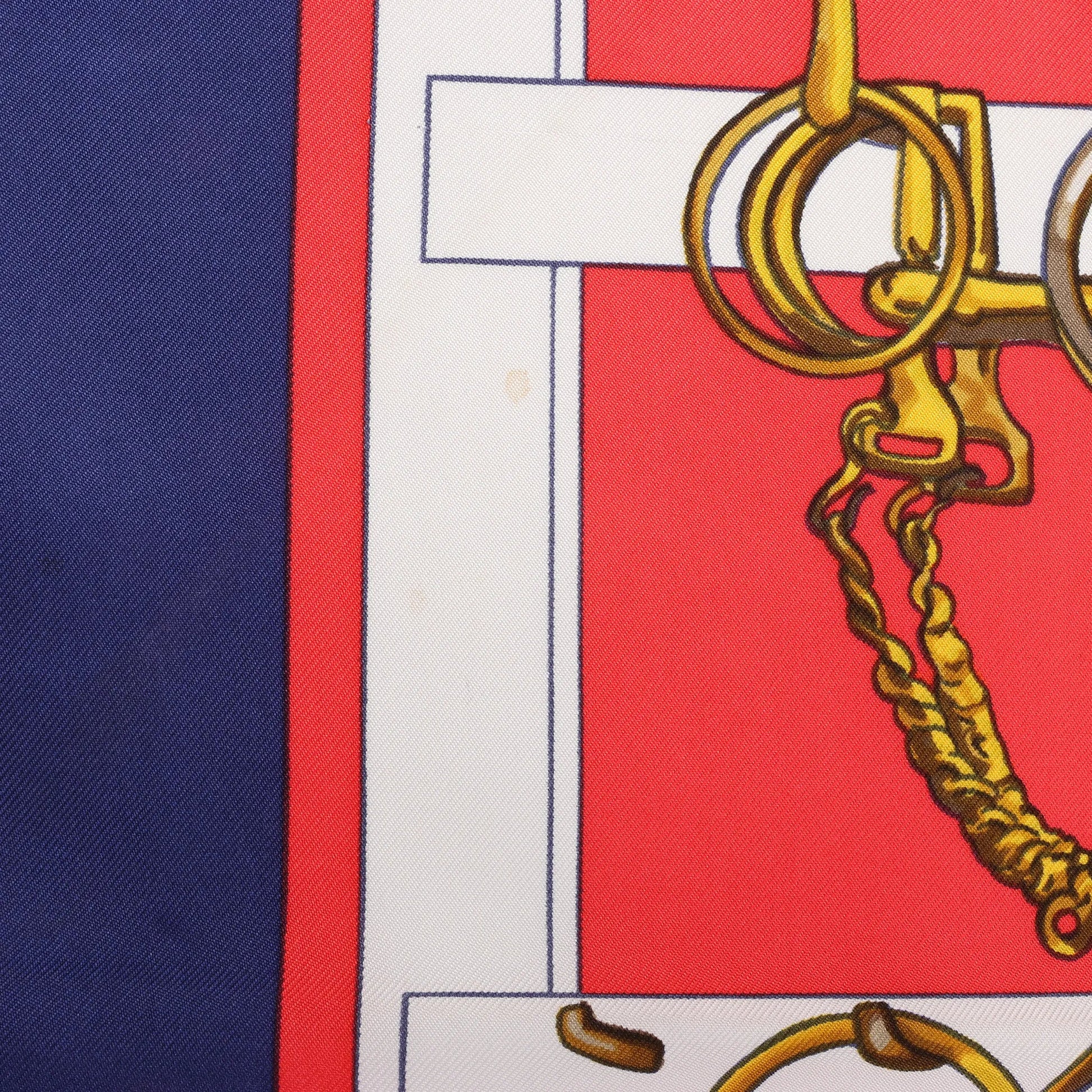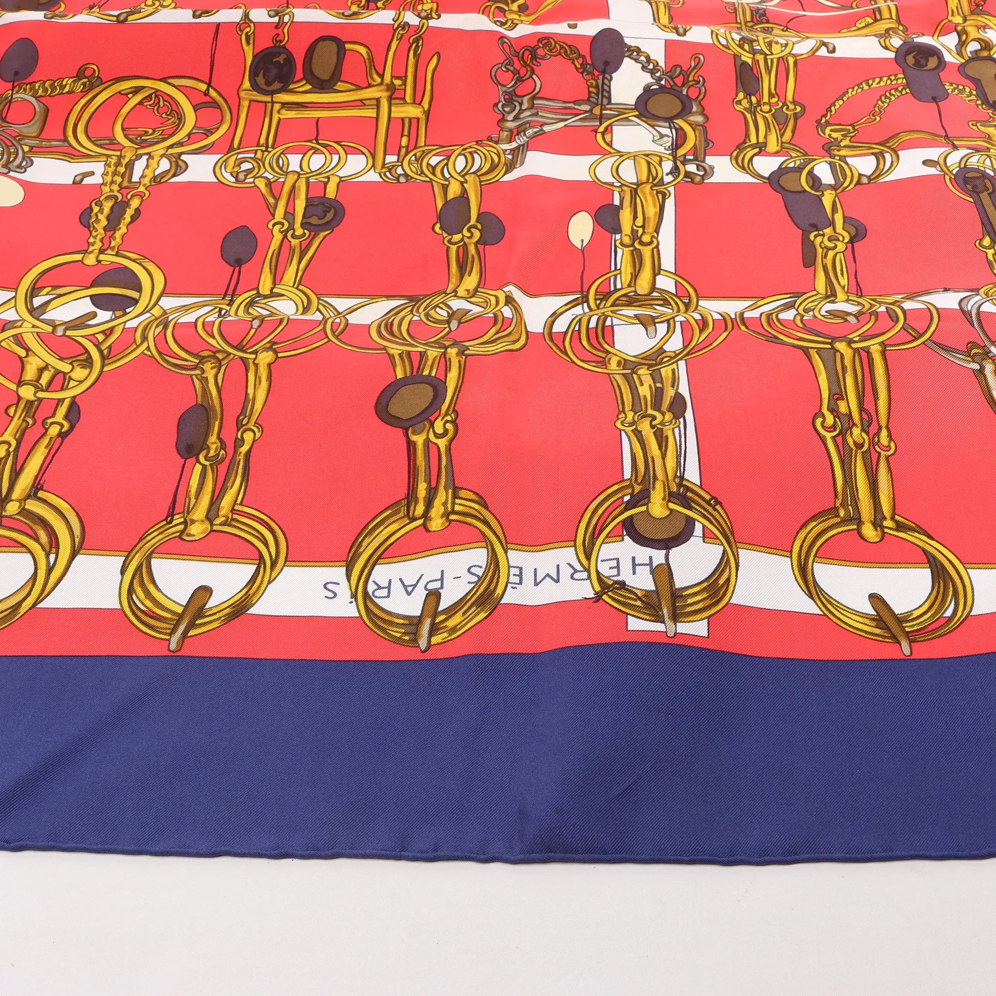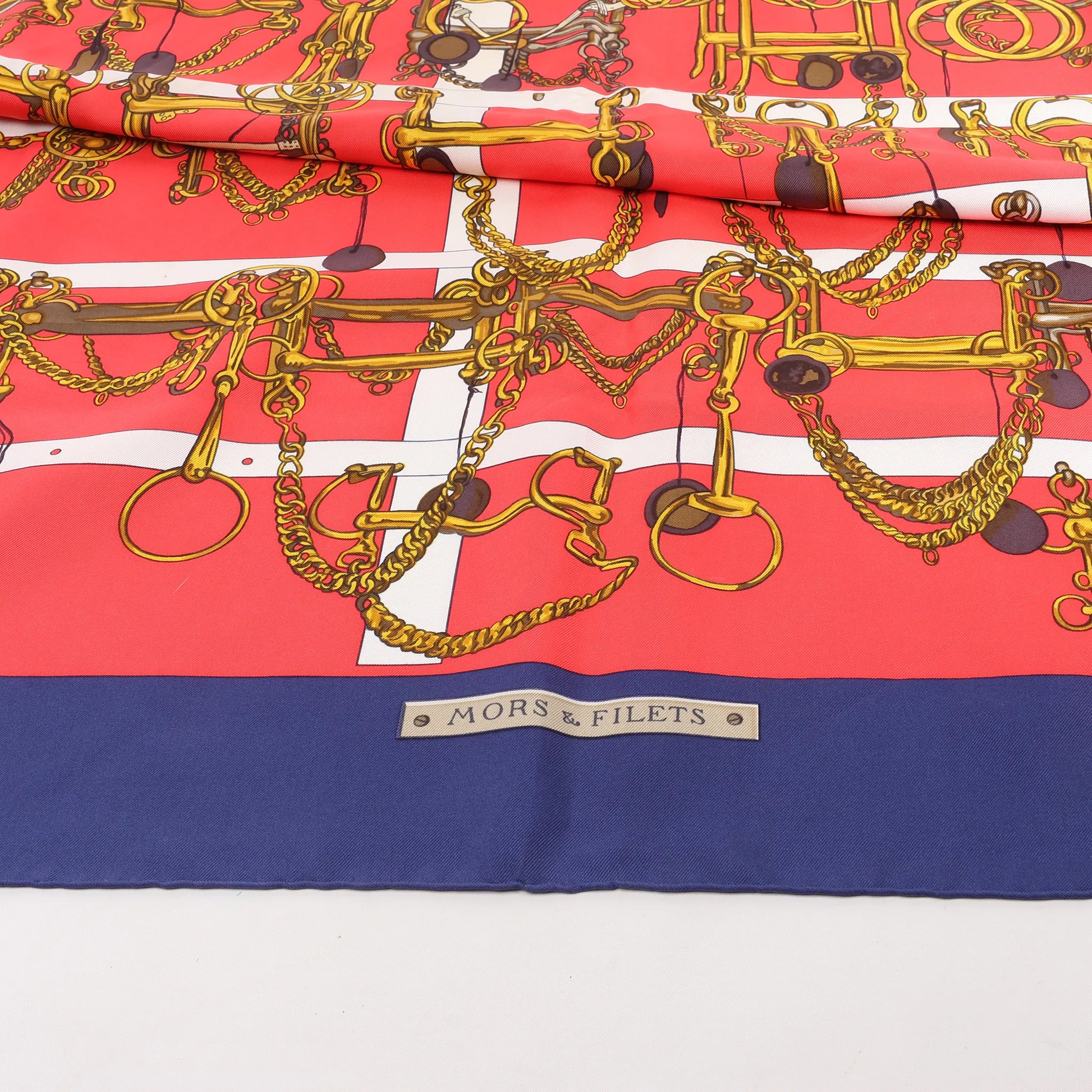 Hermès Carré 90 "MORS&FILETS" Silk handkerchief in Red x Navy Blue