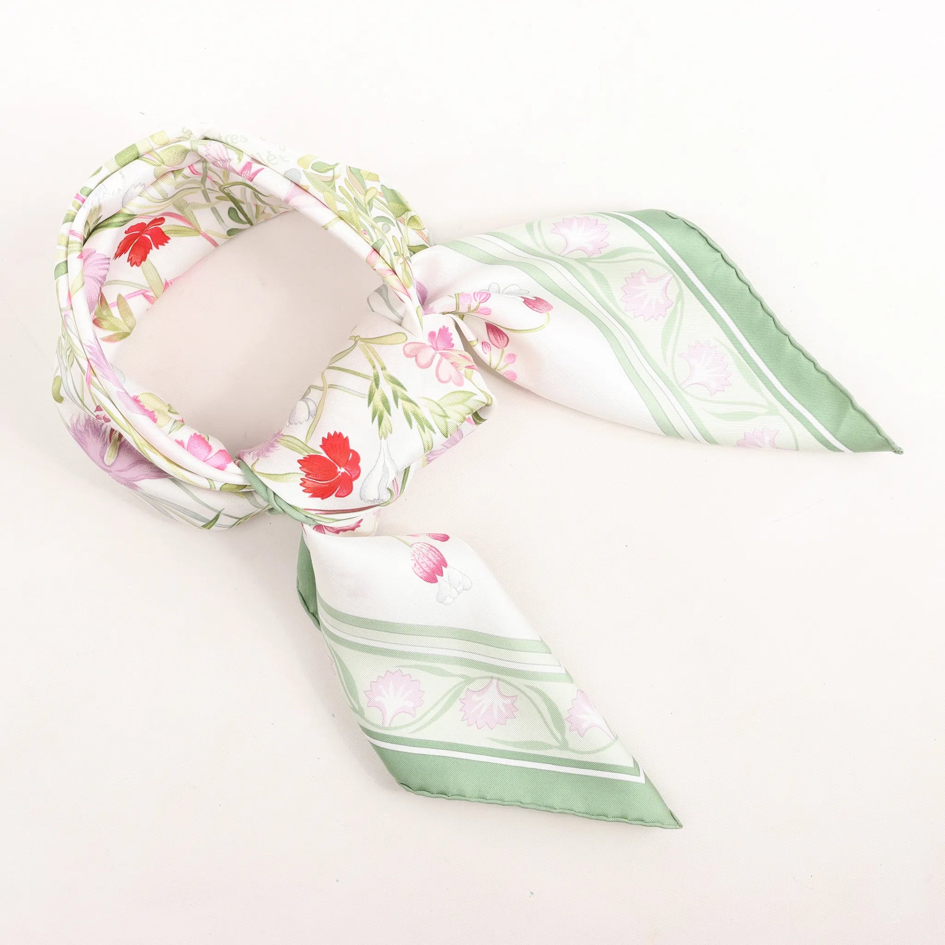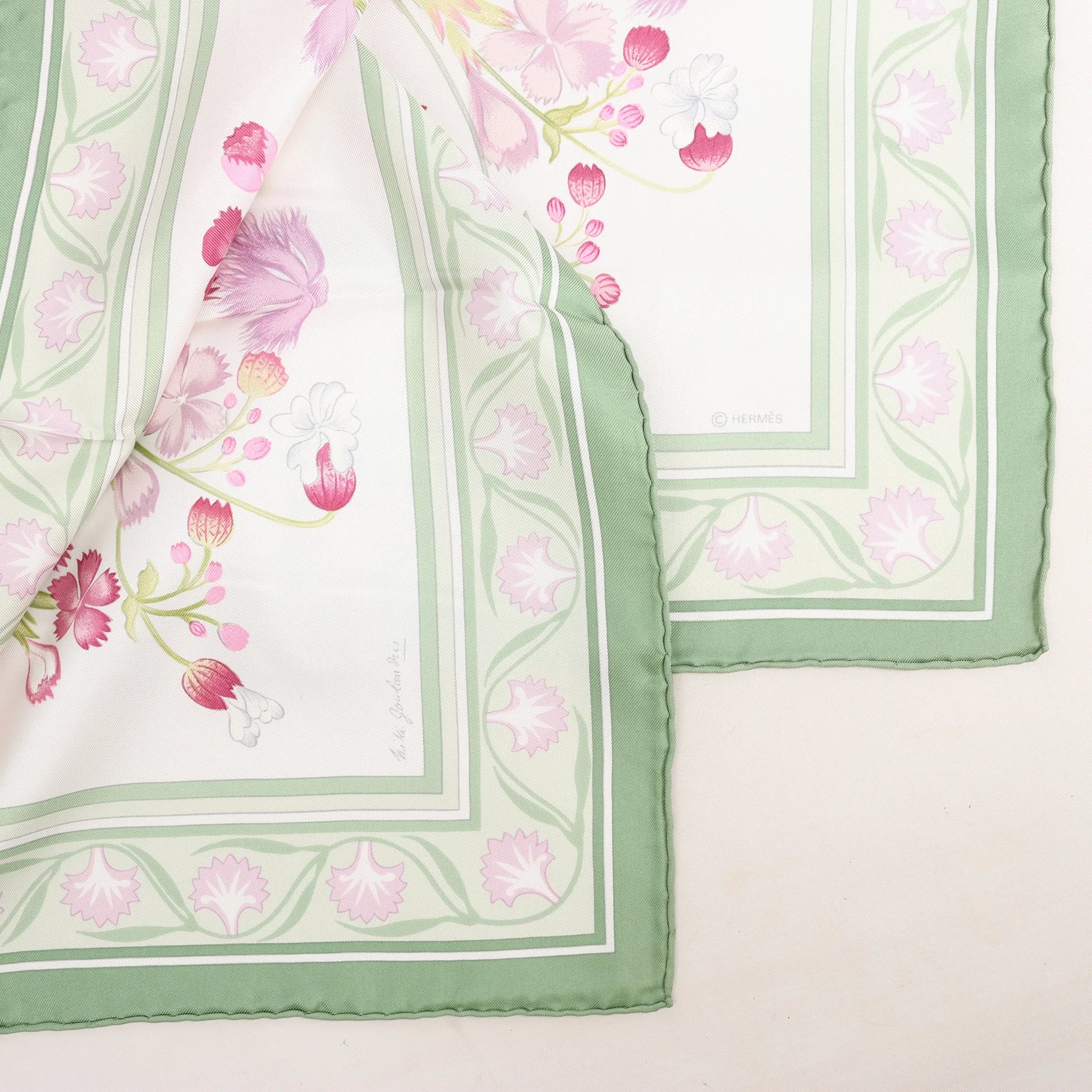Hermès Carré 90 "OEillets sauvages et autres Caryophyllees" Silk handkerchief in Green