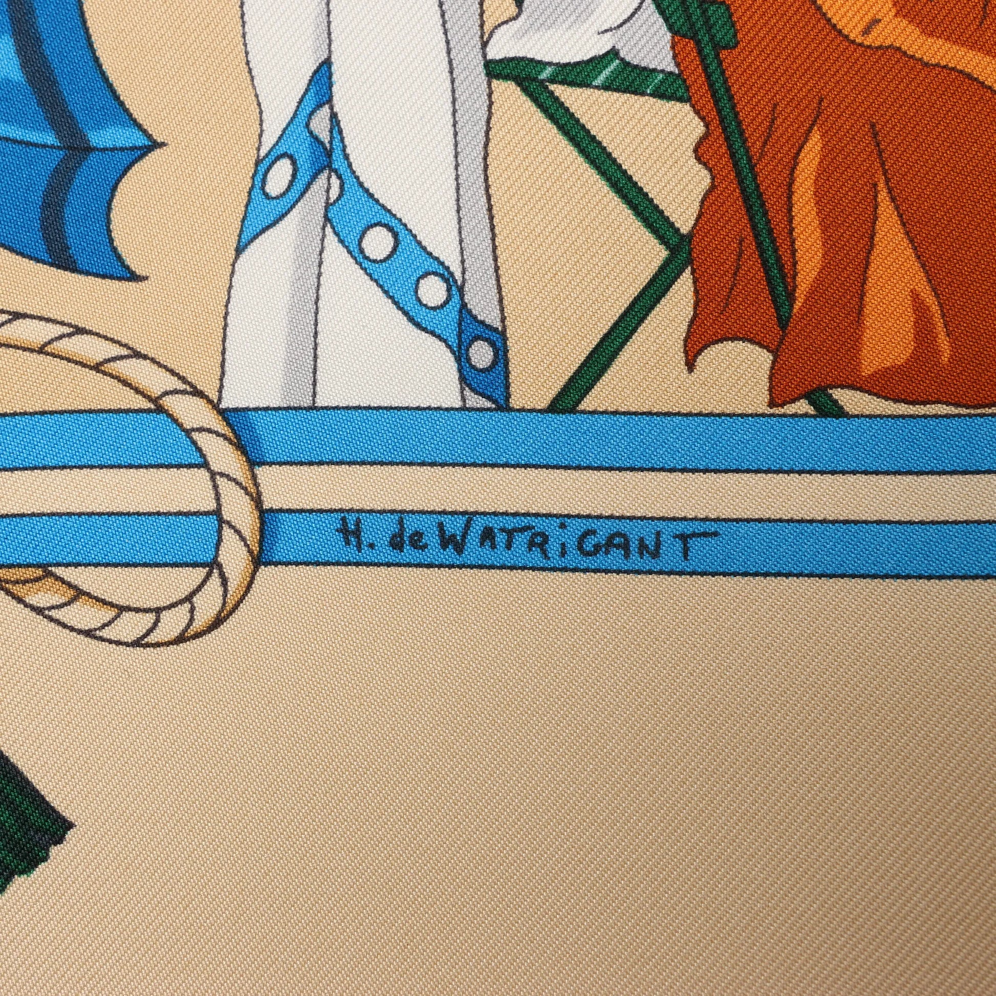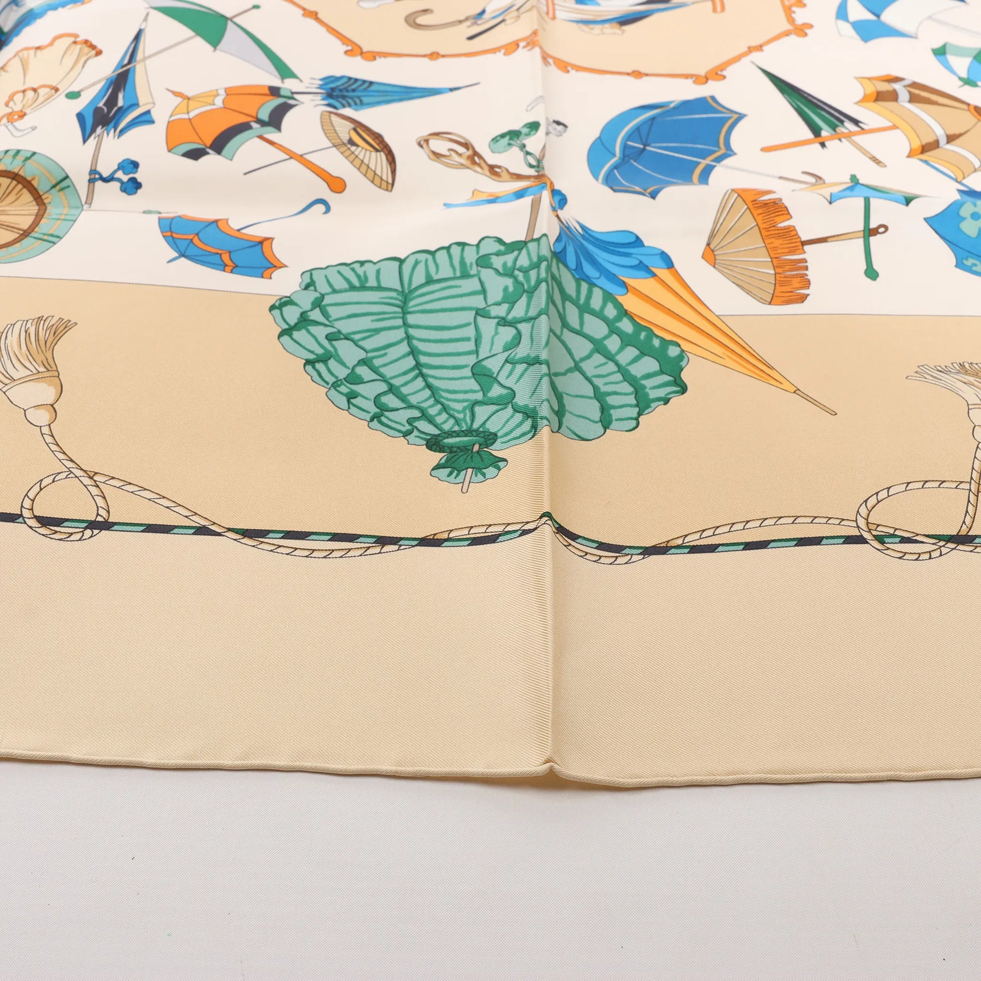 Hermès Carré 90 "OMBRELLES ET PARAPLUIES" Silk handkerchief in Beige