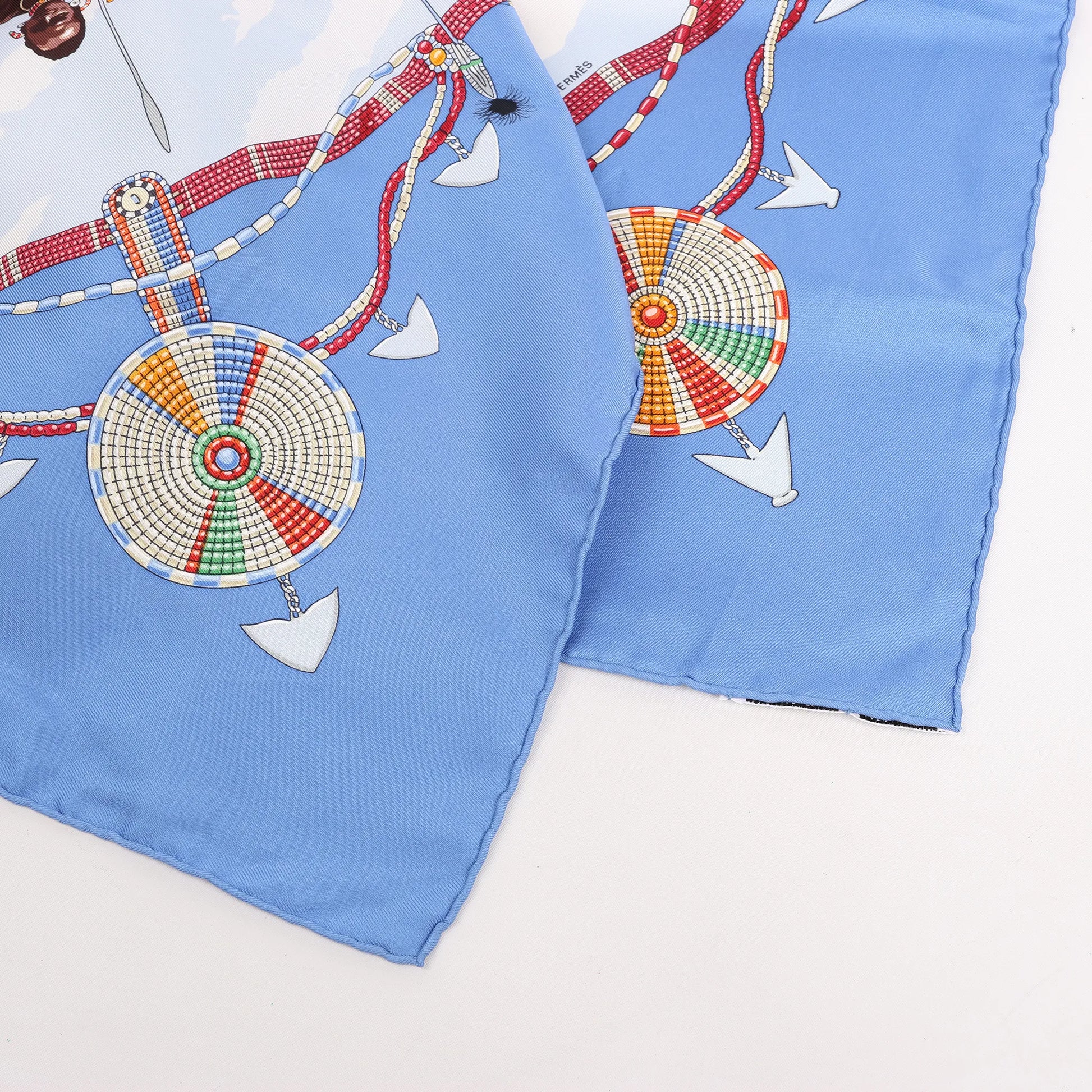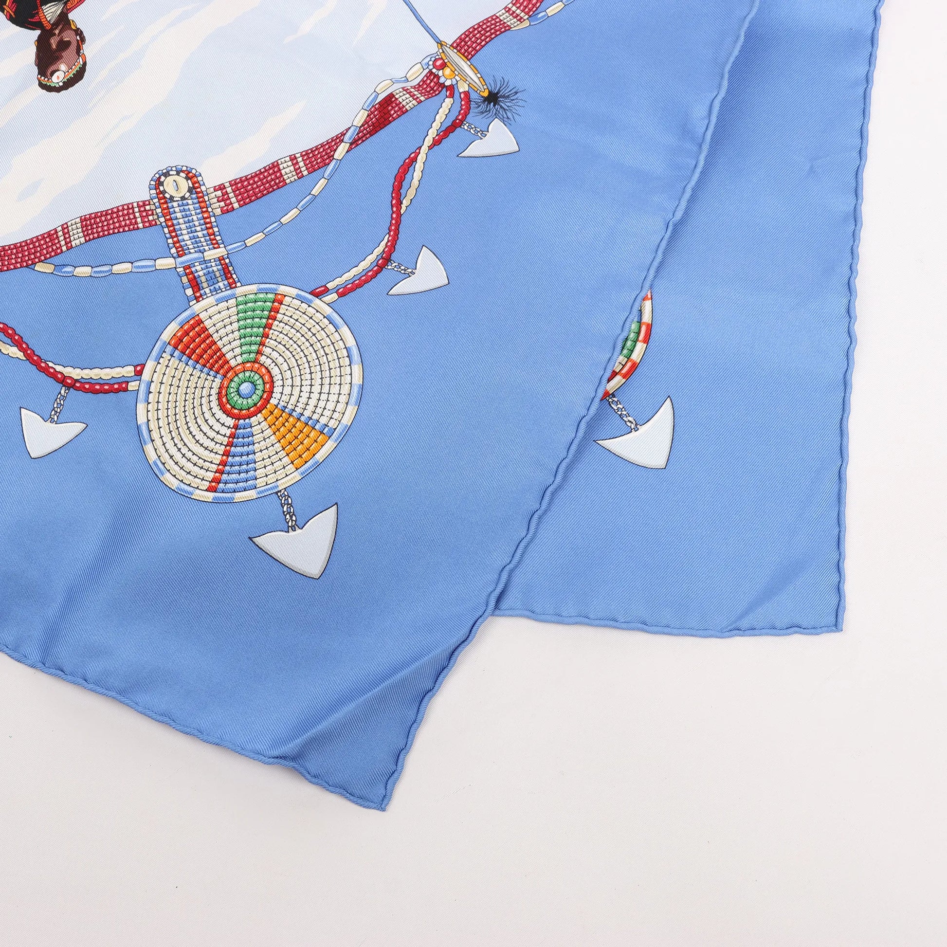 Hermès Carré 90 "PERLES DU KENYA" Silk handkerchief in Blue