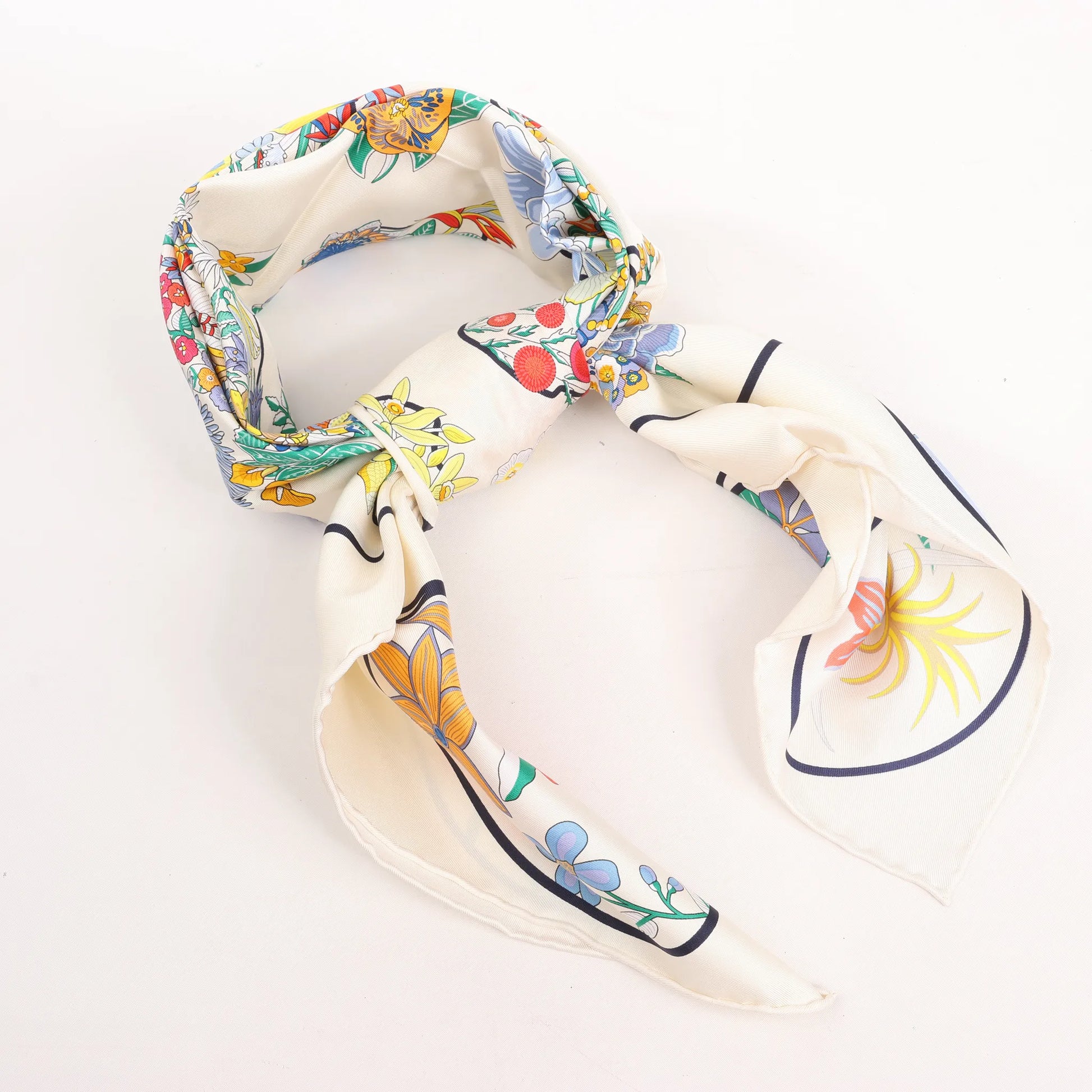 Hermès Carré 90 "PLANIFLEURS" Silk handkerchief in Ecru