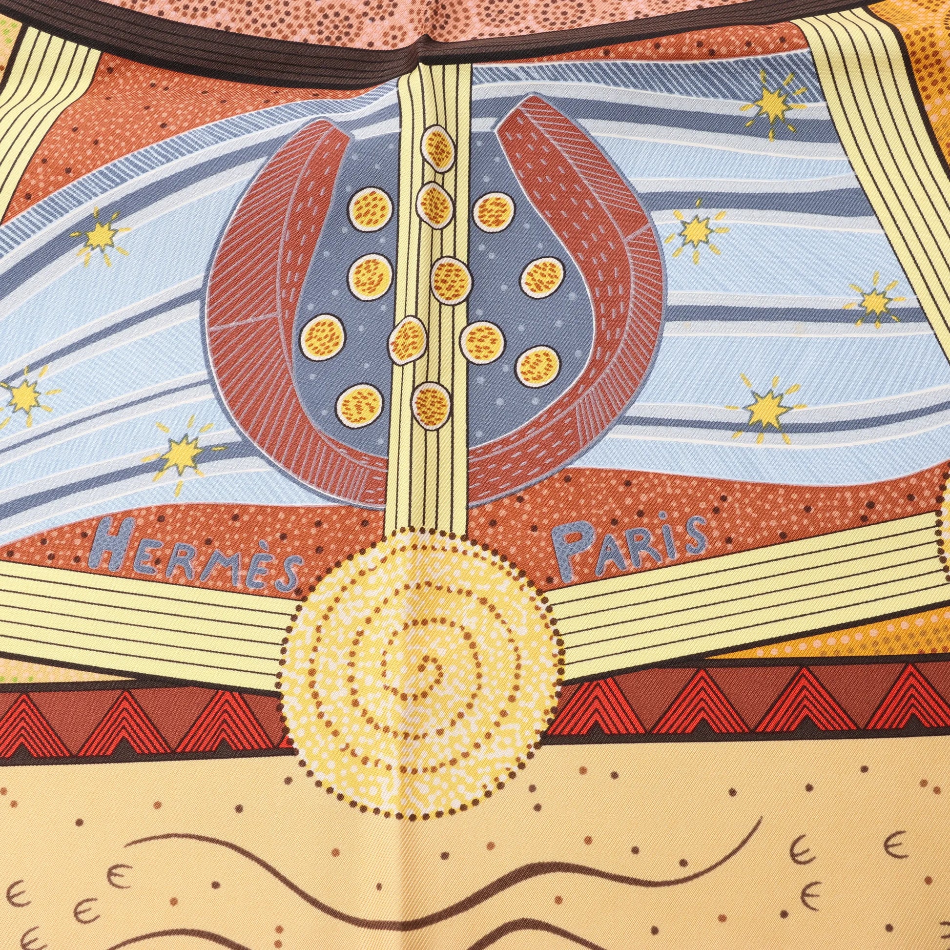 Hermès Carré 90 "REVE D’AUSTRALIE" Silk handkerchief in Beige