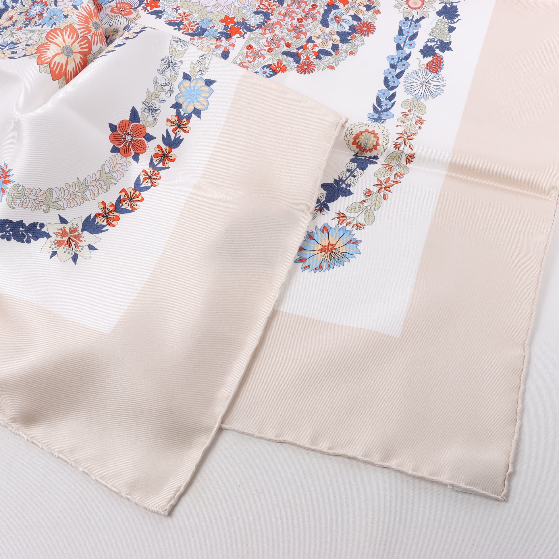 Hermès Carré 90 "RIDES DE GALA EN FLEURS" 100% Silk Scarf in Beige