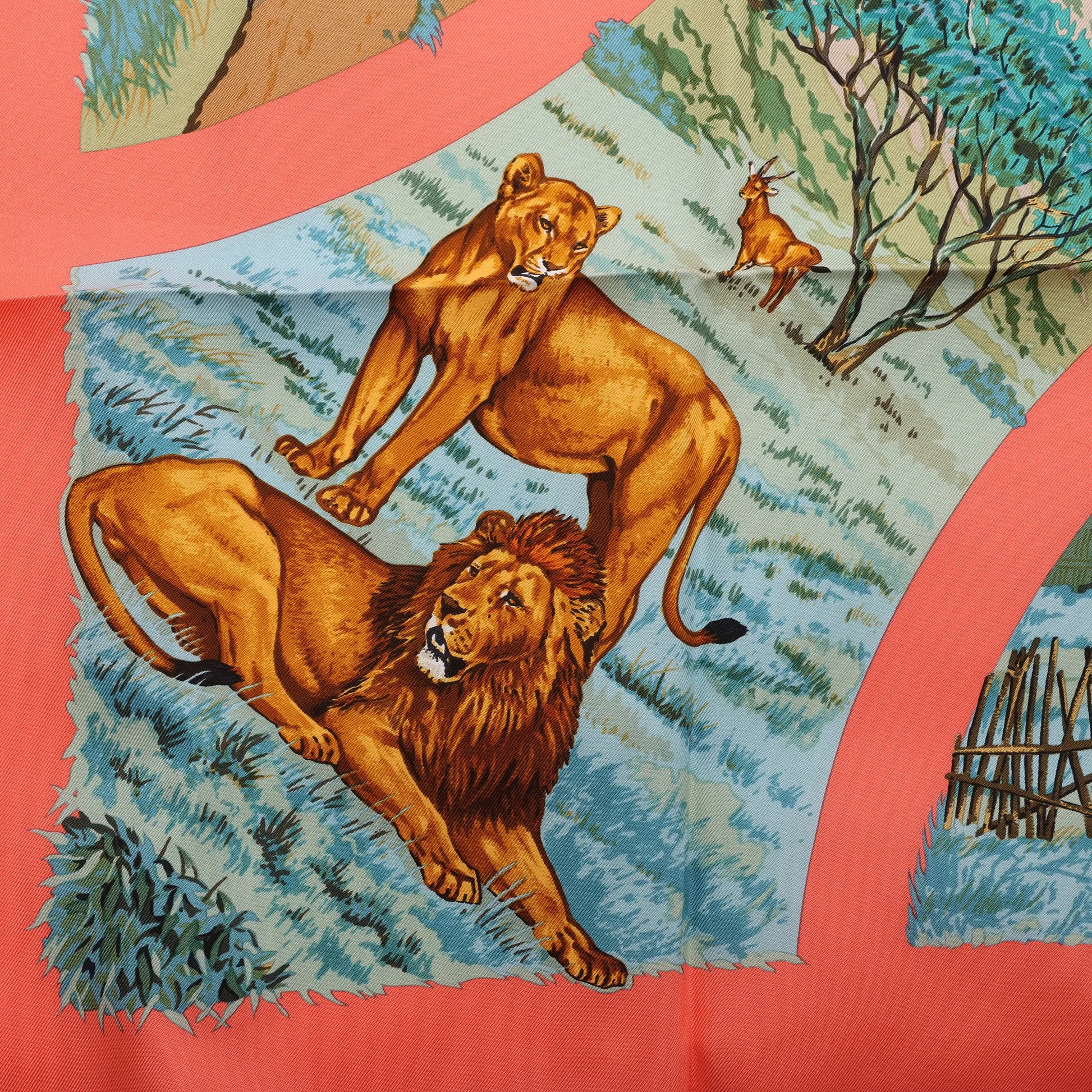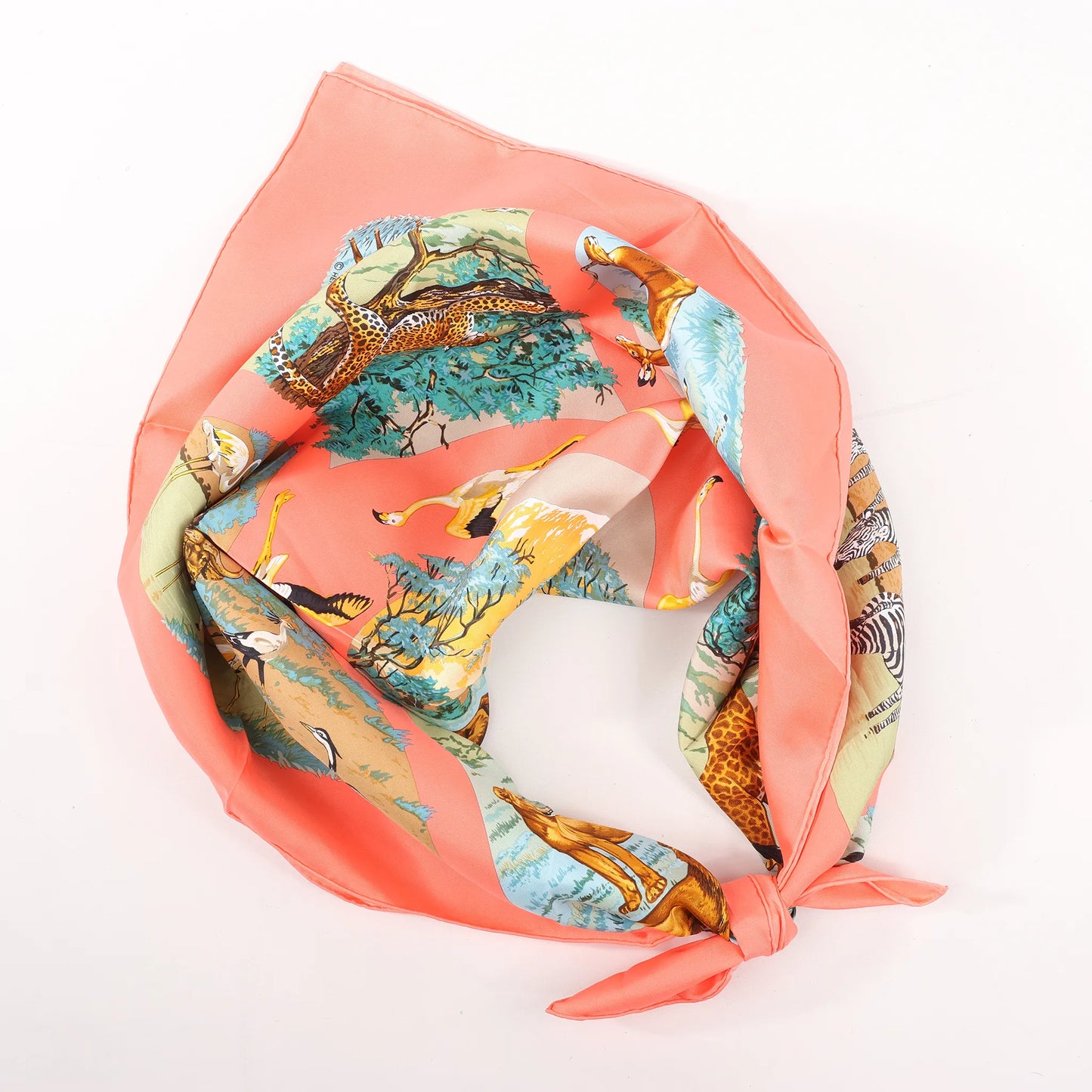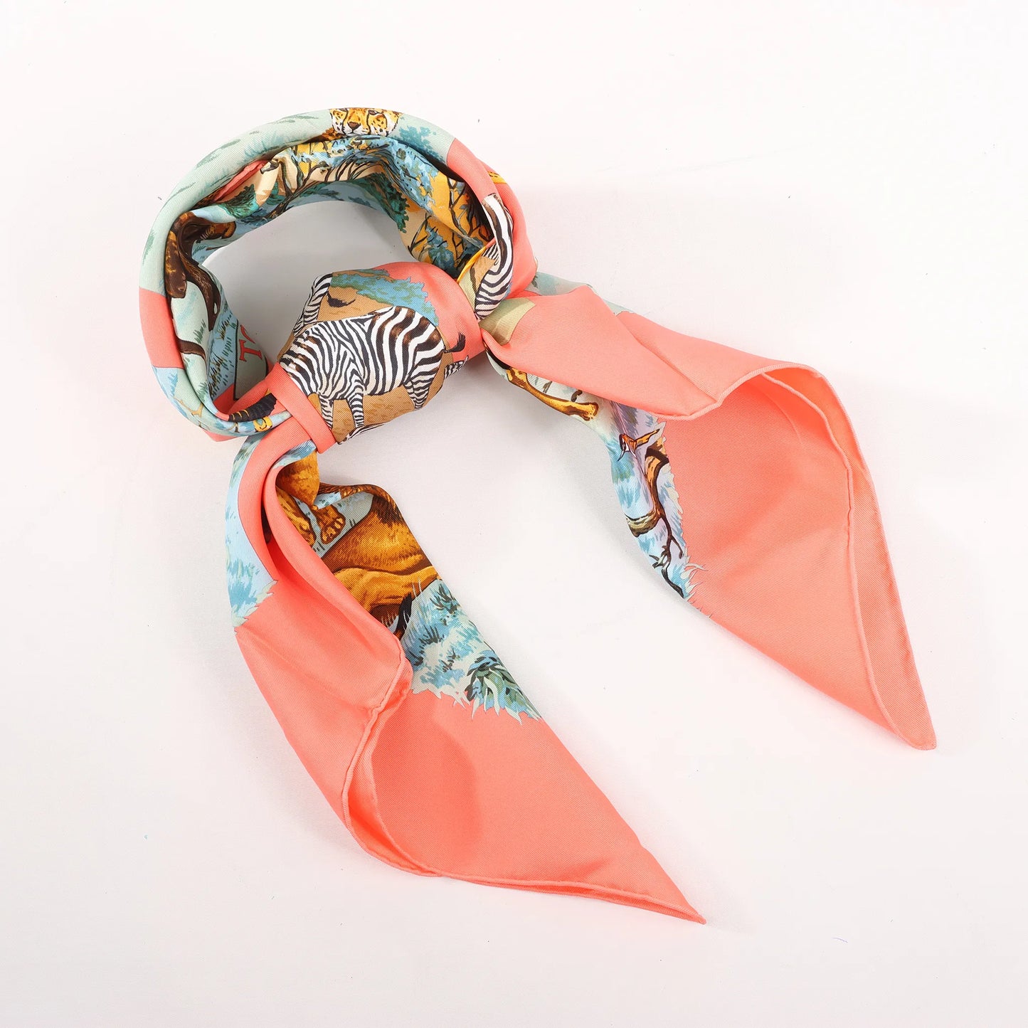 Add a touch of adventure to your wardrobe with the Hermès Carré 90 "Tanzanie" Silk Handkerchief in Pink. Made from 100% silk, this vibrant scarf showcases a rich safari-themed design inspired by Tanzanian wildlife and culture—ideal for collectors and style lovers.