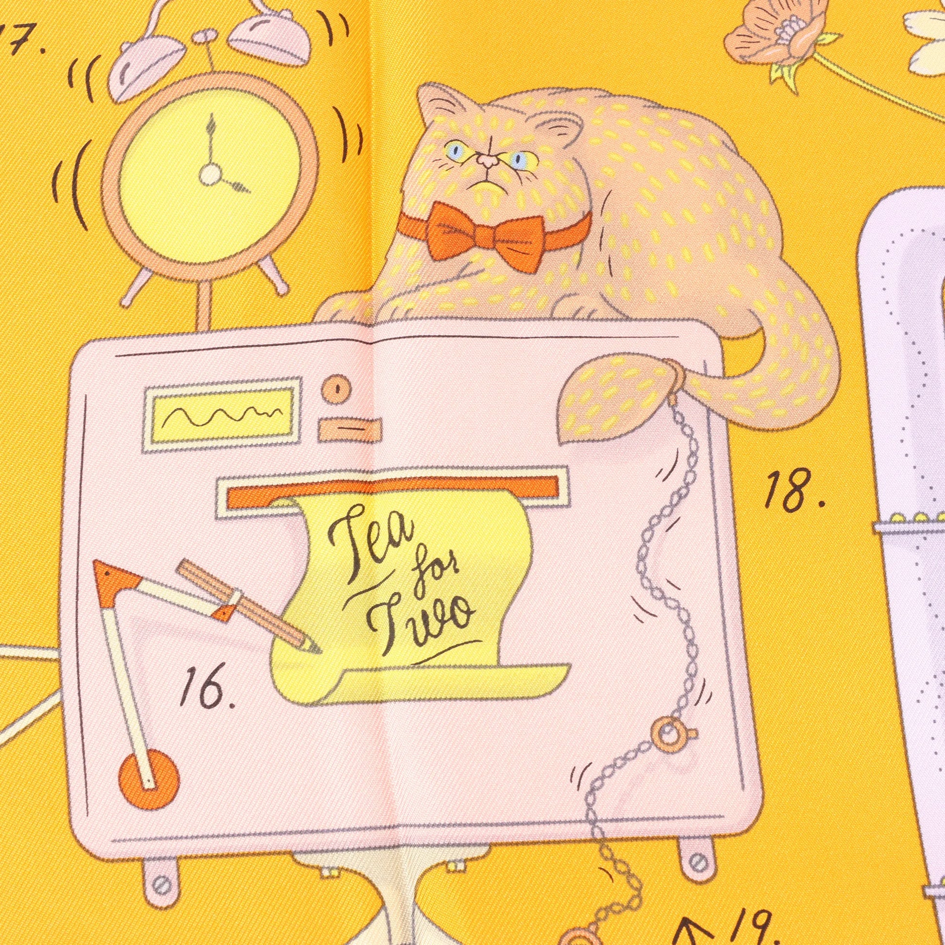 Hermès Carré 90 "Tea for Two" Silk handkerchief in Orange
