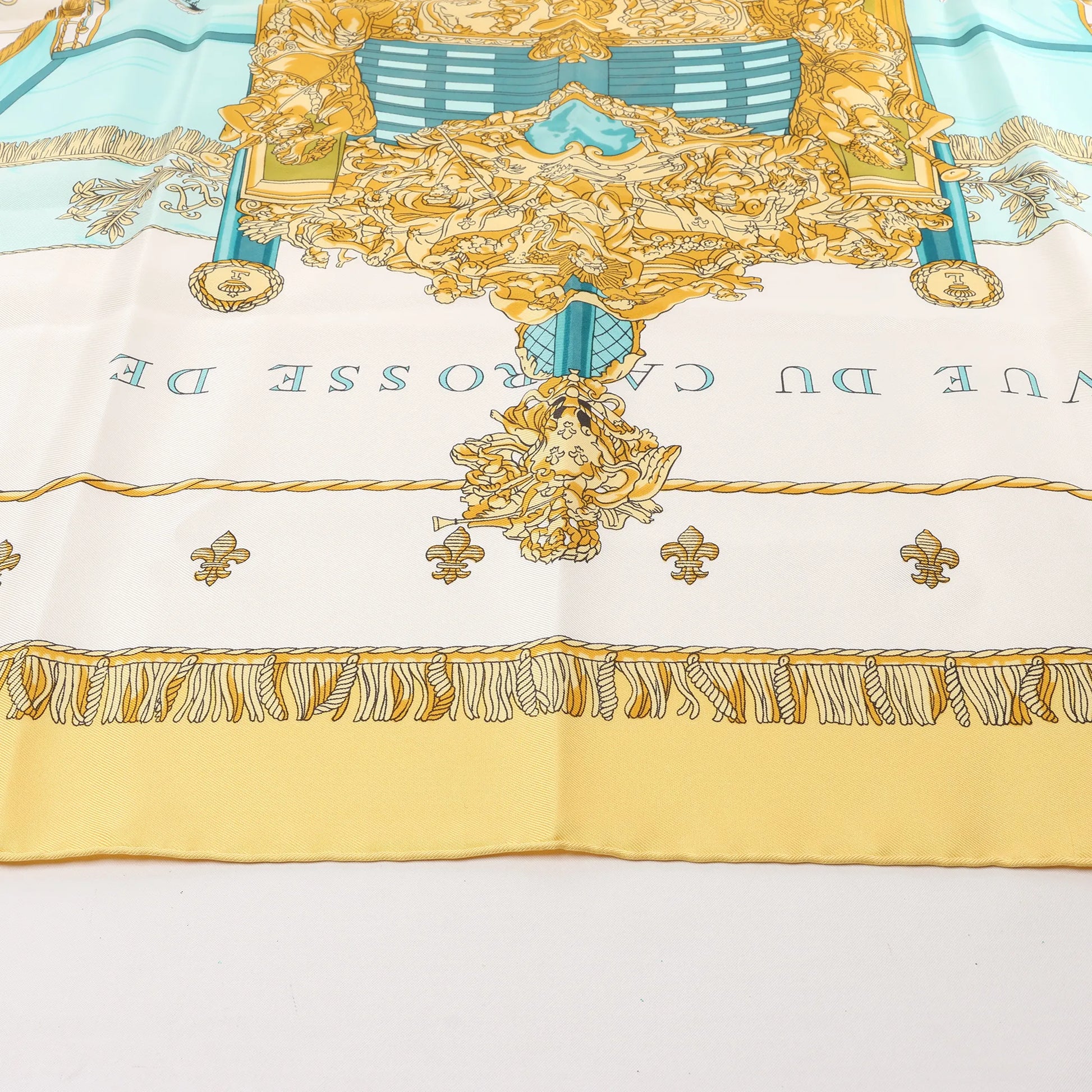 Hermès Carré 90 "VUE DU CARROSSE DE LA GALERE LA REALE" Silk handkerchief in Yellow