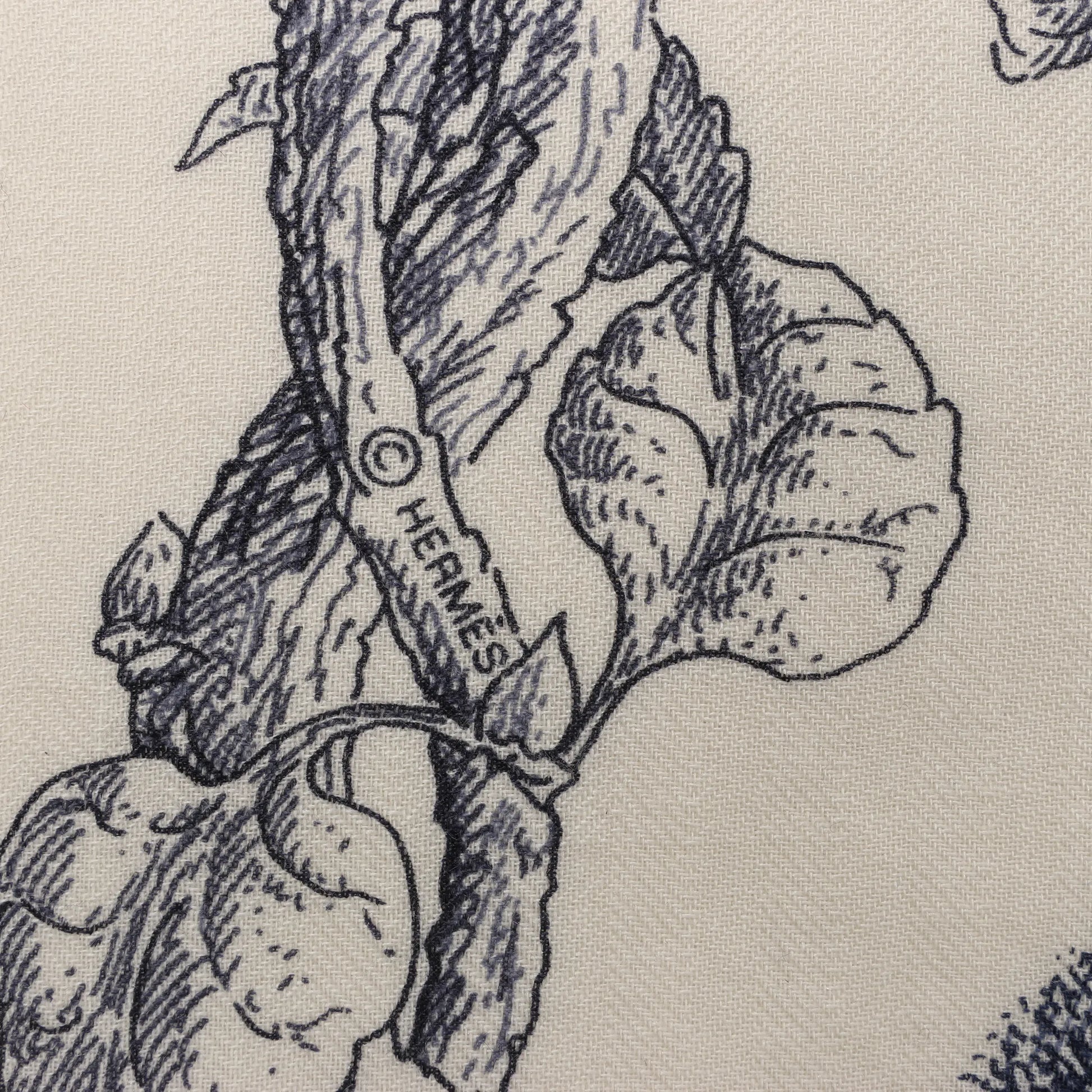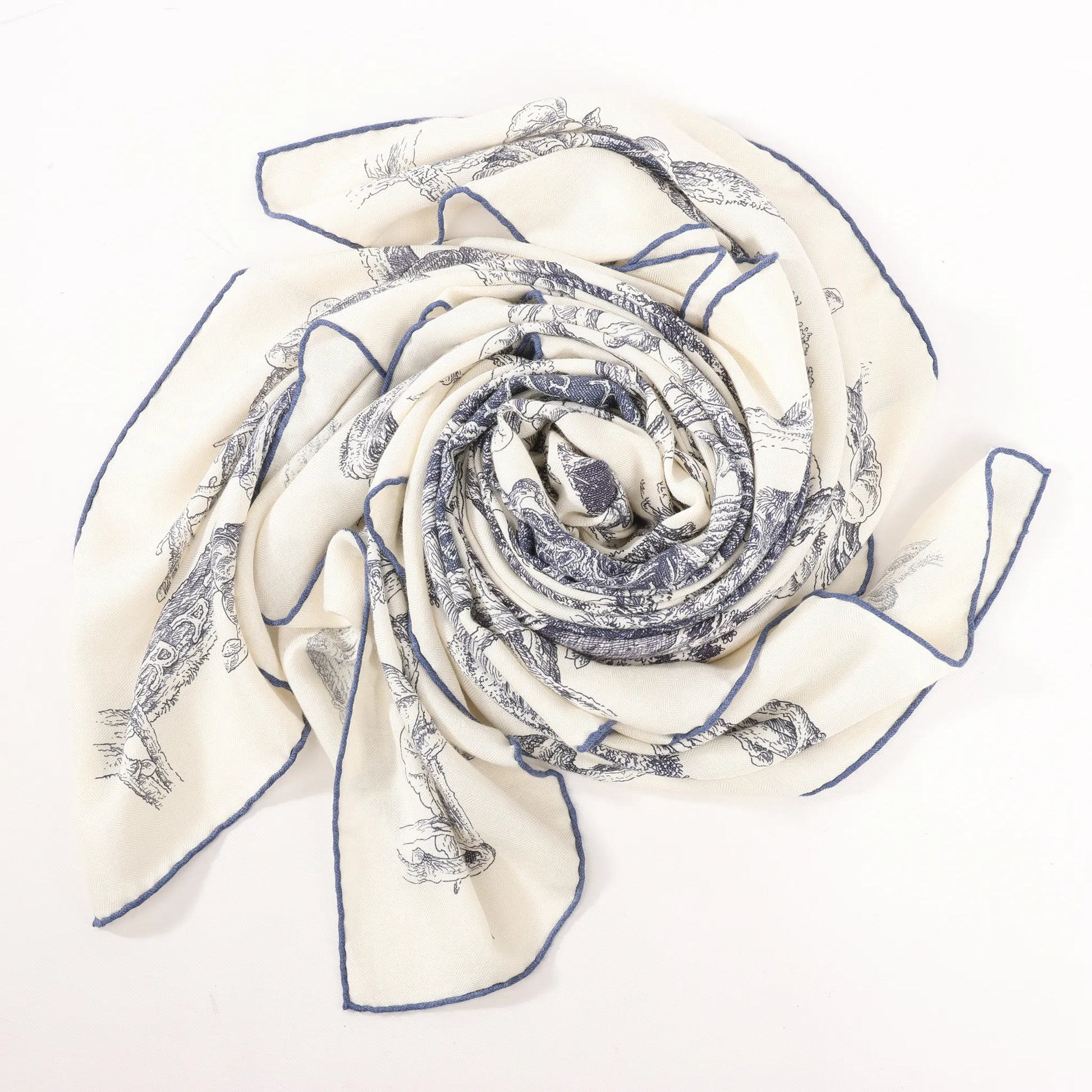 Hermès Carré Géant "LES CABANES" Cashmere & Silk Scarf in in Beige x Navy