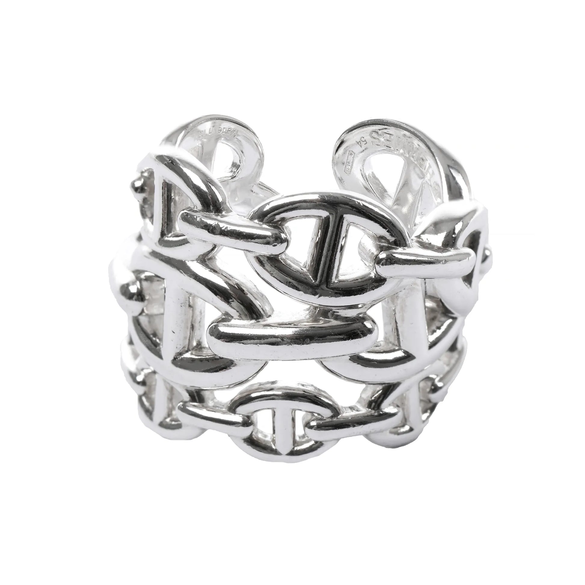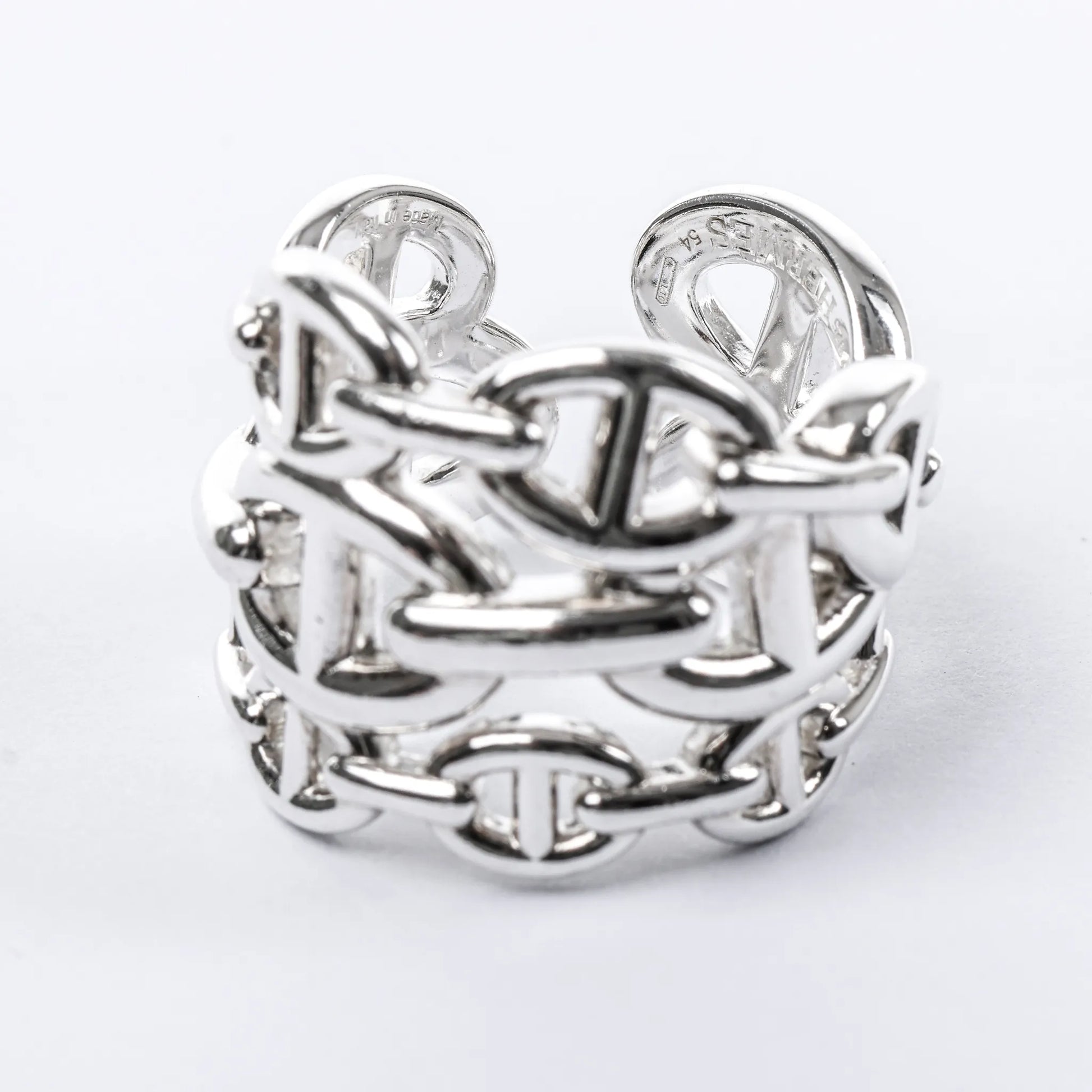 Hermes Chaîne d'Ancre Enchaînée Silver Ring, Size 54 EU