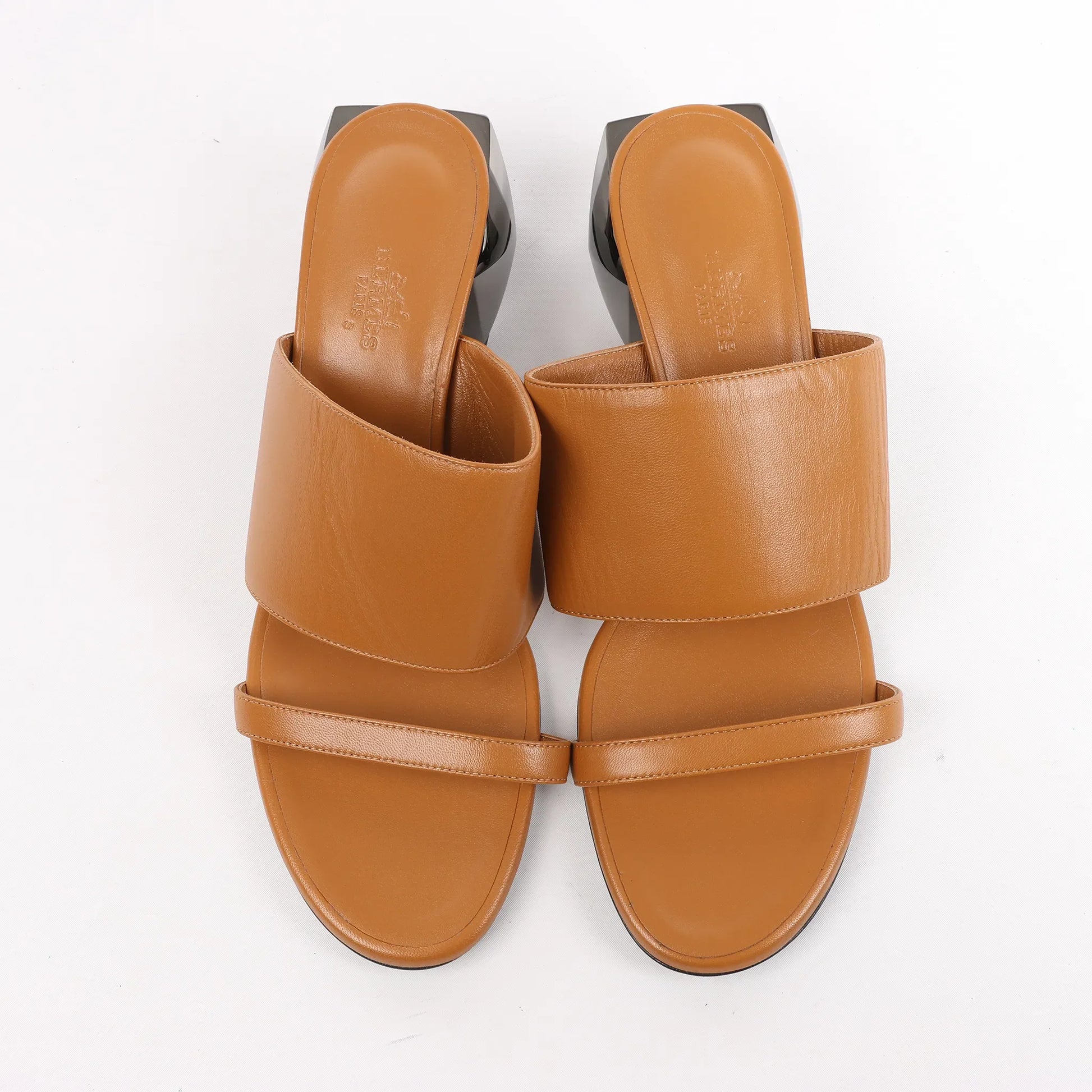HERMES Cornelia Leather Sandals in Brown, Size 39 EU