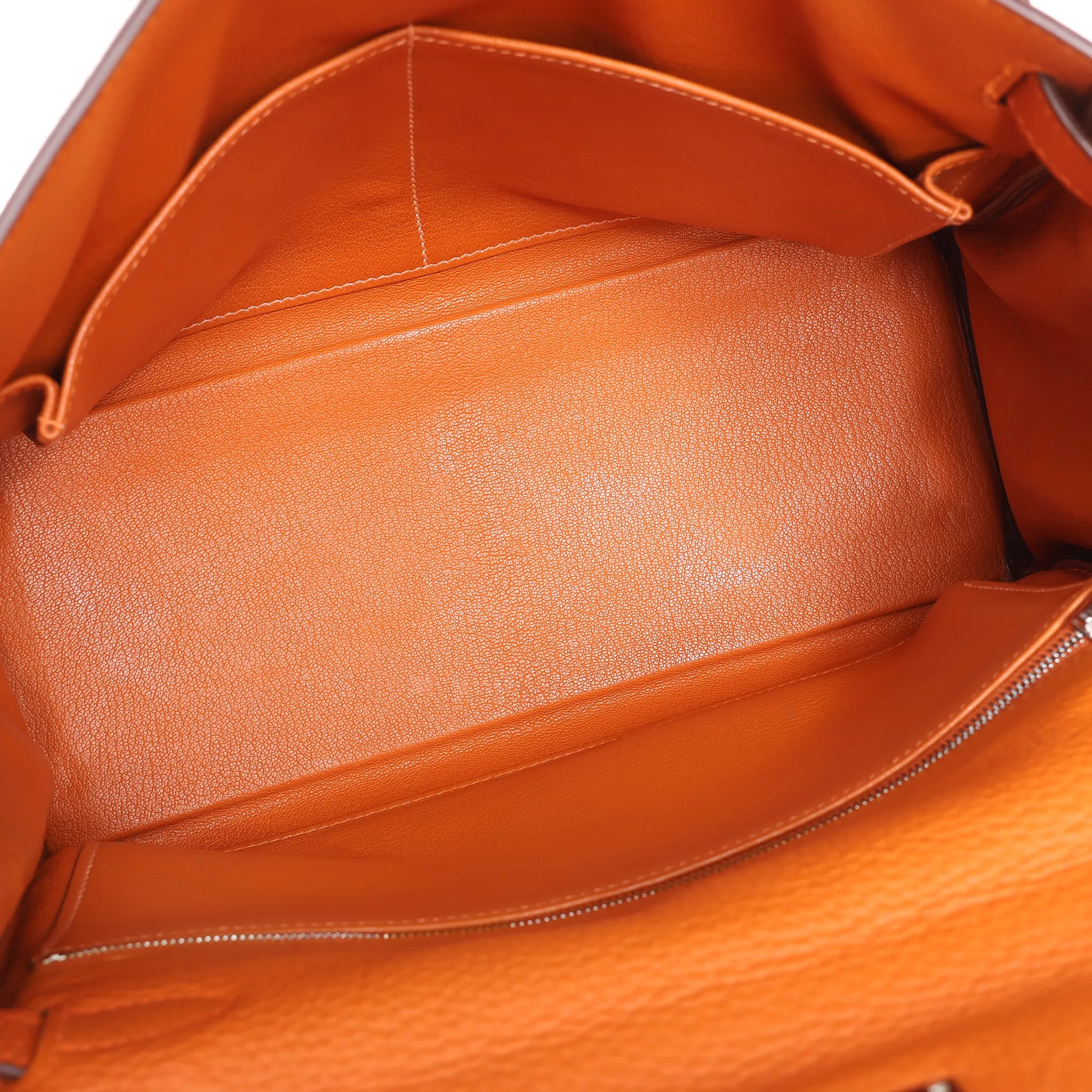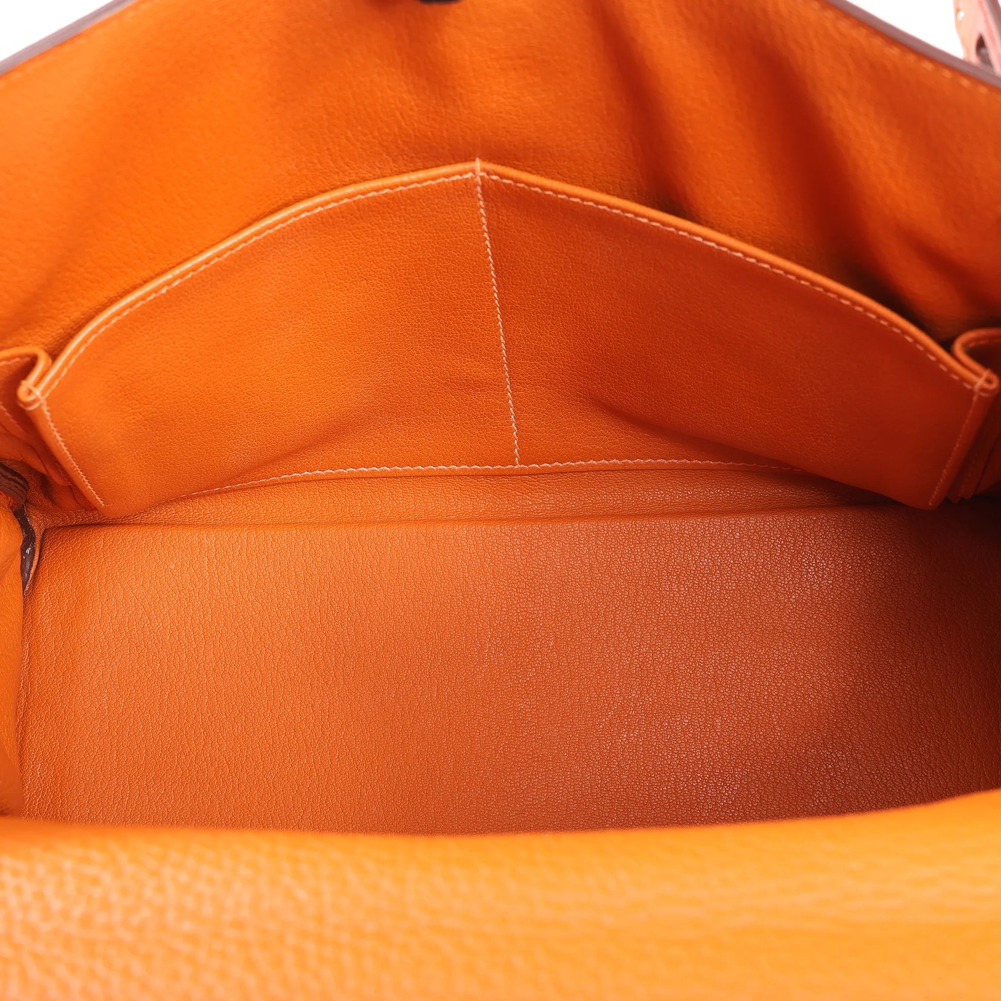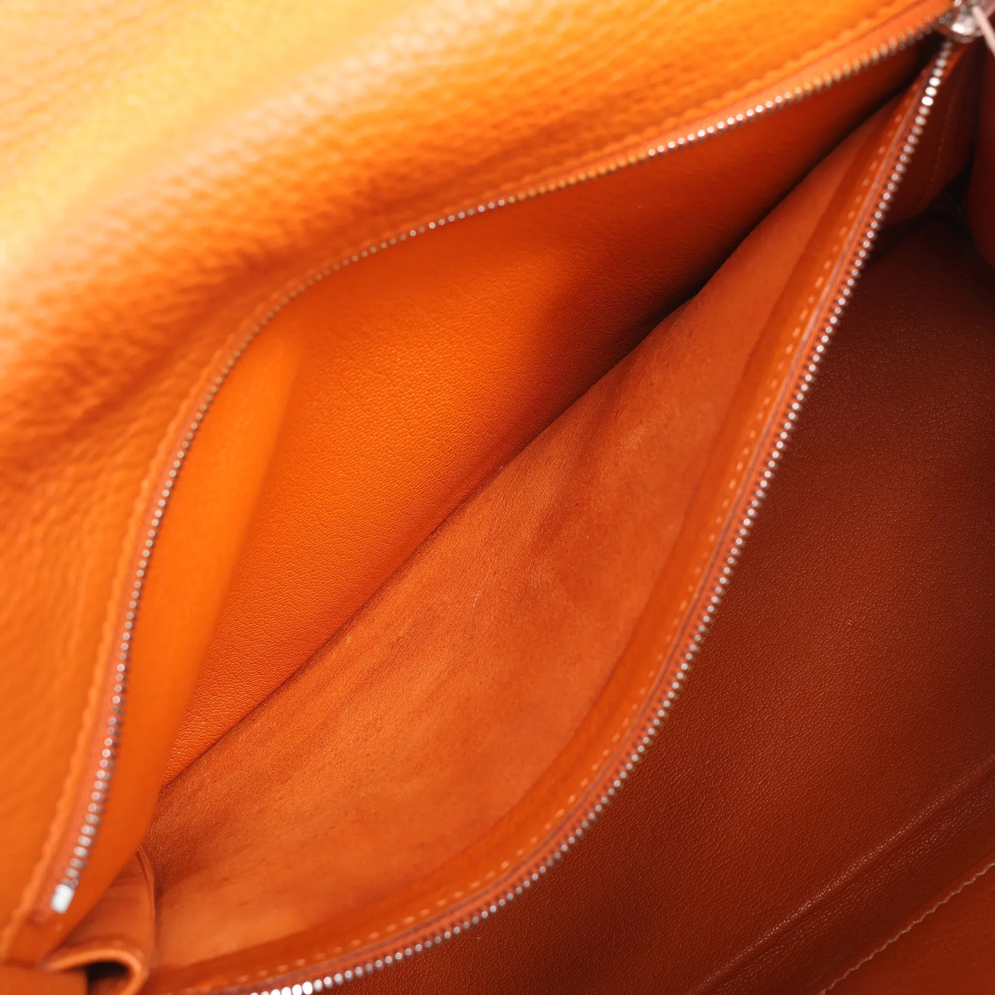 HERMÈS Kelly 28 Le Tournay Taurillon Clemence Handbag in Orange Silver Metal Fittings □H: 2004
