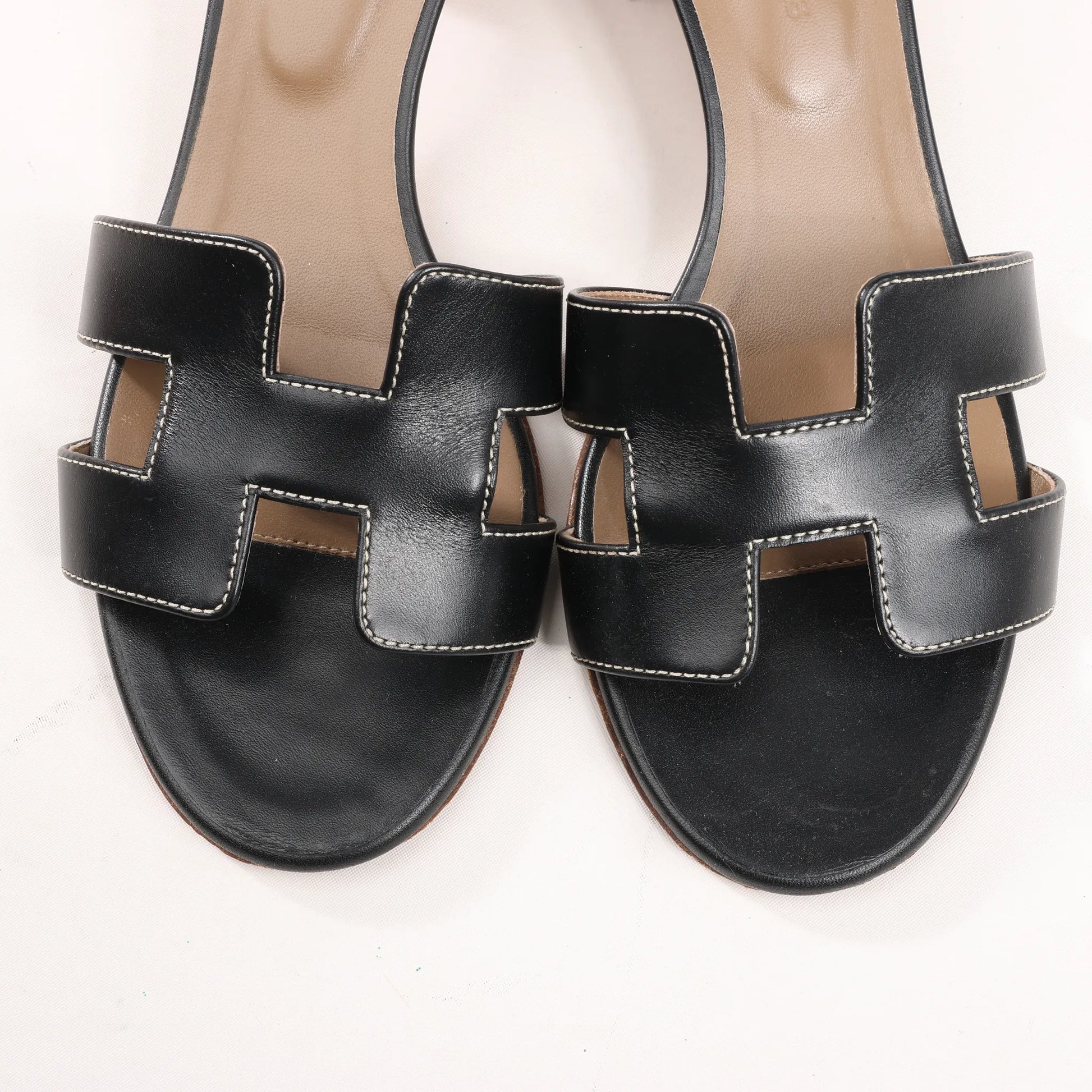 HERMES OASIS Leather Sandals in Black, Size 36.5 EU