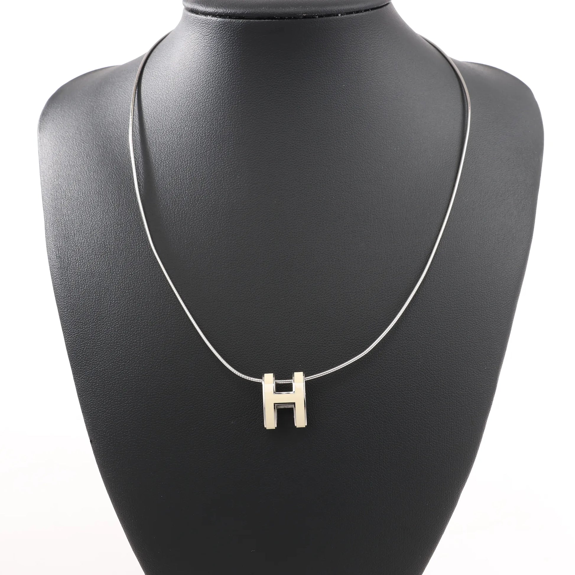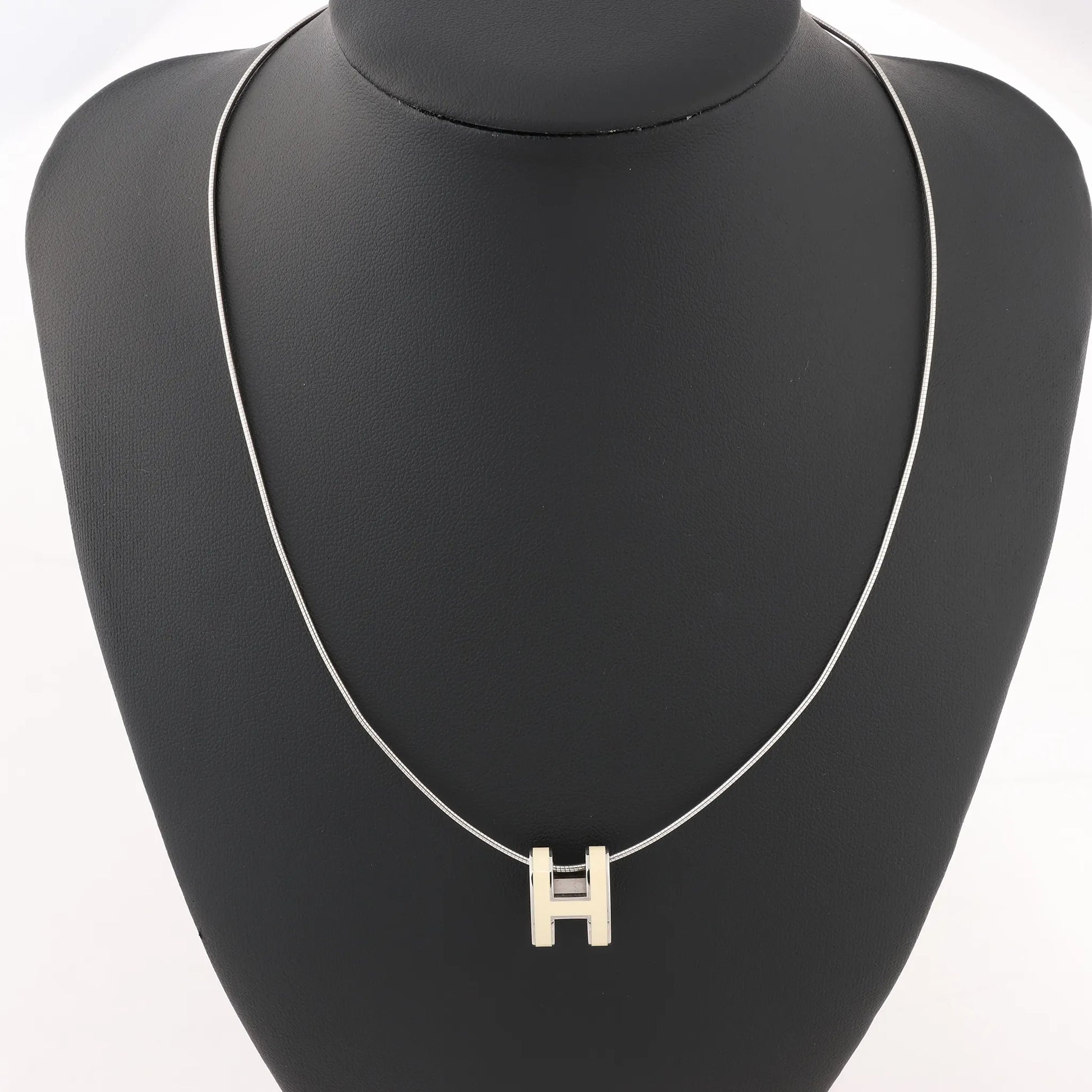 Hermes Pop H Necklace Metal × 925 in Ecru x Silver
