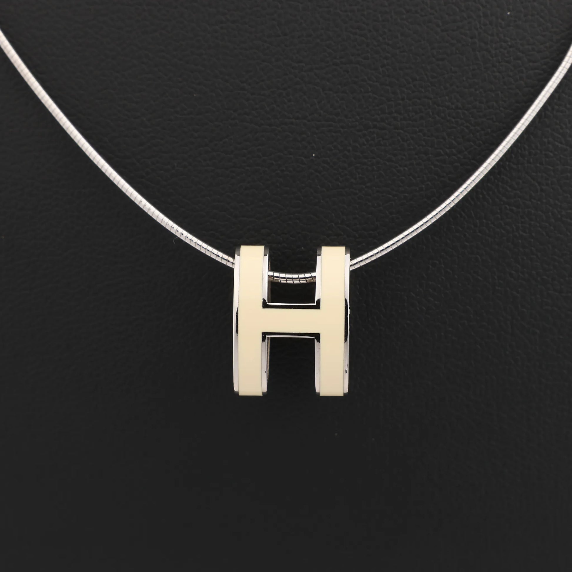 Elevate your jewelry game with the Hermès Pop H Necklace in ecru enamel and sterling silver. Featuring the iconic “H” pendant, this chic piece blends timeless elegance with a modern touch, perfect for everyday sophistication.