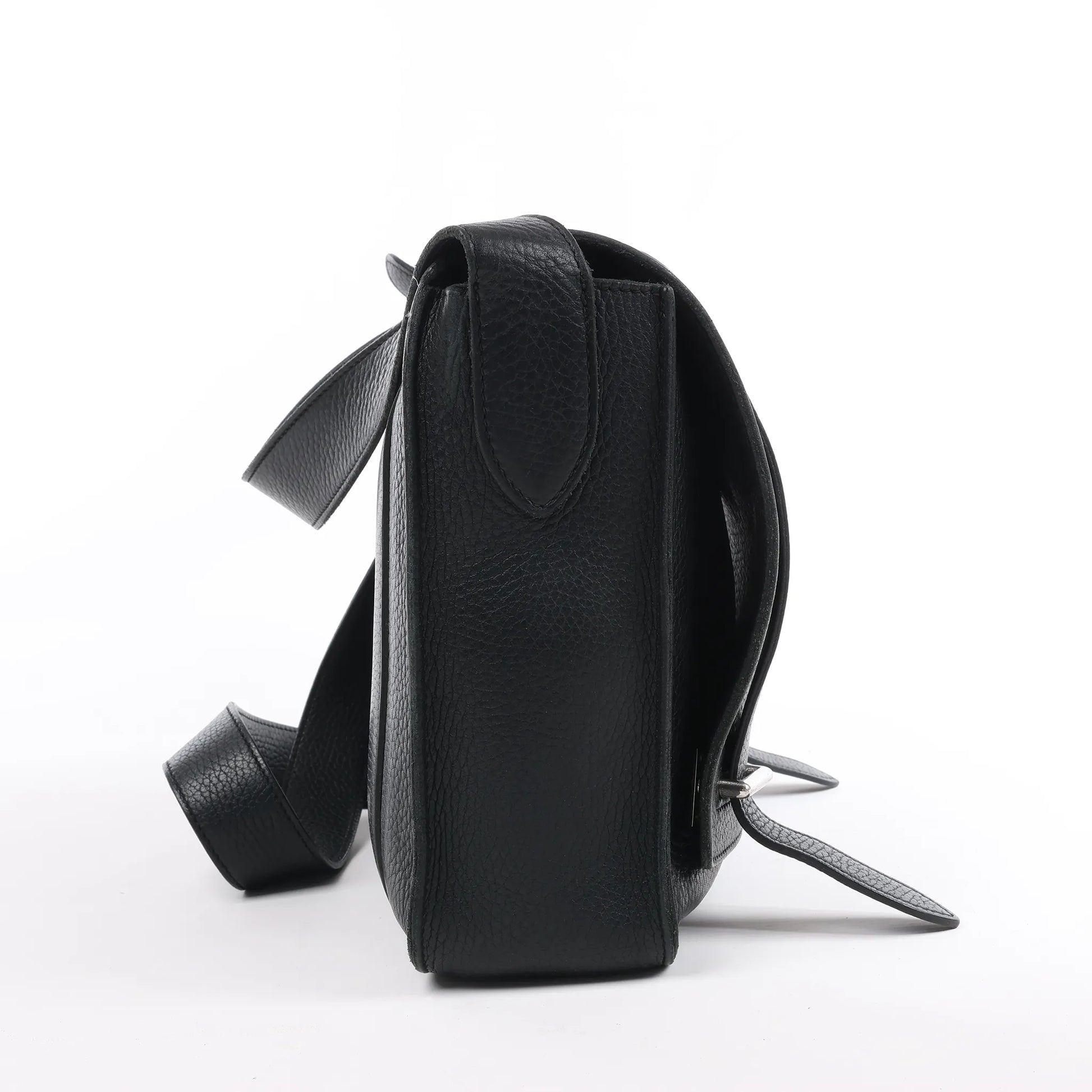 The Hermès Steve Caporal 27 Crossbody Bag in Black Taurillon Clemence leather (2016) exudes timeless elegance with its supple grained leather, adjustable strap, and silver-tone hardware. A refined yet functional luxury bag for everyday wear.