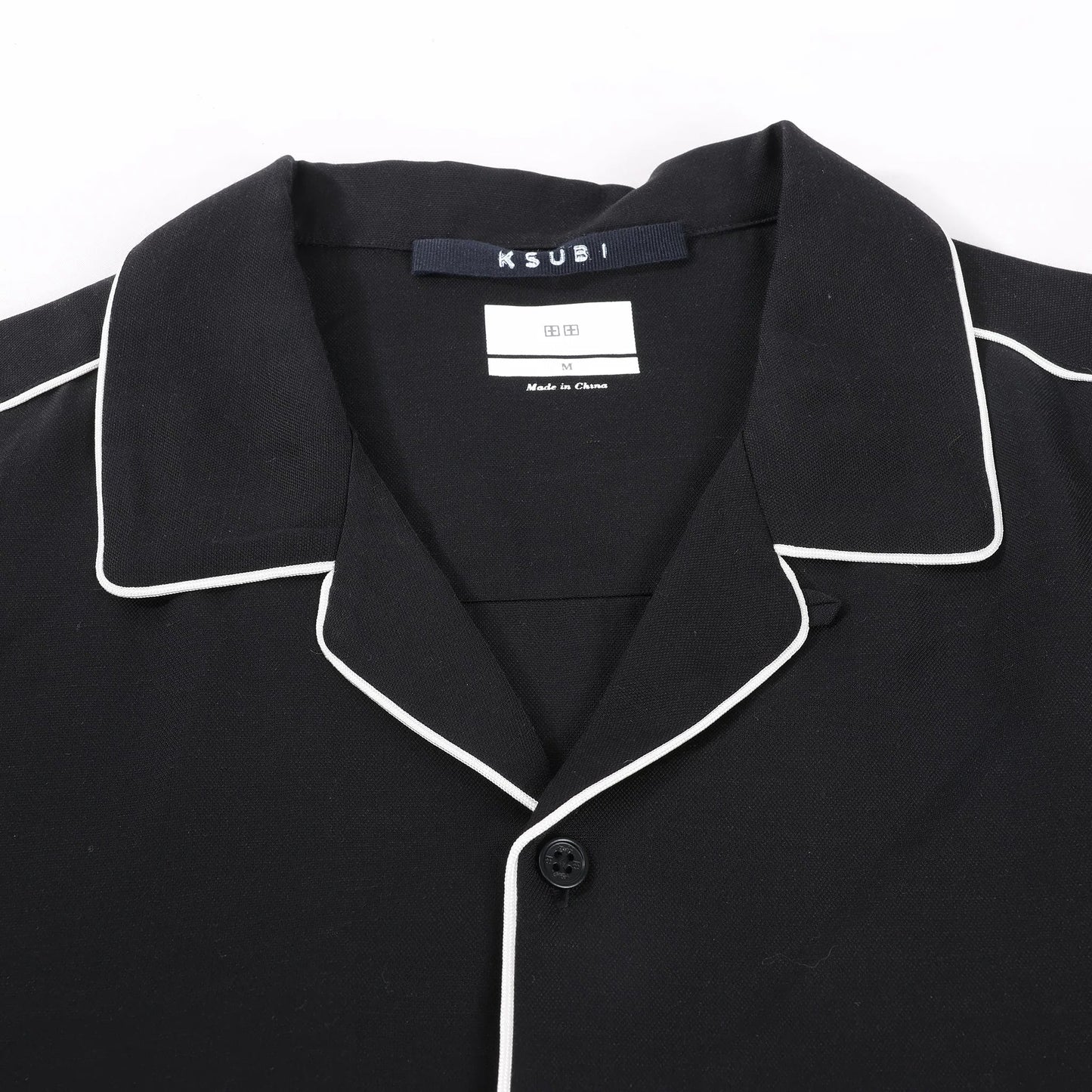 The KSUBI Downtown Resort Shirt in Black, Size M, delivers laid-back cool with a refined edge. Made from premium lightweight fabric, this short-sleeve shirt features contrast white piping and the signature Ksubi logo—perfect for effortless street style.