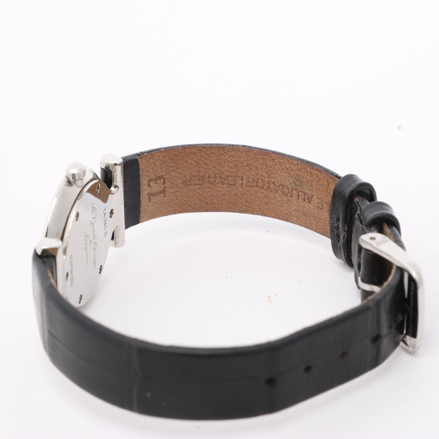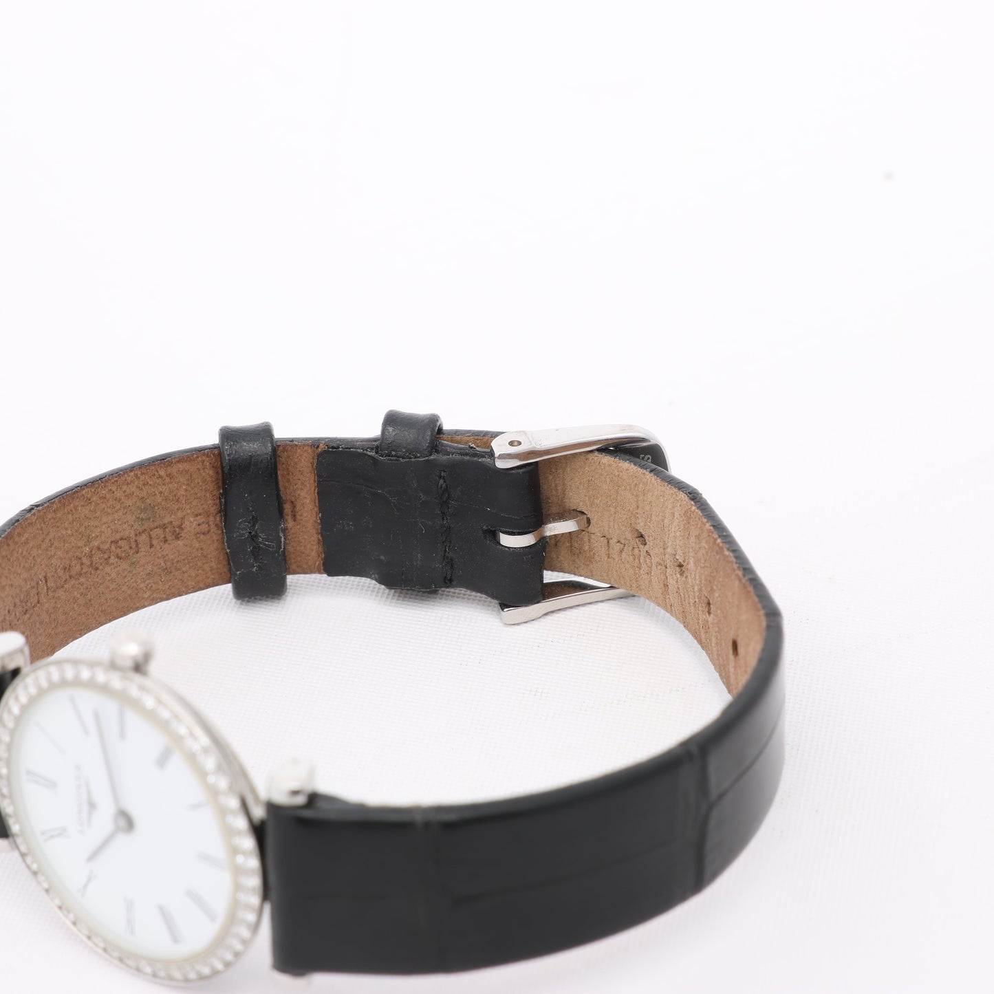 Timeless elegance defines this Longines Grand Classic L4.241.0. Featuring a white dial with Roman numerals, diamond bezel, and sleek black leather strap, this quartz timepiece is a refined expression of sophistication and grace.