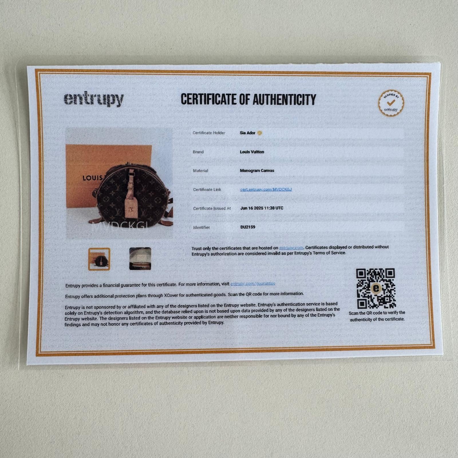 Comes With: Padlock with keys, box, dustbag, Entrupy certificate, papers
