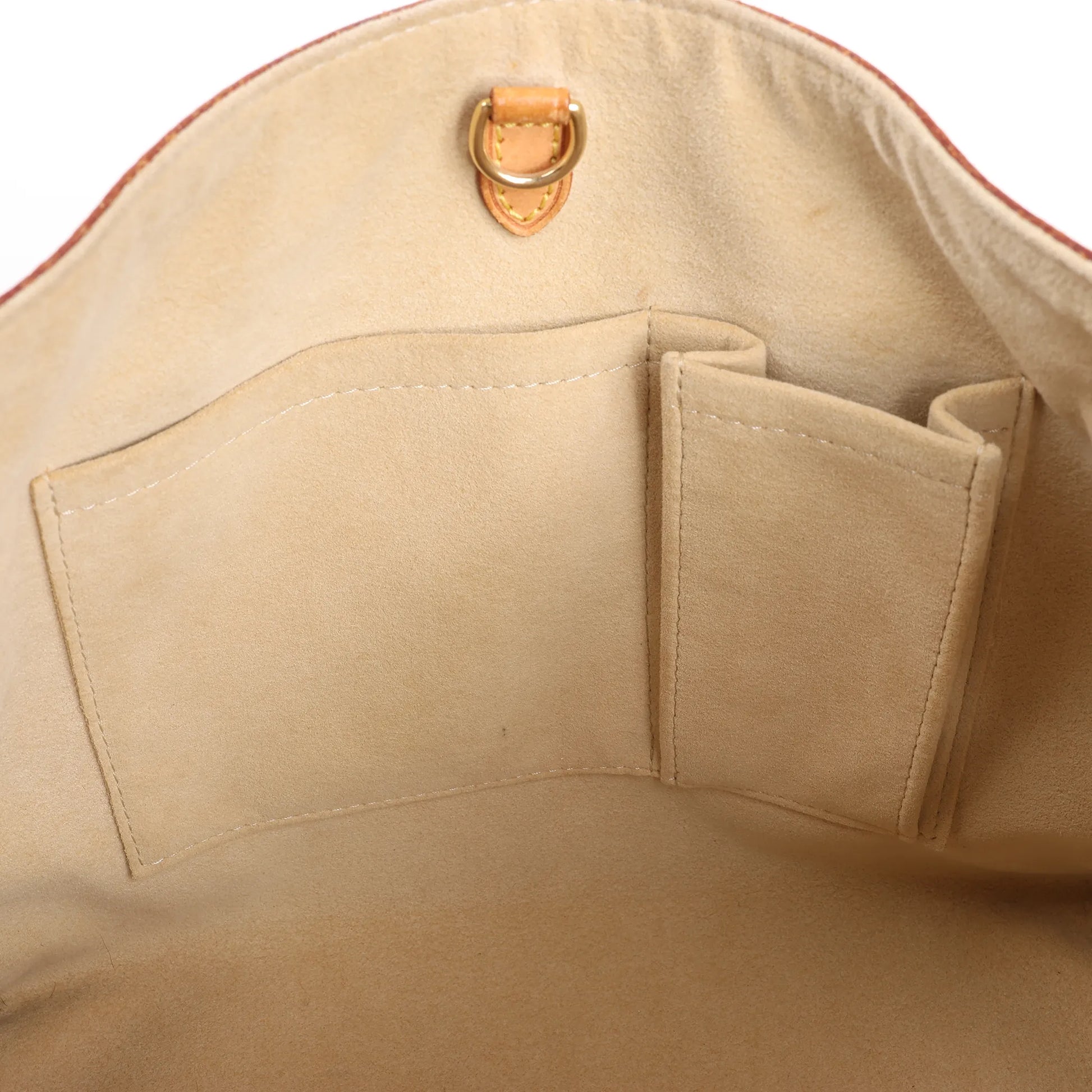The Louis Vuitton Hampstead PM Handbag N51207 in Damier Azur canvas is a chic blend of elegance and function. Featuring natural cowhide leather trim, gold-tone hardware, and a roomy interior, this timeless tote is perfect for everyday sophistication.