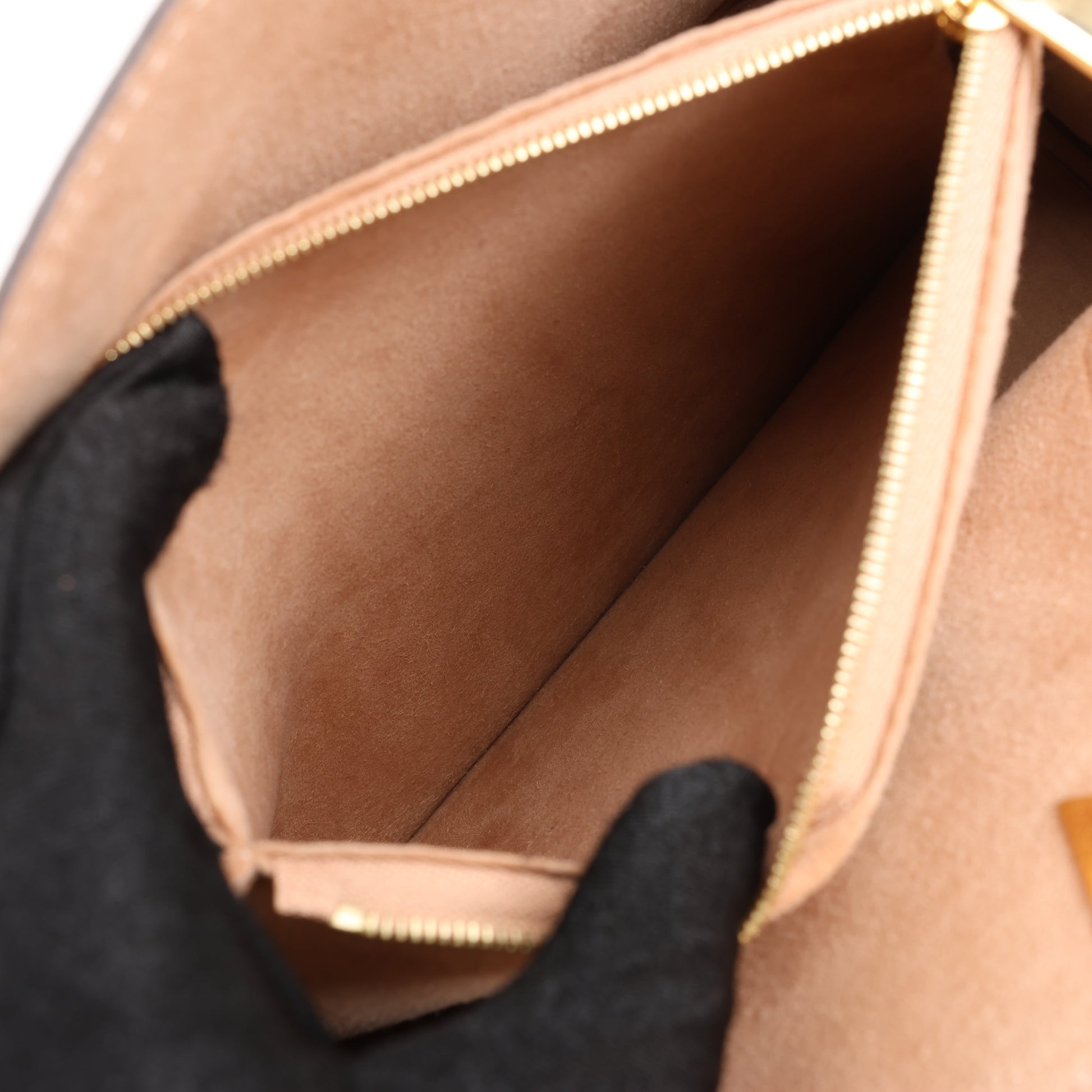 Condition Details: The exterior coated canvas is in excellent condition except minor white stains as seen in the pictures. The leather handles and strap are in great condition. The hardware is shiny and crisp with hairline scratches. The interior is in good condition, but has light usage rubbings. Date code: DU1197
