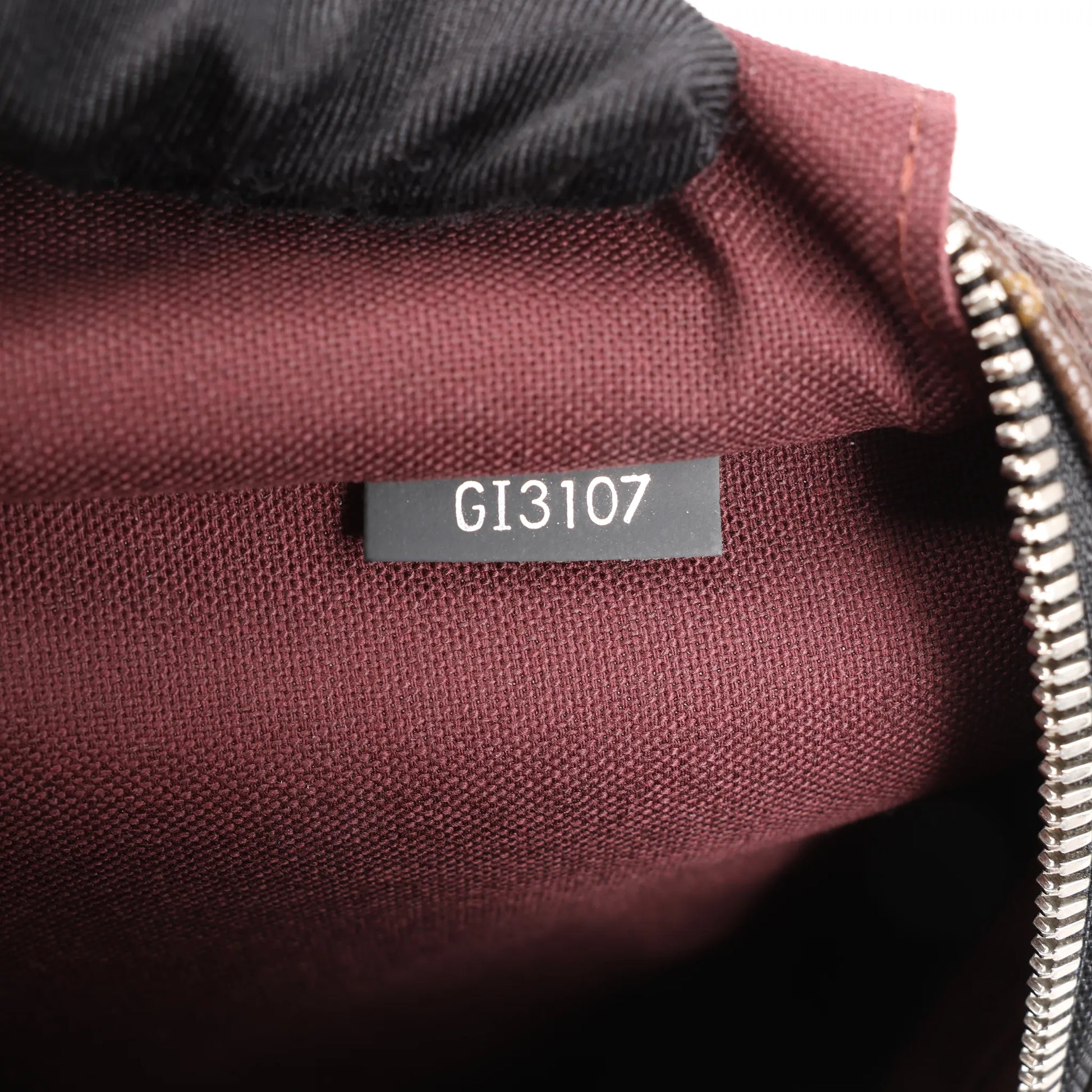 Condition Details: Outer damier is clean and beautiful in great shape. Leather trim and handles show minor signs of wear as scratches. Note: Shoulder strap is missing. The hardware has minor hairline scratches, but is bright and crisp. The interior is in very good condition, but has dust and some stains. Date code: GI3107, there was an RFID response.