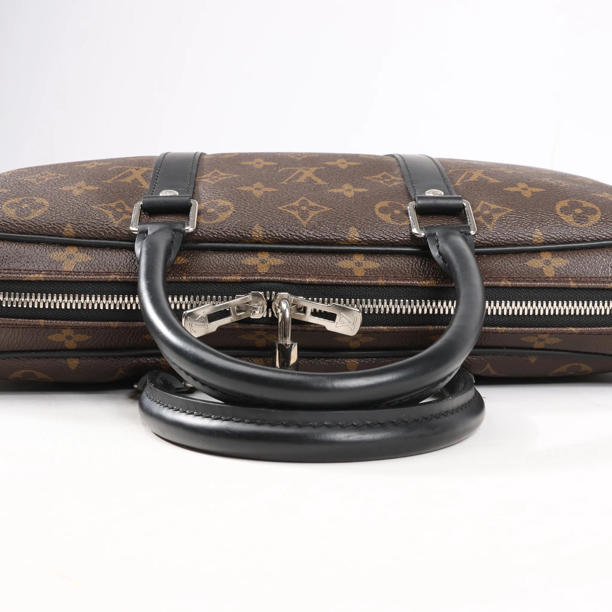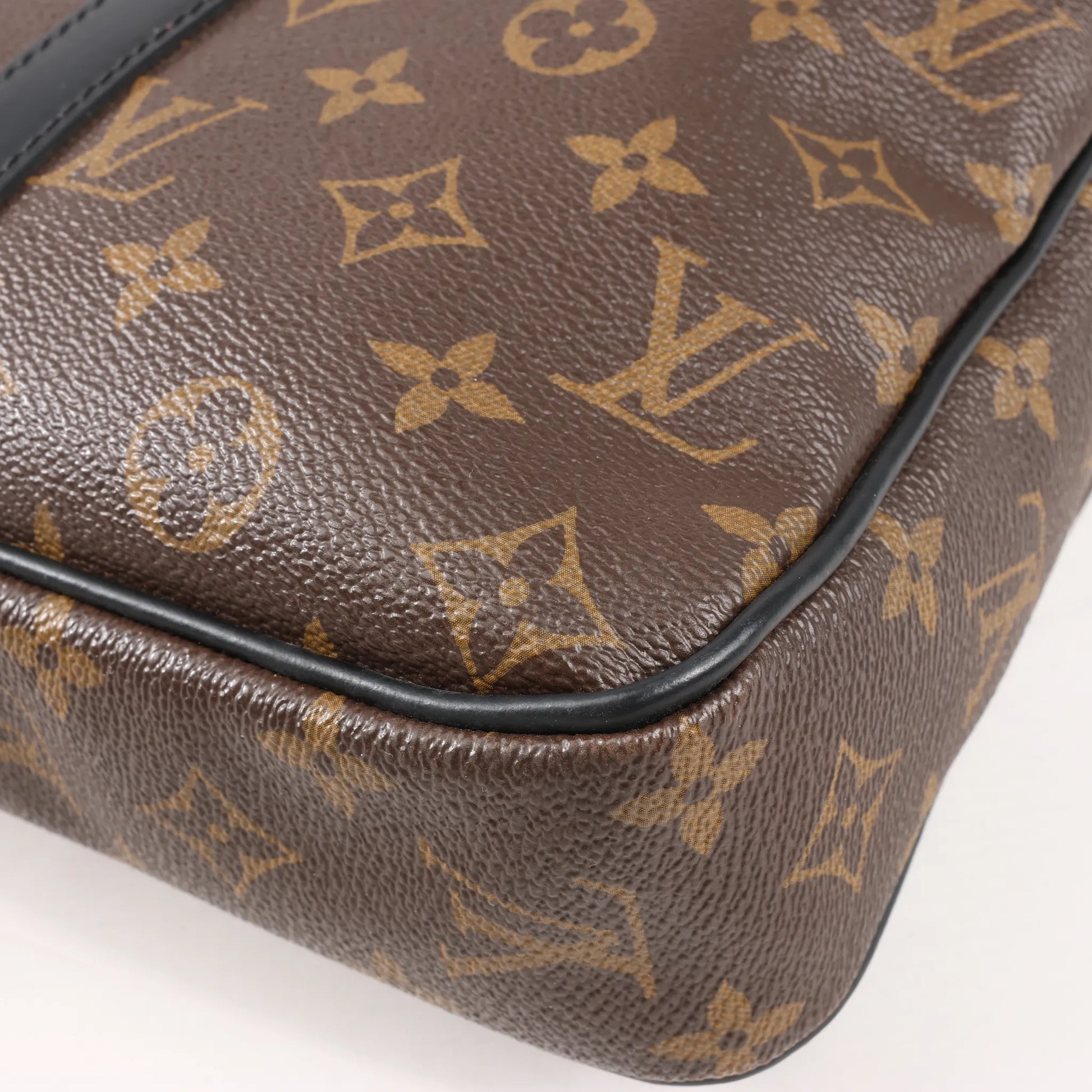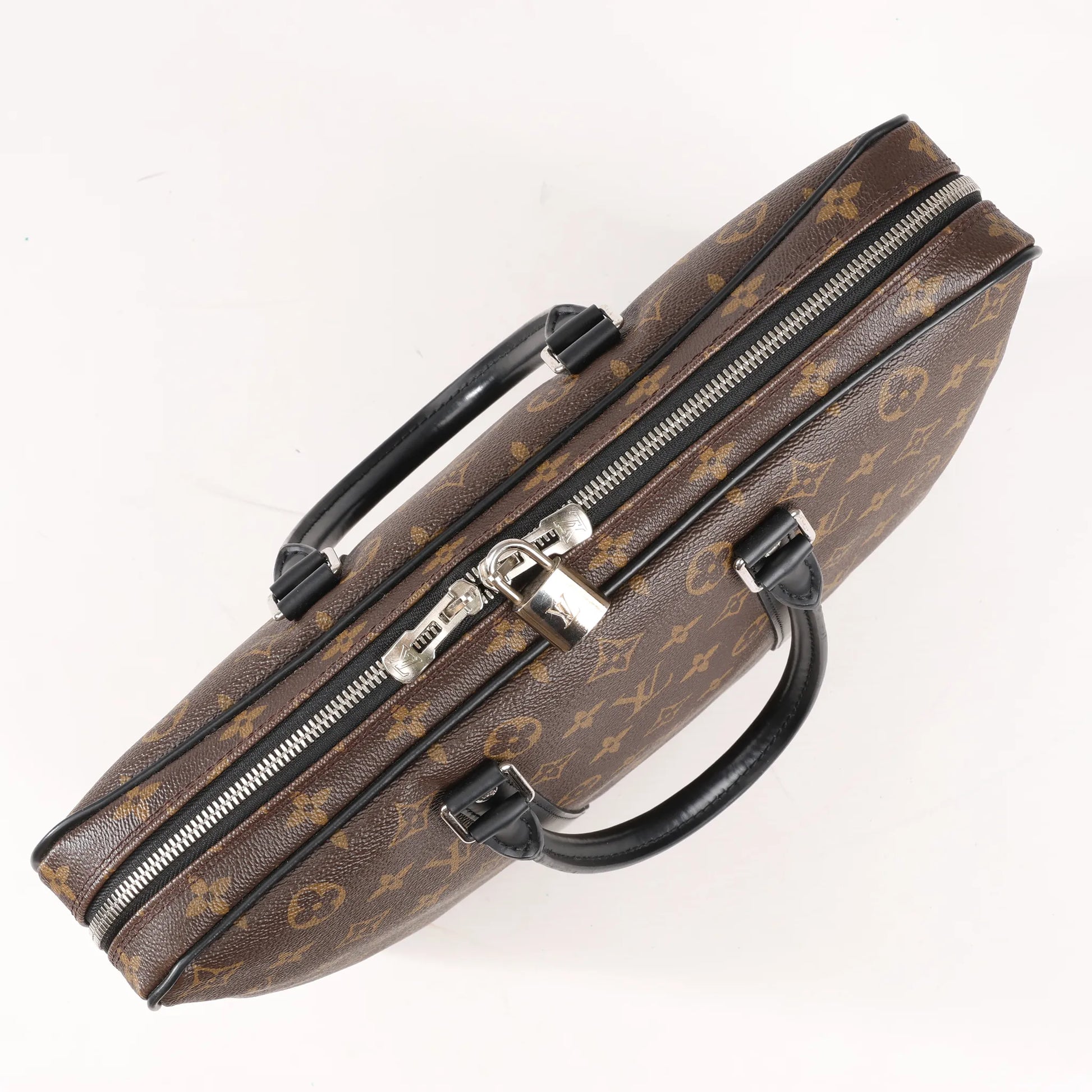 The Louis Vuitton Porte Documents Voyage PM in Monogram Macassar canvas is a refined travel essential. Made from coated canvas with black leather trim, this structured bag blends iconic style with practical compartments for modern professionals.