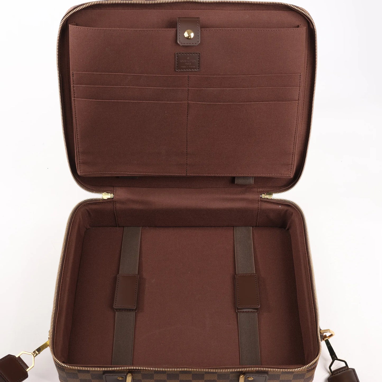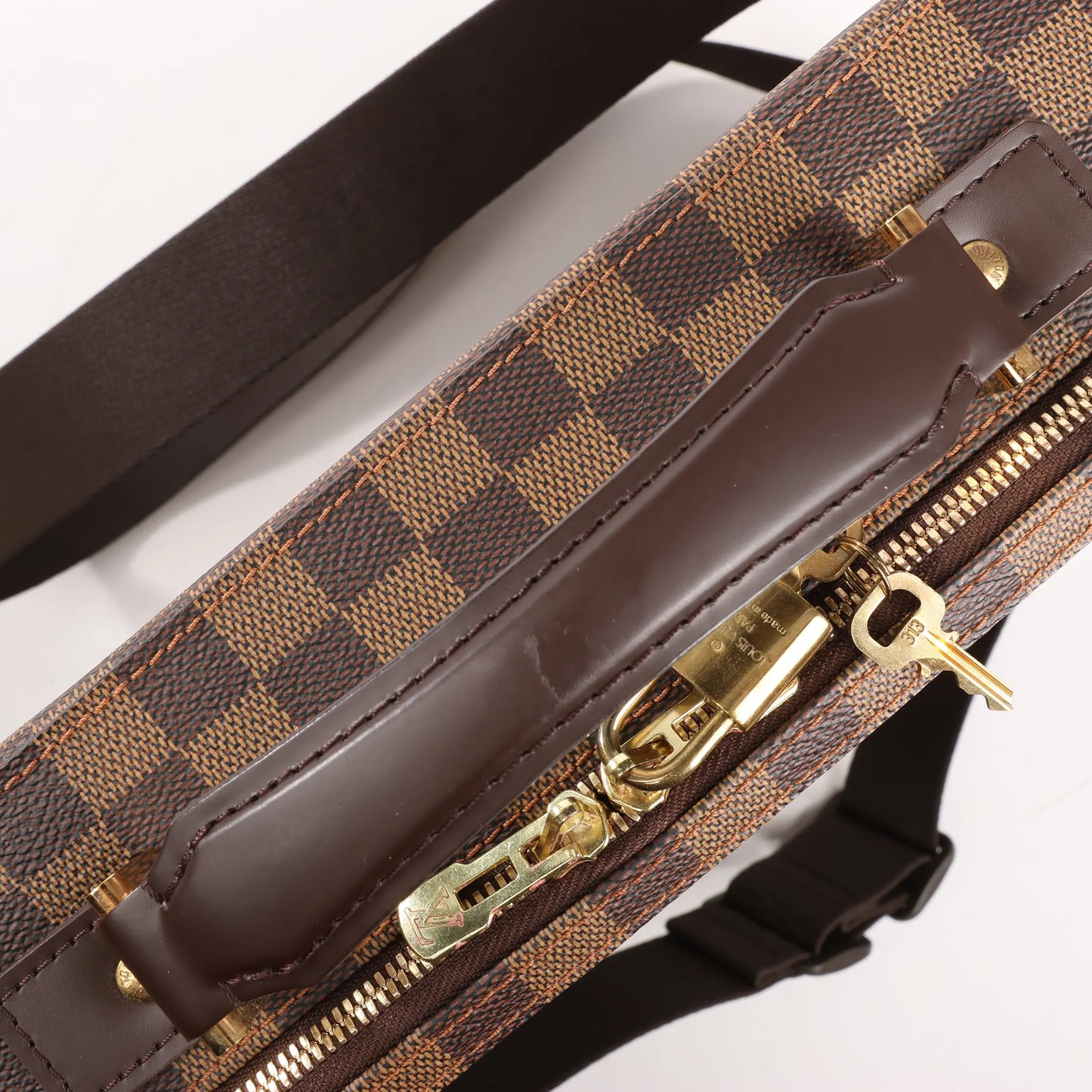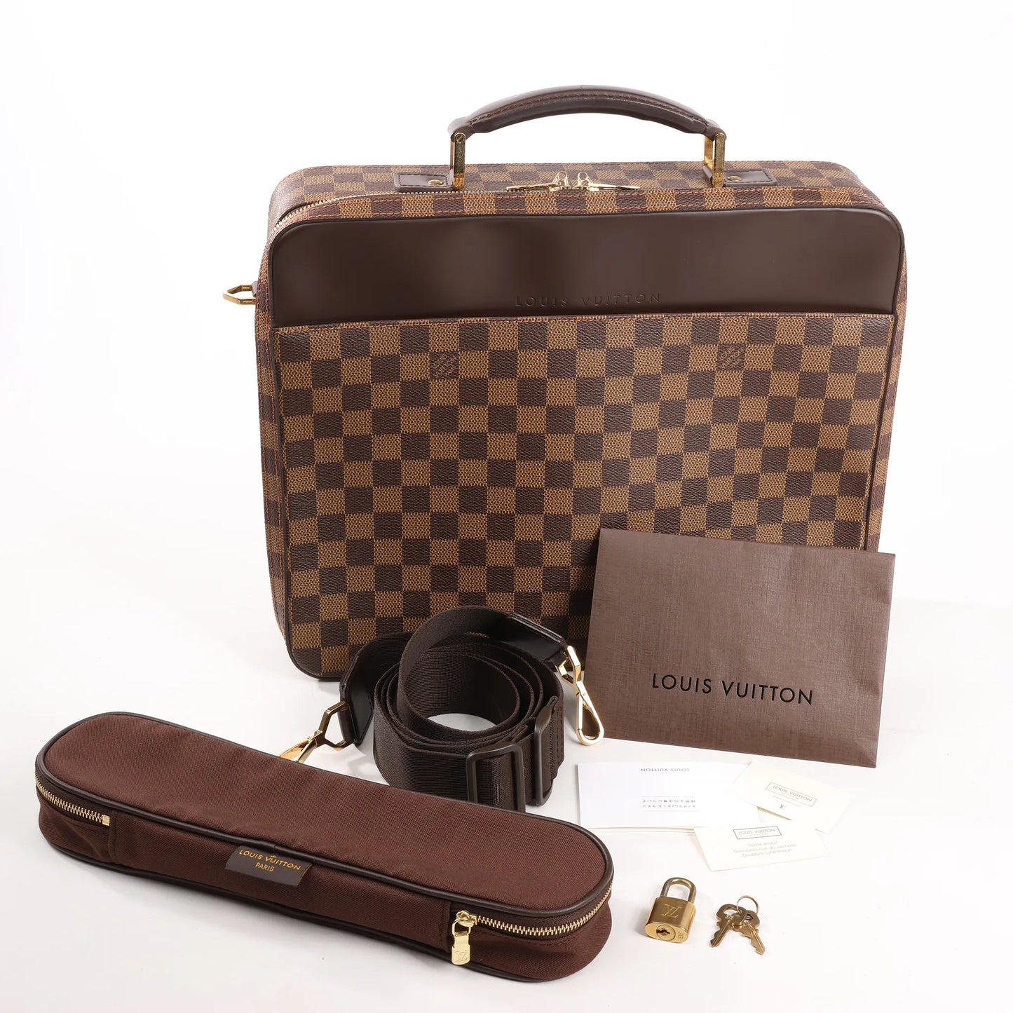 The Louis Vuitton Damier Ebene Porto Ordino Tours Sabana N53355 is a refined 2-way shoulder bag designed for business and travel. Crafted from durable Damier Ebene canvas with leather trim, it offers versatile carrying and a sleek, professional silhouette.