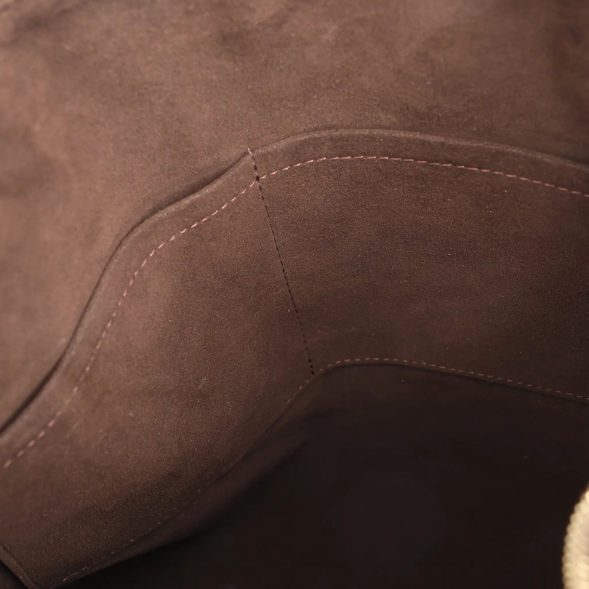 Condition Details: The exterior coated canvas is clean and beautiful. The leather handles and trim are in good condition with slight creases and scratches. The hardware is bright, but has scratches. The interior is in excellent condition, except some dust. The date code is SP3152.
